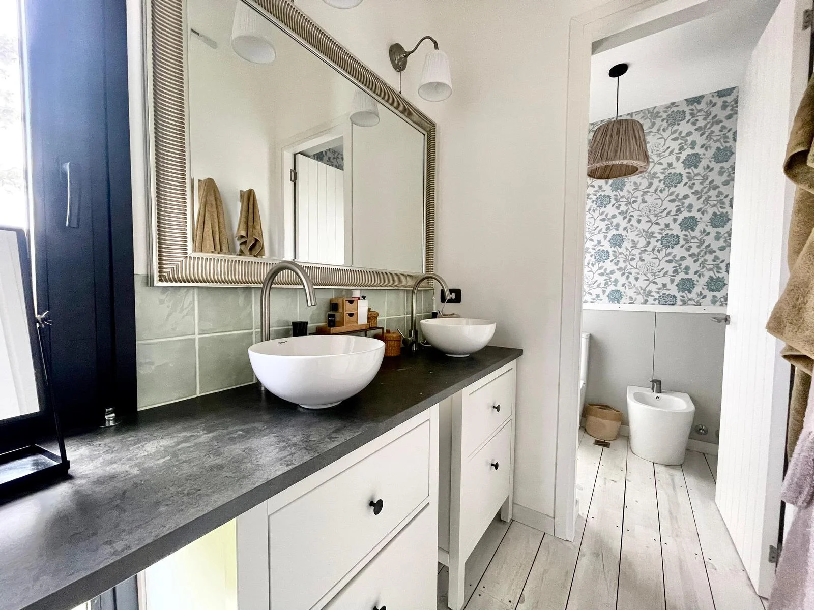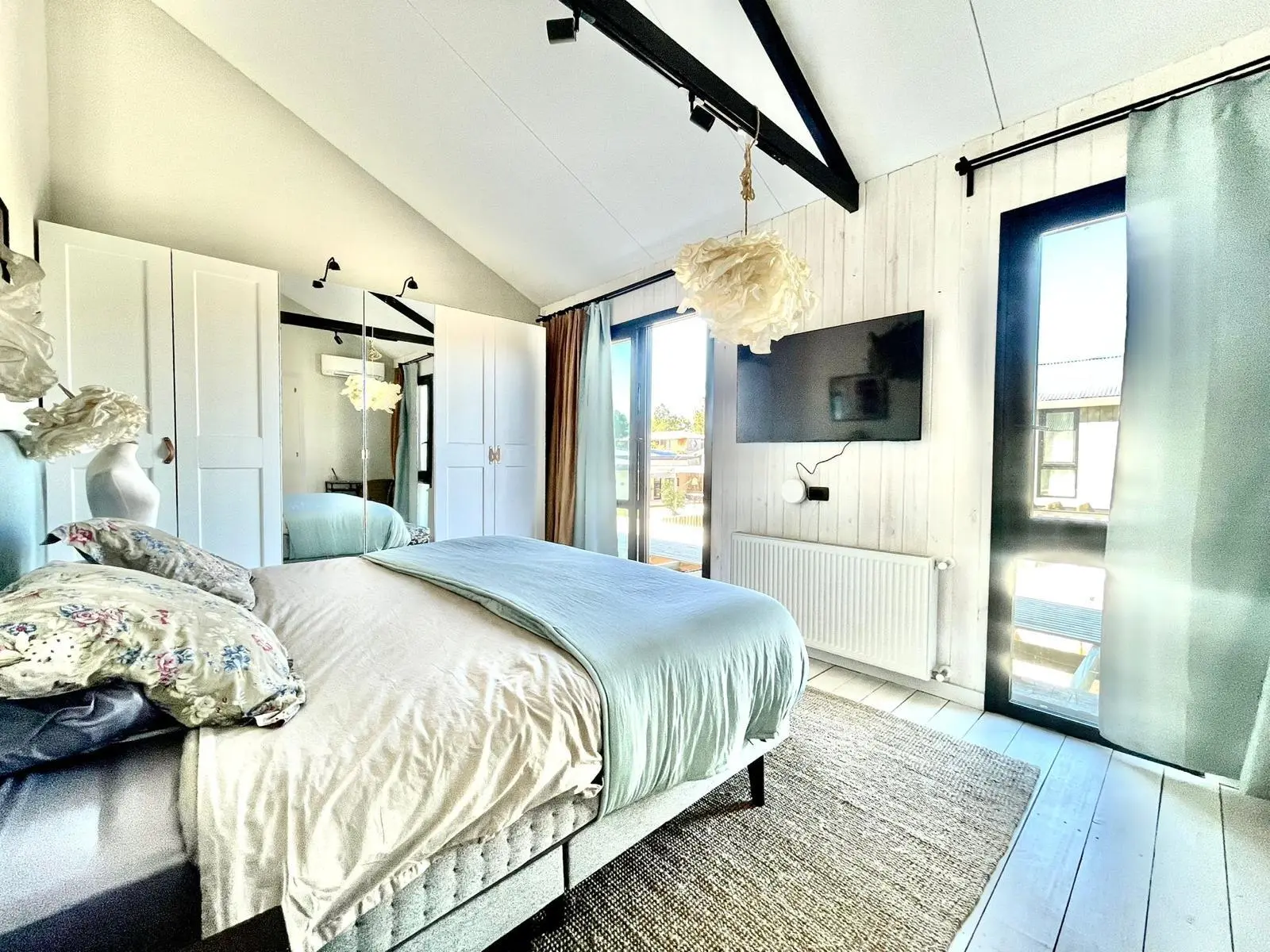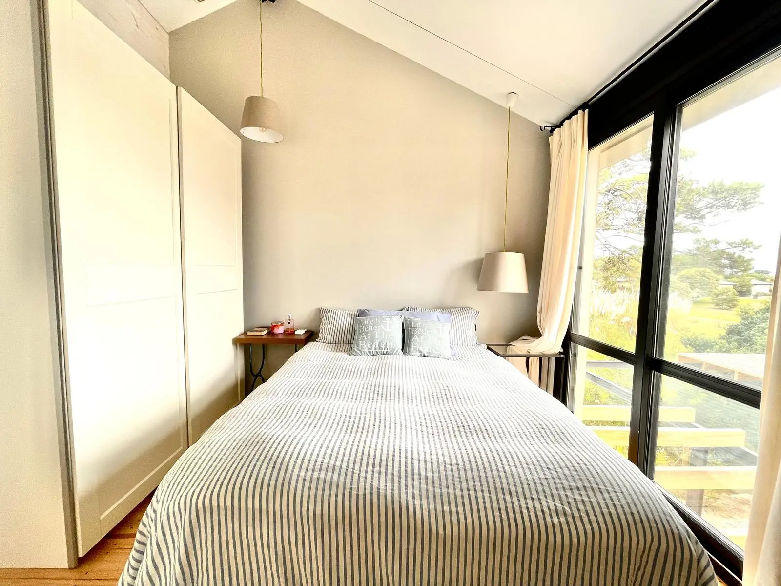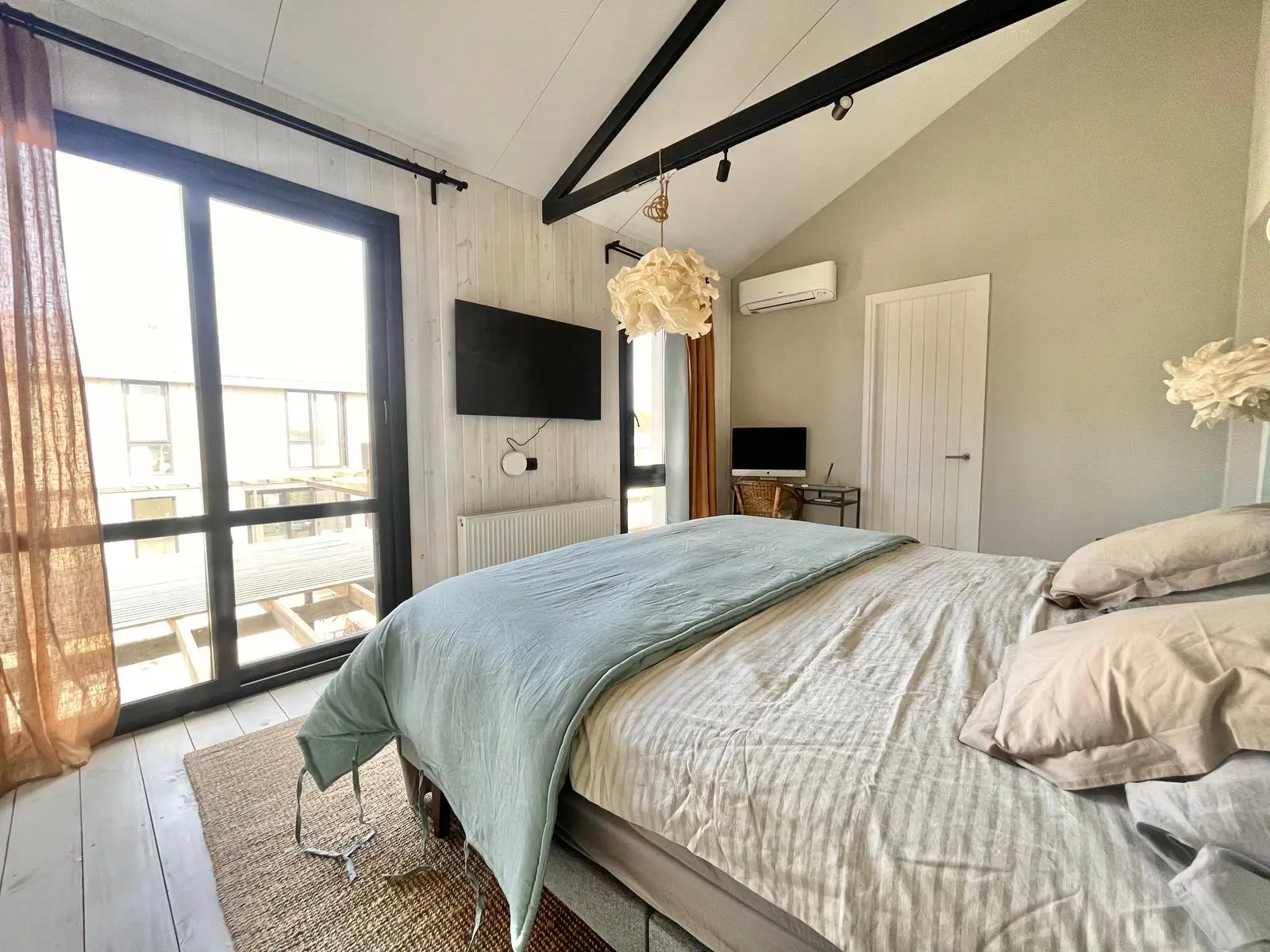 En el volumen al fondo, en planta alta dos dormitorios en suite con amplio confort para 7 personas. En planta baja 2 dormitorios en suite.
