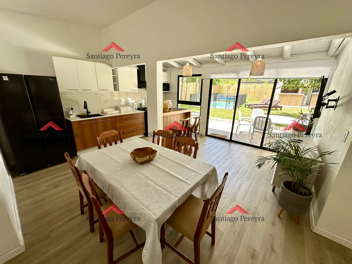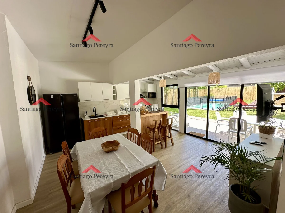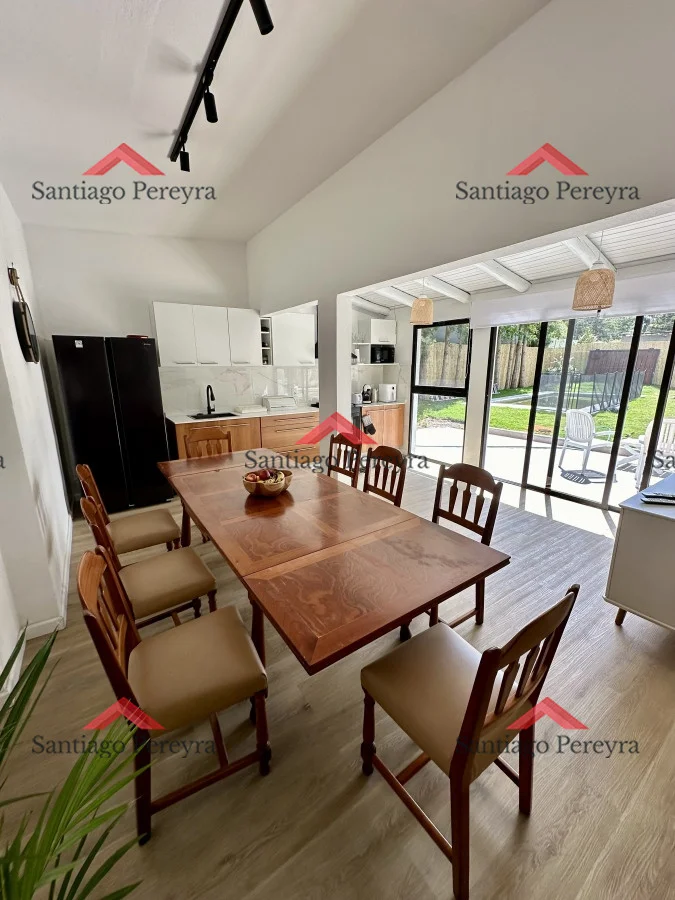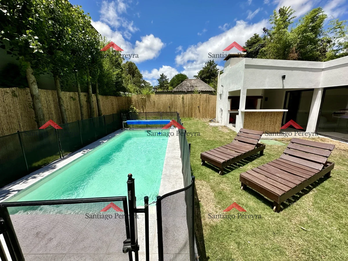Muy linda casa completamente remodelada en alquiler y venta. Cuenta con 3 dormitorios, 2 baños + toilette en casa principal, más un dormitorio con capacidad para 2 personas al lado de la barbacoa con baño.
