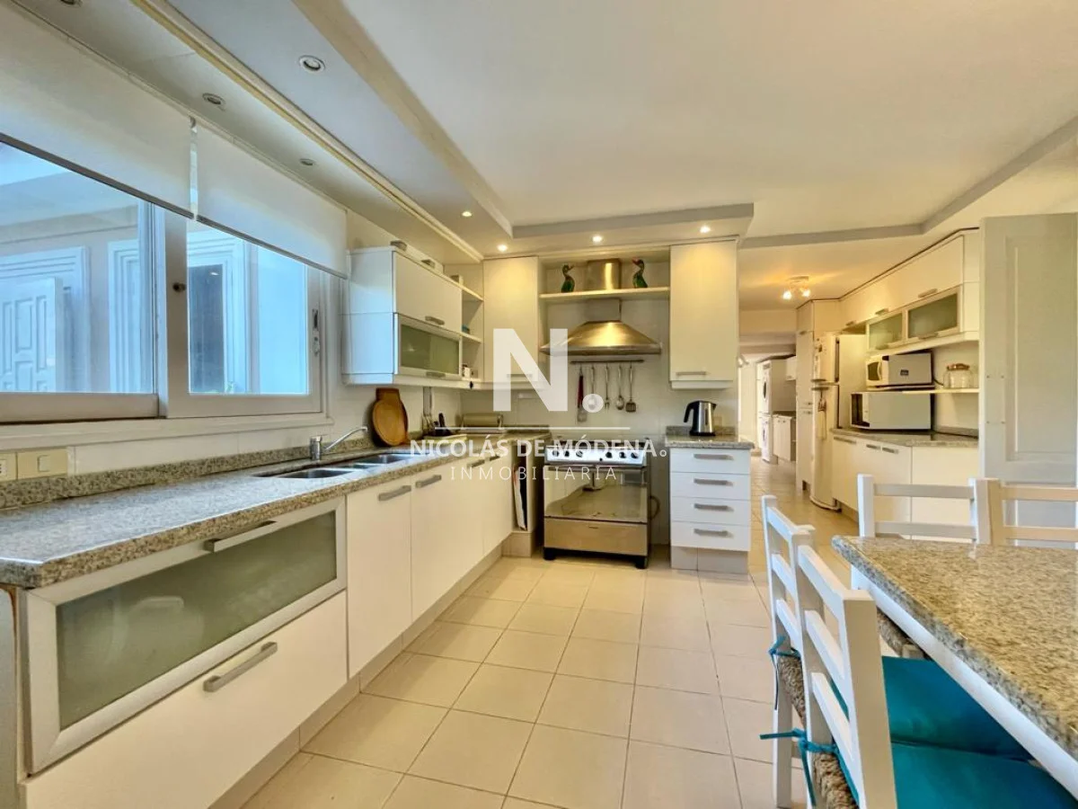 Casa en venta playa Brava , muy lindo y gran parque esquinero. A cuadra y media de Rambla y la playa. Living , comedor cocina equipada, cochera, estacionamiento, comedor diario. Piscina climatizada, hogar a leña, lavadero y dependencia. Planta alta Gran suite con vista a la piscina. Planta a con balcón y vista al mar. mas tres suite. Habitación exterior en suite.