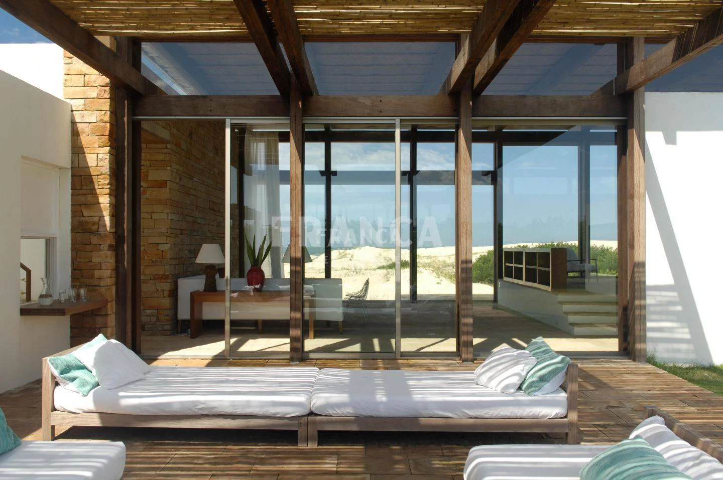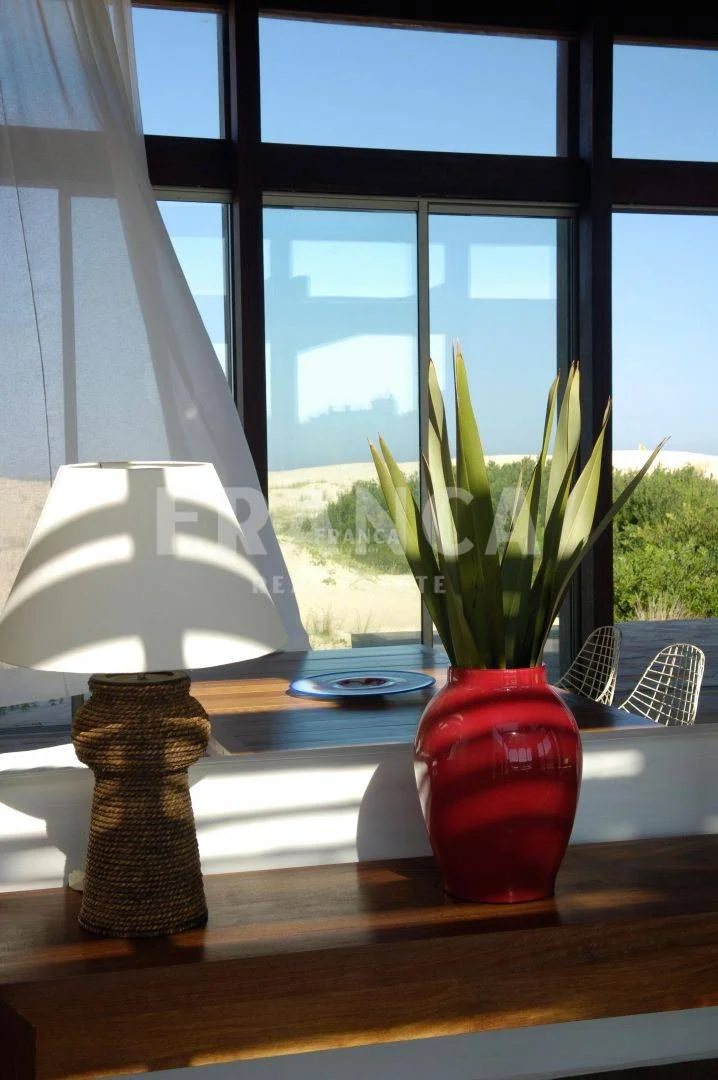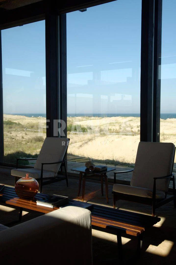 Alquiler temporario de Casa en Club del Mar, José Ignacio. Club de Mar es un exclusivo club de playa privado de 30 hectáreas, ubicado en la Playa Brava de José Ignacio, el único con acceso directo al mar en esta zona privilegiada. Ofrece una propuesta única de servicios: servicio de playa con sombrillas y reposeras, guardavidas propios, restaurante frente al mar, piscinas para adultos y niños, seguridad privada las 24 horas, carritos de golf para traslados internos y un completo Kids Club todos los días. Un entorno natural, seguro y con infraestructura de primer nivel, ideal para disfrutar el verano en familia. Una de las mejores casas de Club de Mar, en primera linea sobre la playa. La misma cuenta con tres dormitorios en suite con vista al mar. El cuarto dormitorios se encuentra en la parte de atrás con vista al jardín también con su baño privado, el quinto dormitorio es una suite independiente afuera de la casa. Un amplio living comedor con grandes ventanales integrando el afuera y adentro, muy fresca, con una exquisita decoración playera. Cocina grande, equipada, lavadero y dependencia de servicio. Playroom con TV y mesa de ping pong. Jardin con una pequeña piscina. . Caracteristicas: BAULERA, COMEDOR, DORMITORIO EN SUITE, LAVANDER?A, LIVING, PLAYROOM, SALA DE JUEGOS, TOILETTE, CANCHA DE TENIS, ESTACIONAMIENTO, ESTUFA A LE?A, LAVAVAJILLAS, PLACARD EN COCINA, PORTERIA, SEGURIDAD, AGUA CORRIENTE, ALARMA, COCINA, LAVARROPAS, LUZ ELECTRICA, PORTERO ELECTRICO, SANEAMIENTO, TELEFONO, WIFI, VISTA AL MAR, DEPENDENCIA DE SERVICIO, LAVADERO, CANCHAS DEPORTIVAS, HOGAR, CALEFON, HELADERA, MICROONDAS, VIGILANCIA XINTEL (FRO-FRO-38)