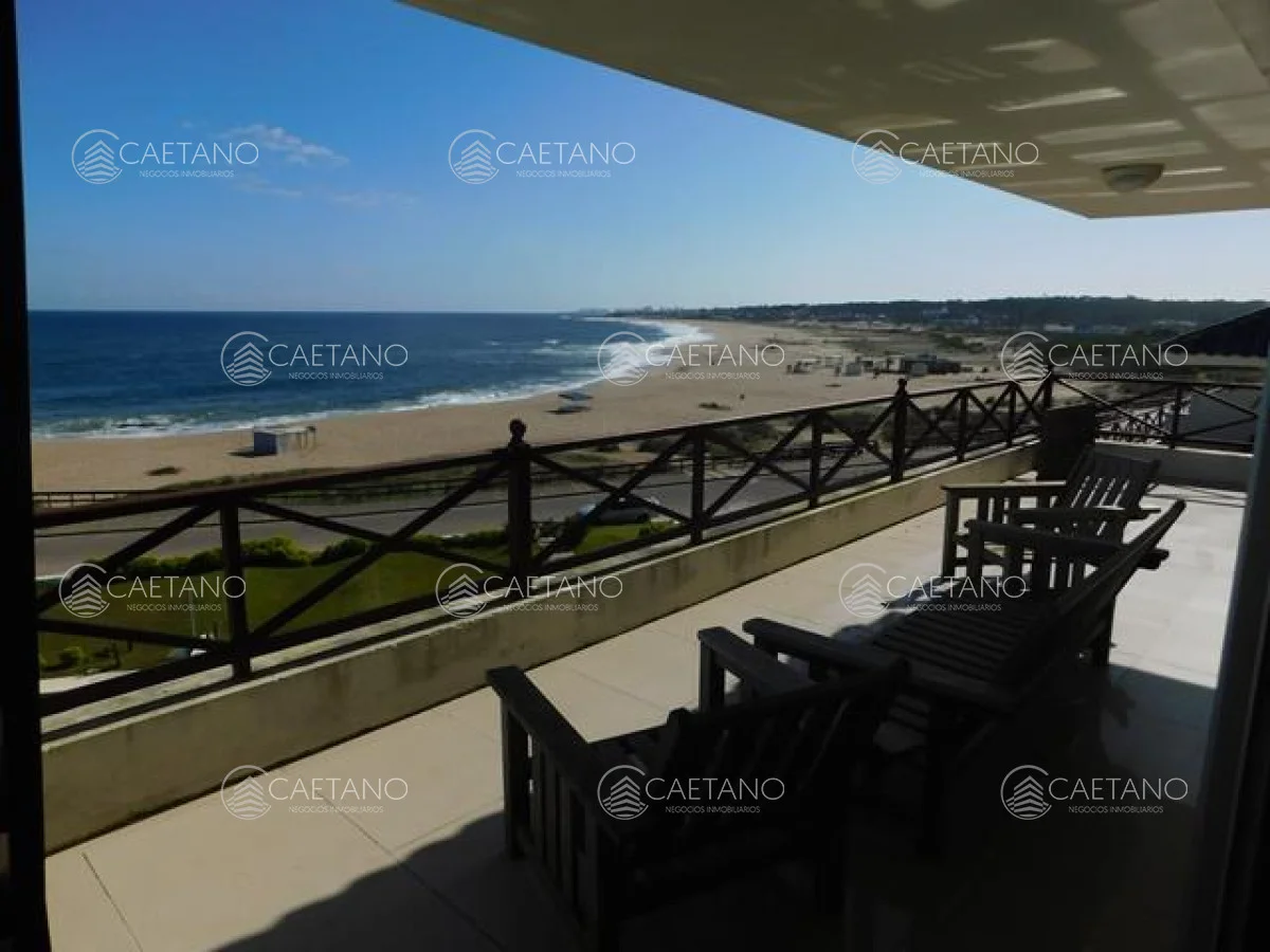 Terraza y muy buenas vistas a piscina, al mar y a Punta del Este.