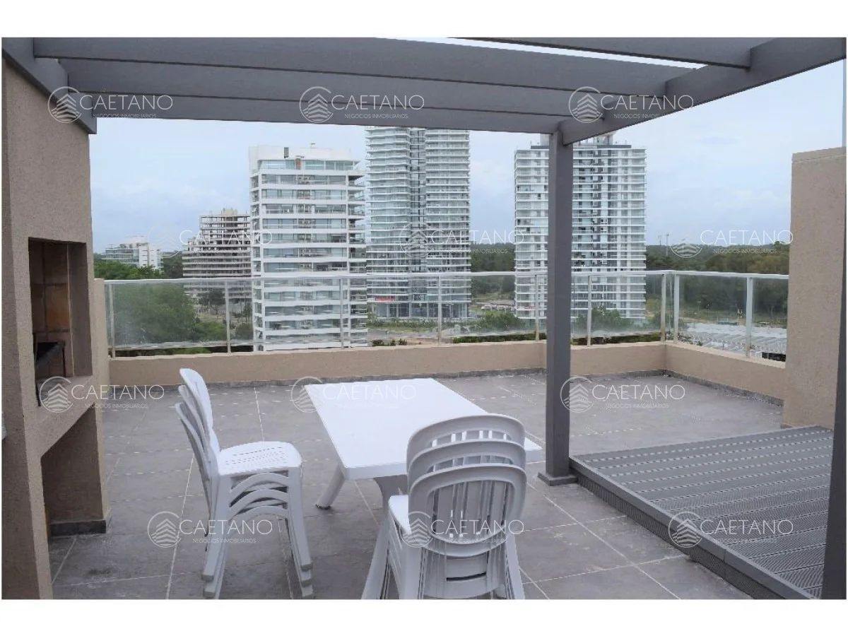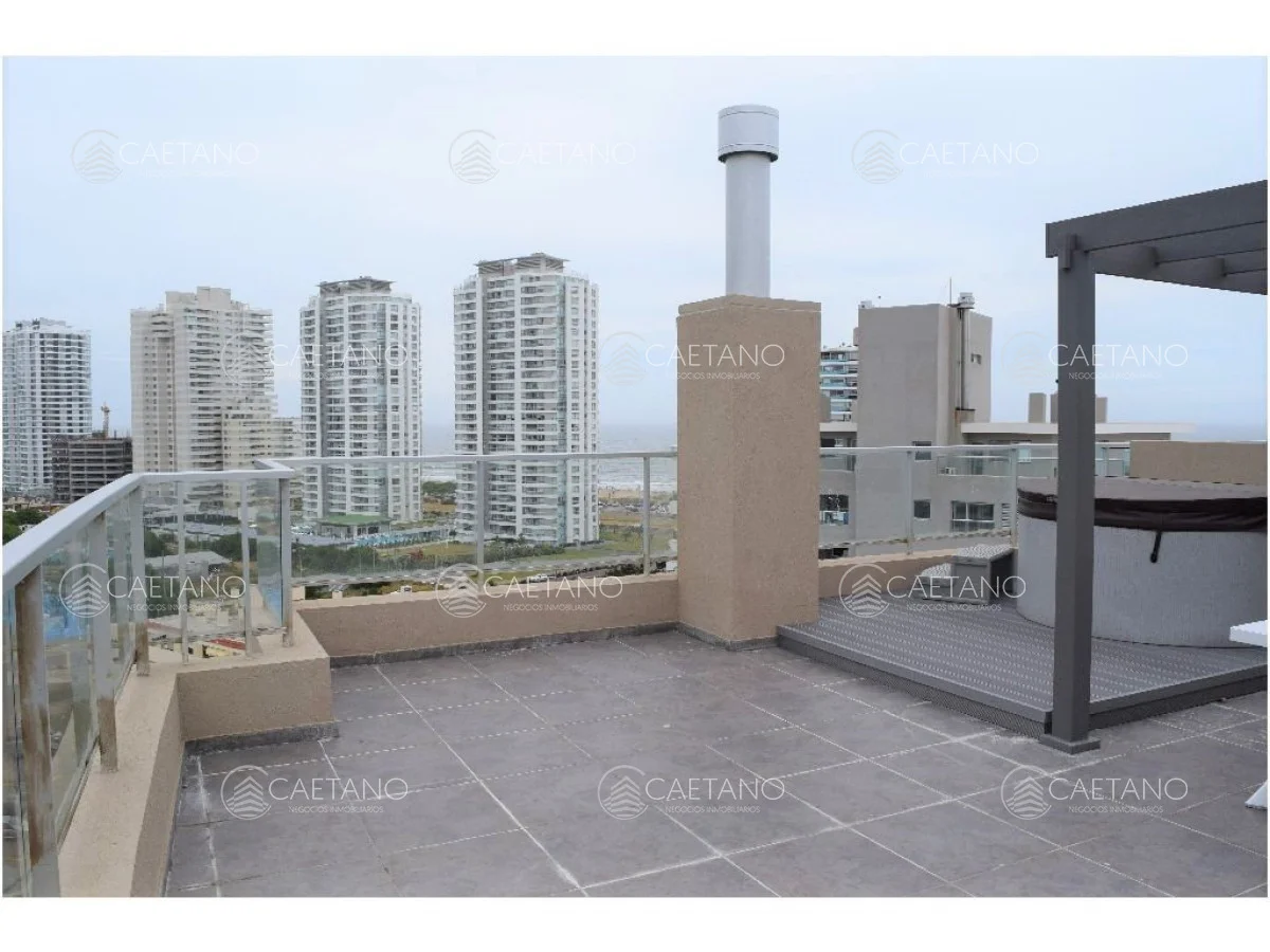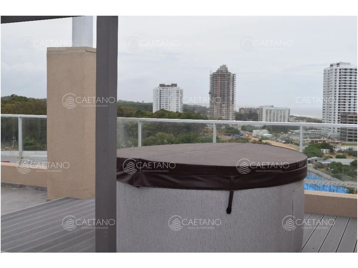 Hermoso Penthouse en excelente zona, Aidy Grill, Punta del Este. Se conforma por dos dormitorios, dos baños, living-comedor y cocina integrada. Cuenta con una azotea con parrillero y jacuzzi de uso exclusivo y garaje. Referencia Interna : Tera-423