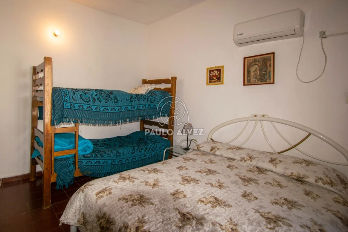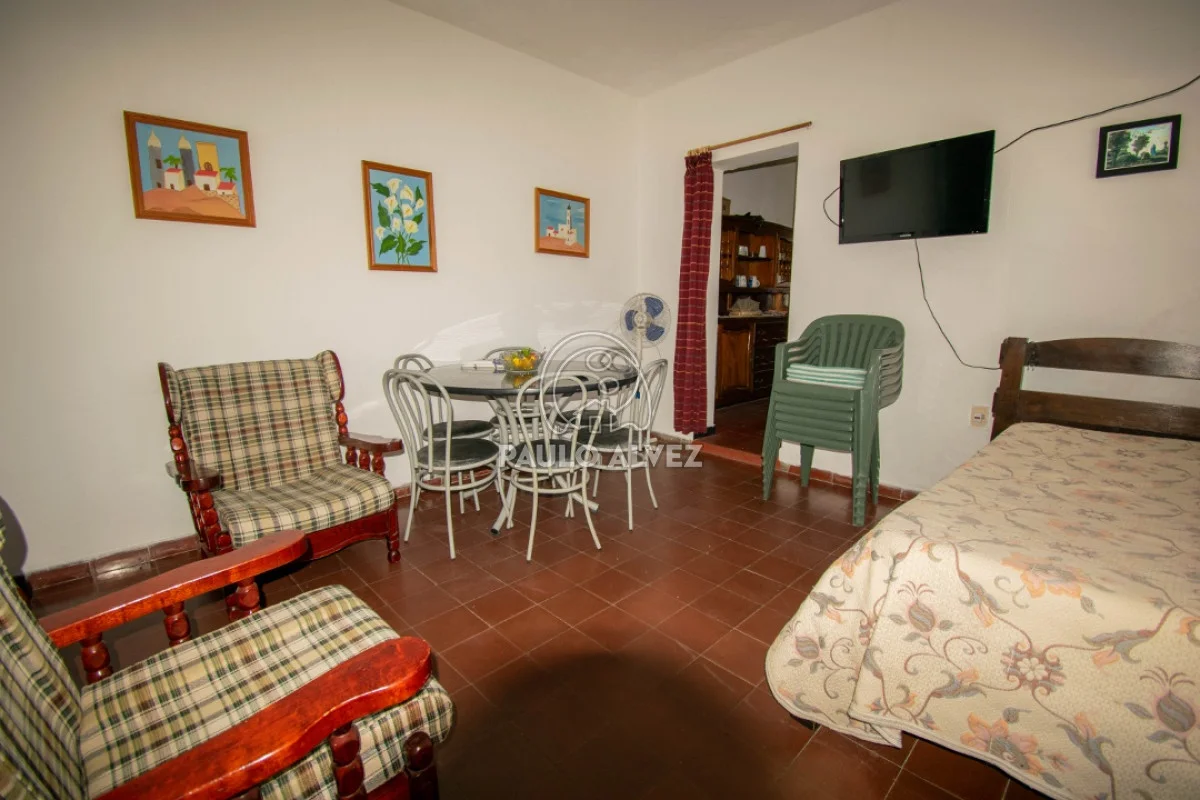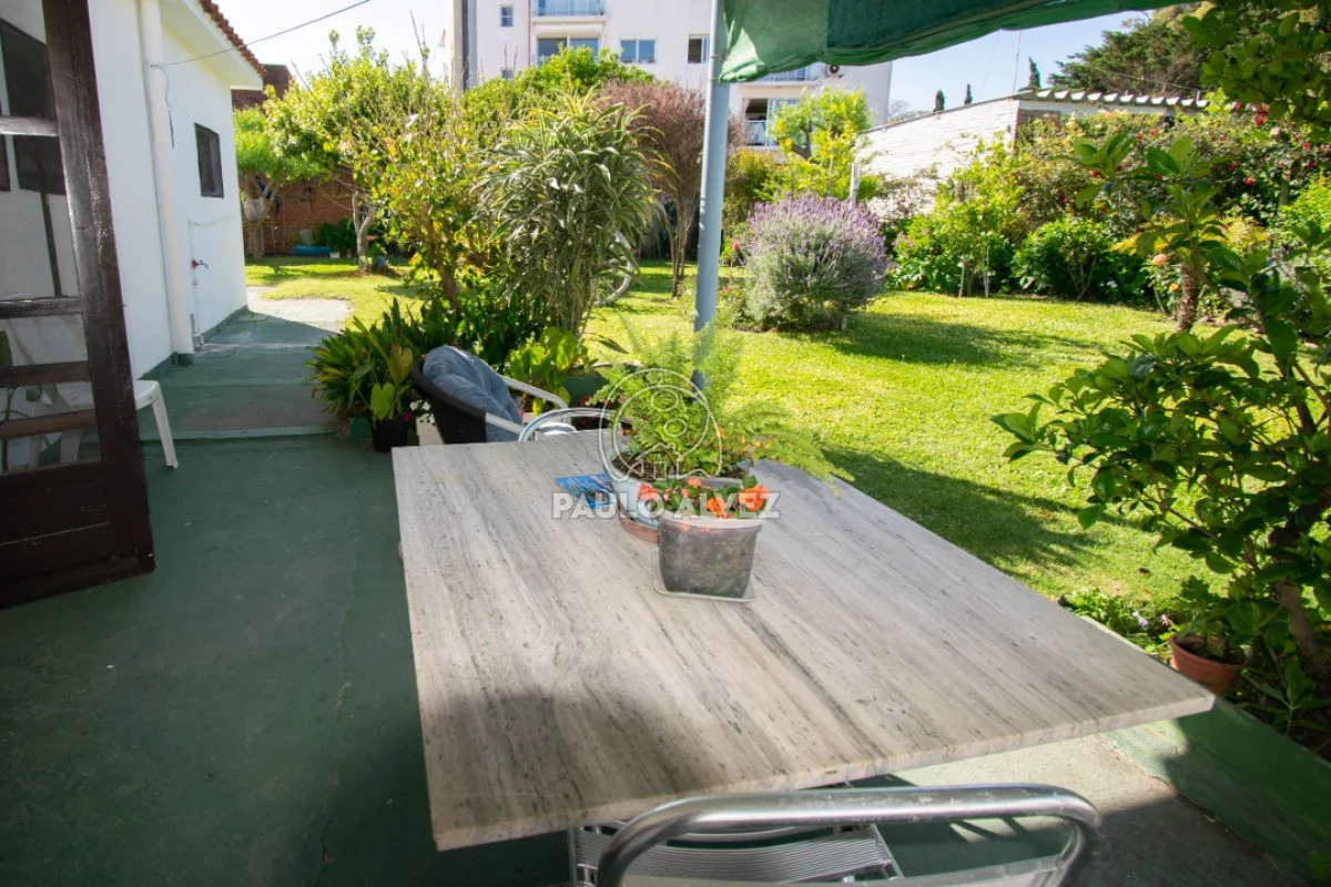 Excelente propiedad ubicada en el centro de Piriápolis. A tan solo 150 metros del mar. Entorno tranquilo y agradable. Construcción tradicional de doble pared de ladrillo, techo de losa, teja y pisos en monólitico. Distribuida por amplio y luminoso living, cocina-comedor con muebles bajo mesada  y estufa de alto rendimiento. Tres dormitorios con placares empotrados, pisos en parquet y baño completo. Acceso lateral a garaje. Dos parrilleros y baño social.  Apartamento al fondo distribuido por cocina-comedor, baño completo y un dormitorio. Predio arbolado con jardín completamente cercado. Consulte por más información. Referencia Interna : Tera-307