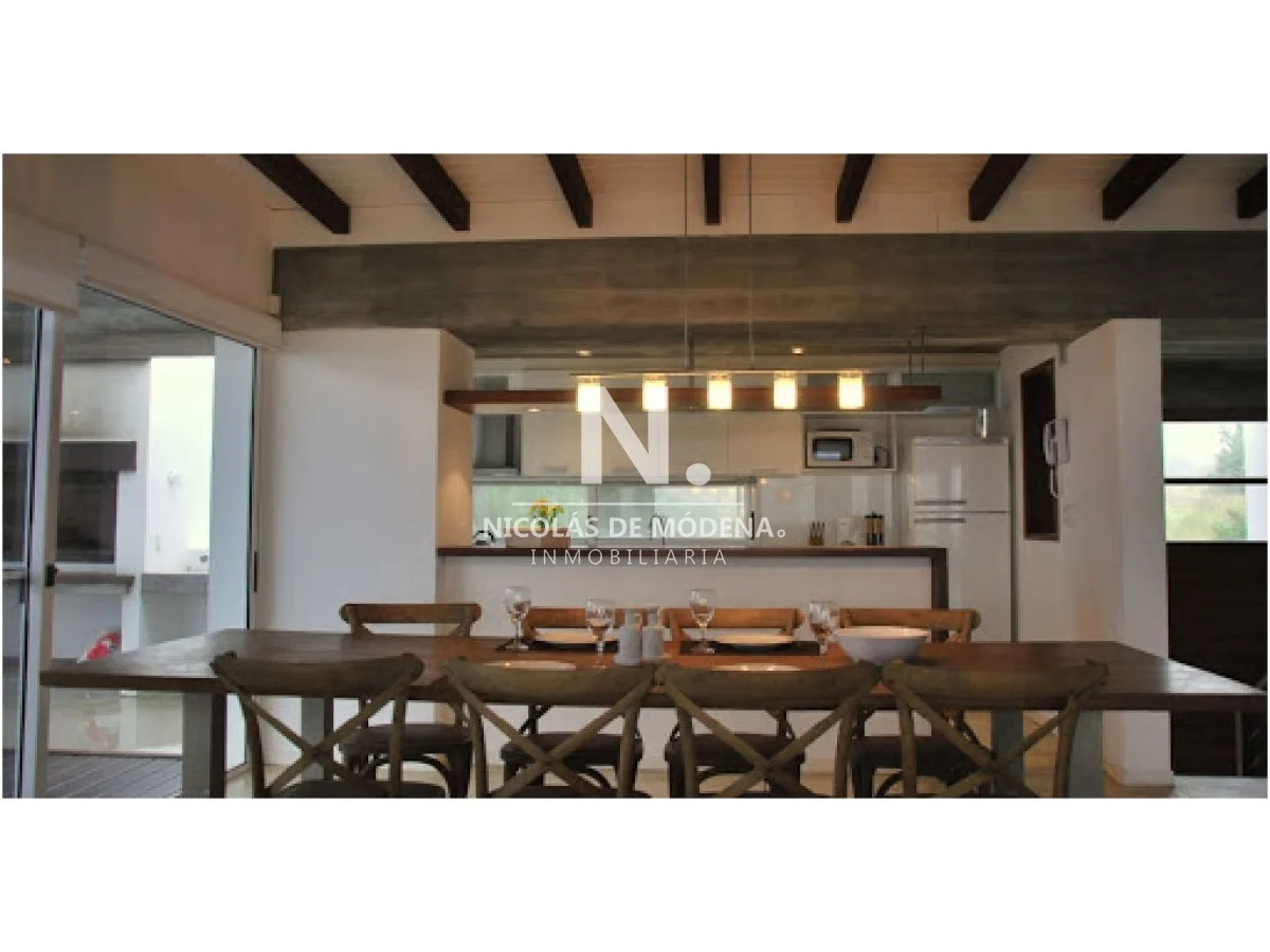 La casa se desarrolla en una planta funcional y muy luminosa, gracias a sus amplios ventanales que permiten la entrada de luz natural durante todo el día. Al ingresar, nos recibe un gran living de diseño abierto, integrado al comedor principal, creando un espacio perfecto para reuniones sociales o familiares. La cocina, completamente equipada, combina practicidad y estilo, ofreciendo todas las comodidades necesarias para los amantes de la gastronomía.