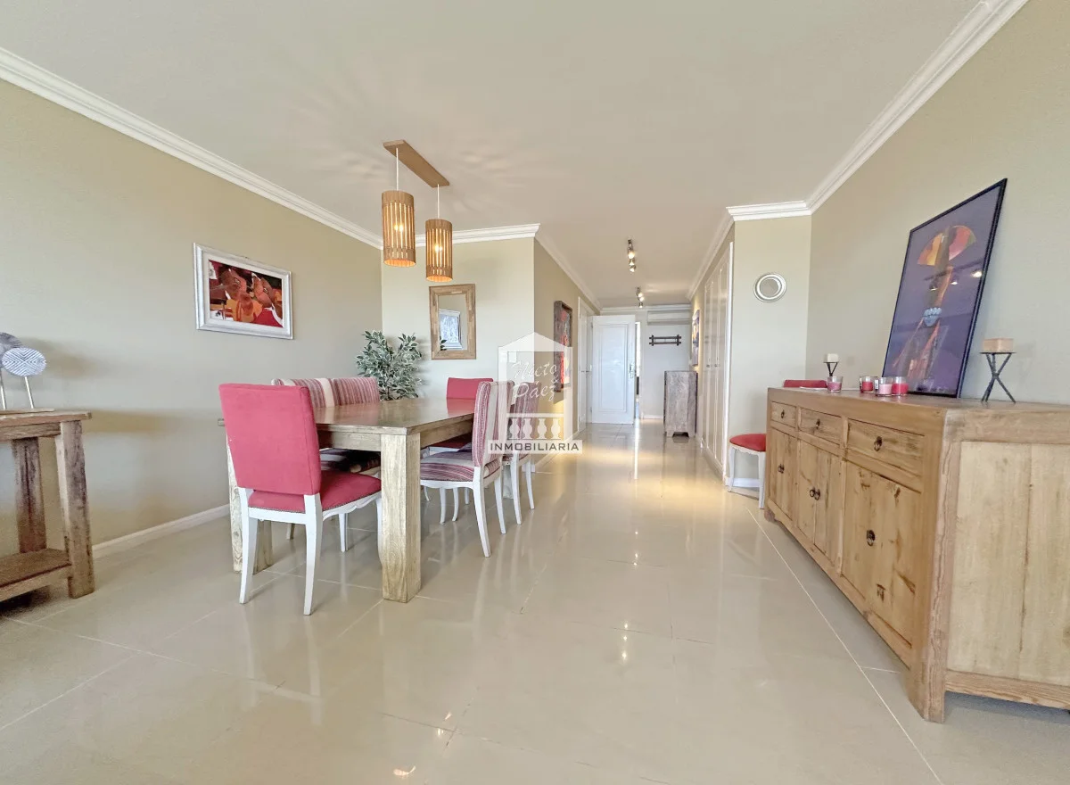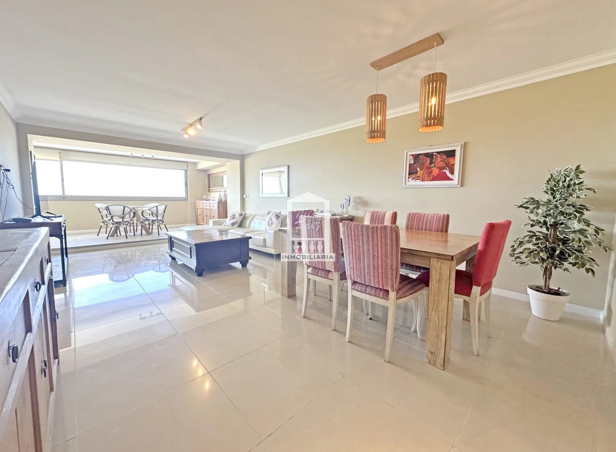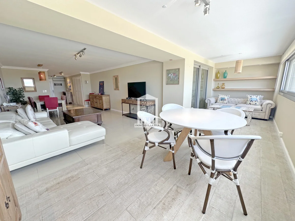 Amplio living comedor con terraza integrada, generado un ambiente único y de grandes dimensiones.