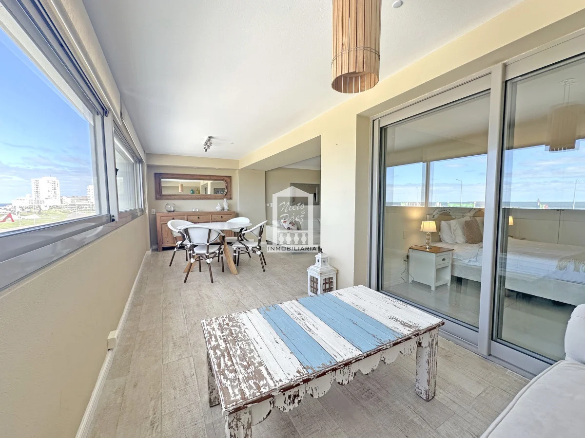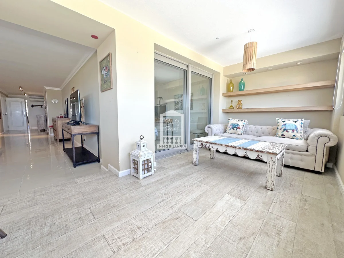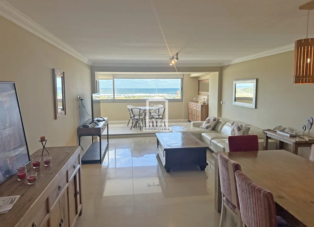 Amplio living comedor con terraza integrada, generado un ambiente único y de grandes dimensiones.