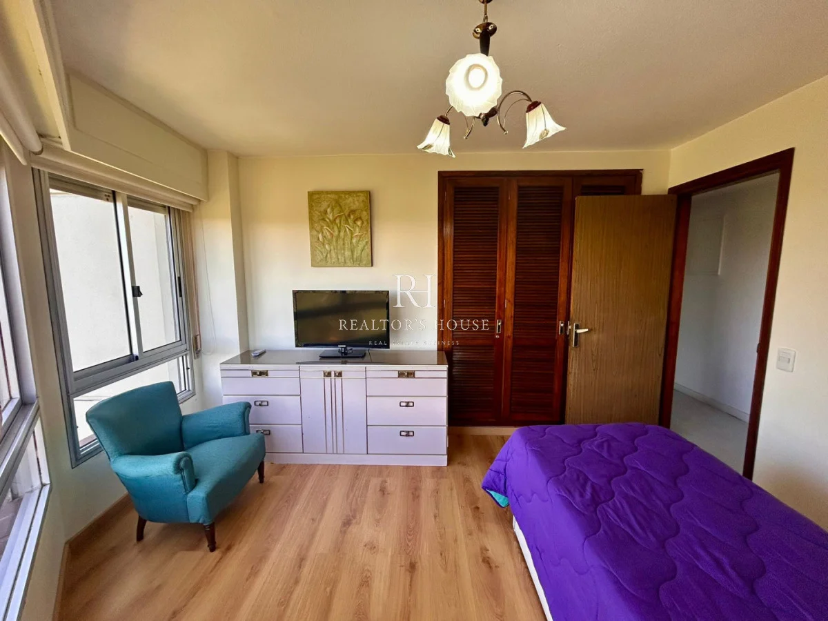 Cuenta con tres dormitorios, y tres baños, uno de ellos en suite, más dependencia de servicio con baño completo.