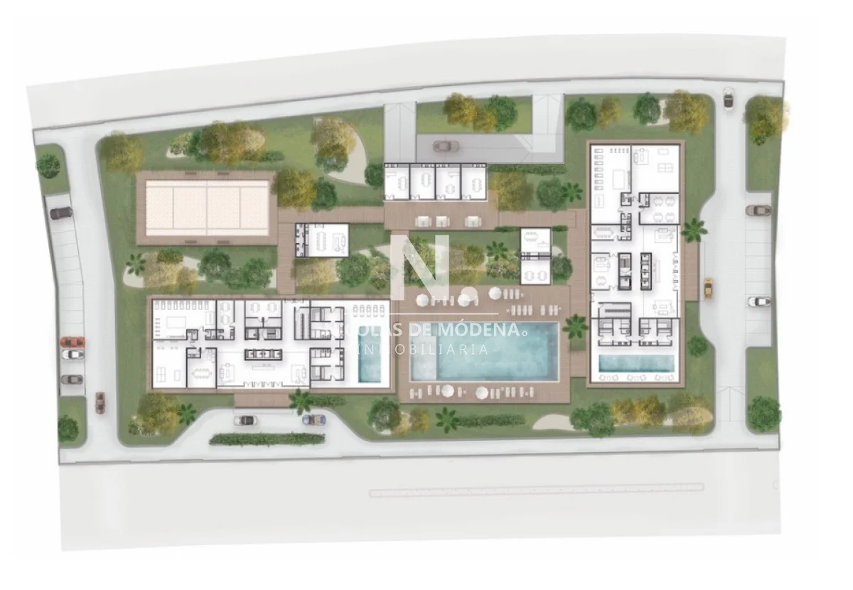 En los jardines del conjunto se dispondrá también de dos estaciones de juegos para los niños más pequeños.