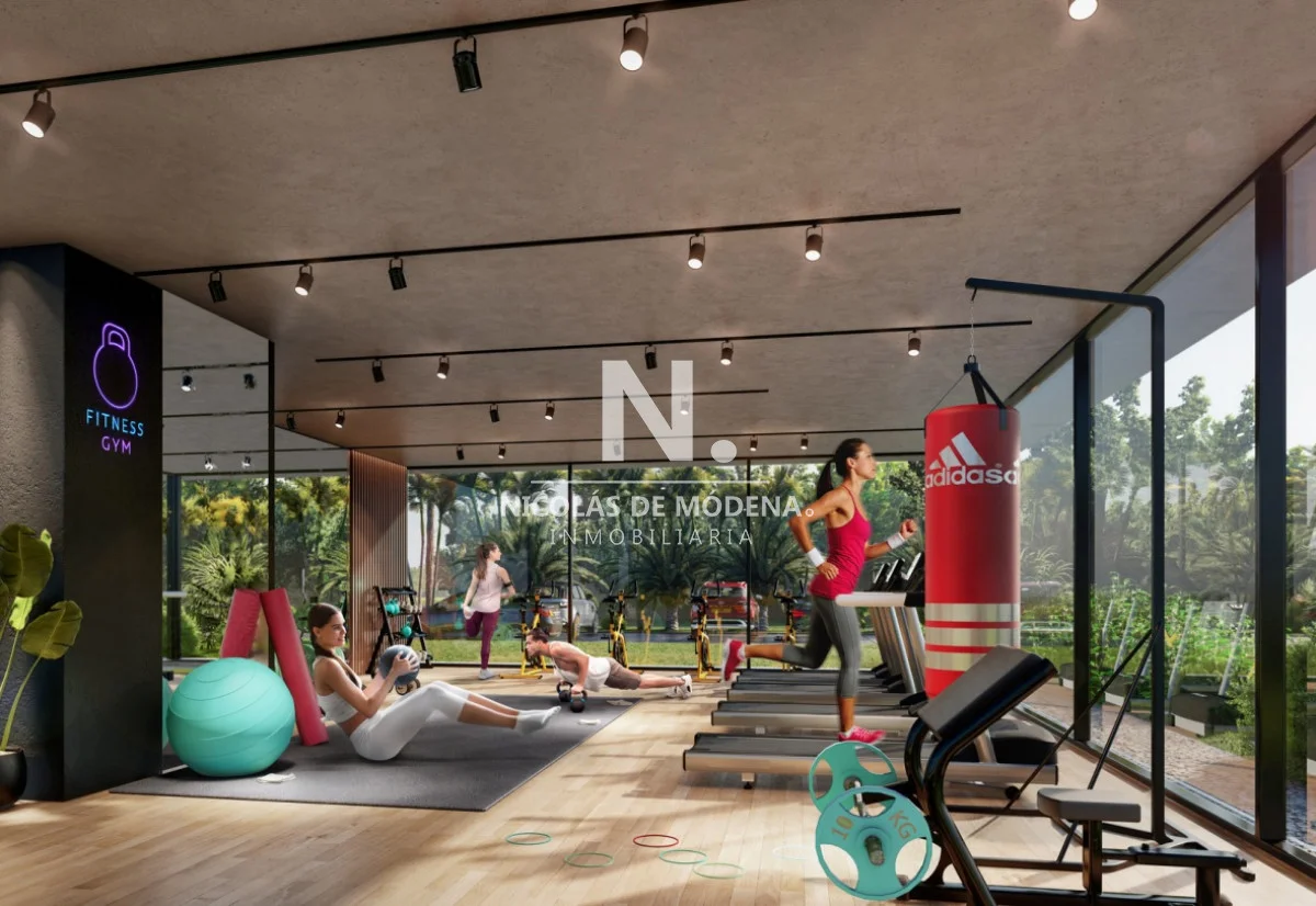 Dos amplios locales acondicionados y equipados con máquinas caminadoras, de spinning, multifuncionales, y otros equipos manuales, para acondicionamiento físico y deportivo.