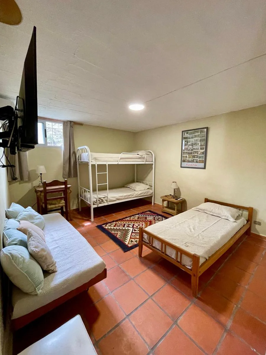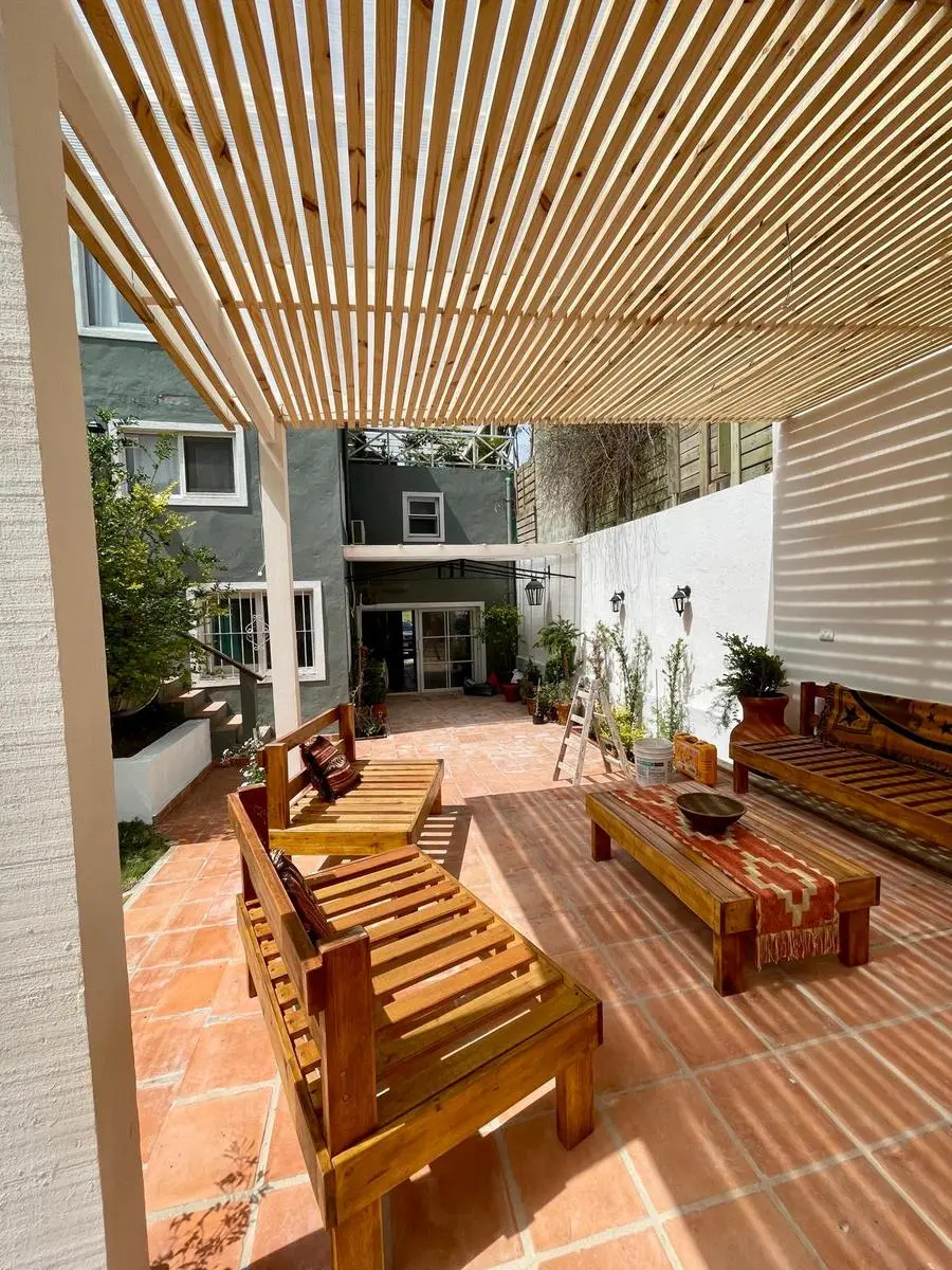En planta jardín con entrada independiente play room y dos dormitorios que comparten un baño con salida al jardín y pequeña galeria intima.