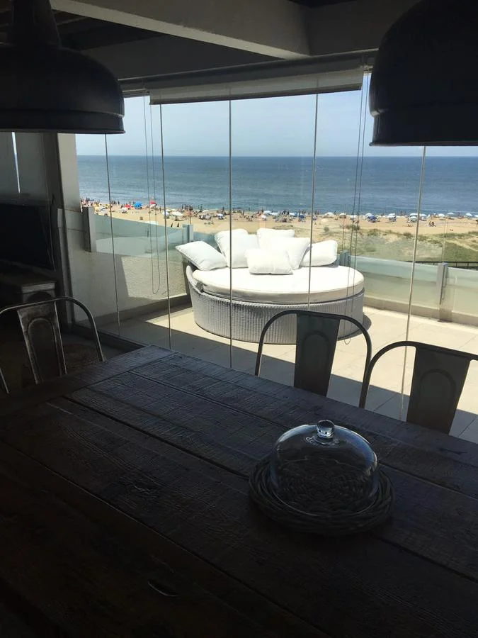 Excelente pent house sobre el mar en Montoya. Departamento de 3 dormitorios en suite y dependencia de servicio. Decoración exquisita y amoblamiento de primer nivel. Espectacular terraza con cerramientos vidriados, que oficia del mejor lugar para reunirse. Amenities Pileta descubierta y pileta de niños Pileta cubierta climatizada Gimnasio, vestuarios, sauna seco y húmedo Salón de juego y salón de reuniones