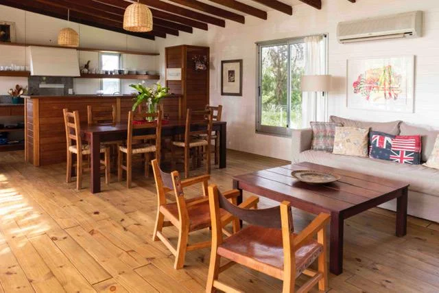 La casa está en Pueblo San Vicente situada en la ruta 10 km 171, a 5 minutos de Manantiales y 10 minutos de José Ignacio, cerca de todo y lejos del ruido. Queda a 2 cuadras de la playa, entre los pinos, donde se unen el bosque y la playa.