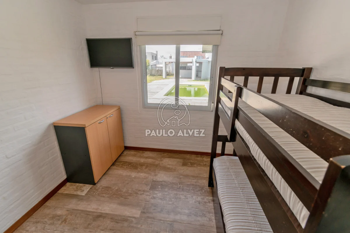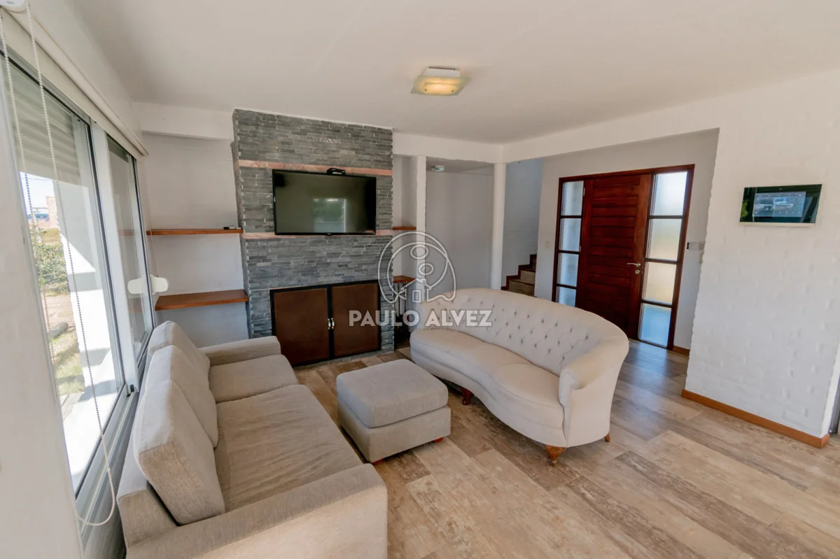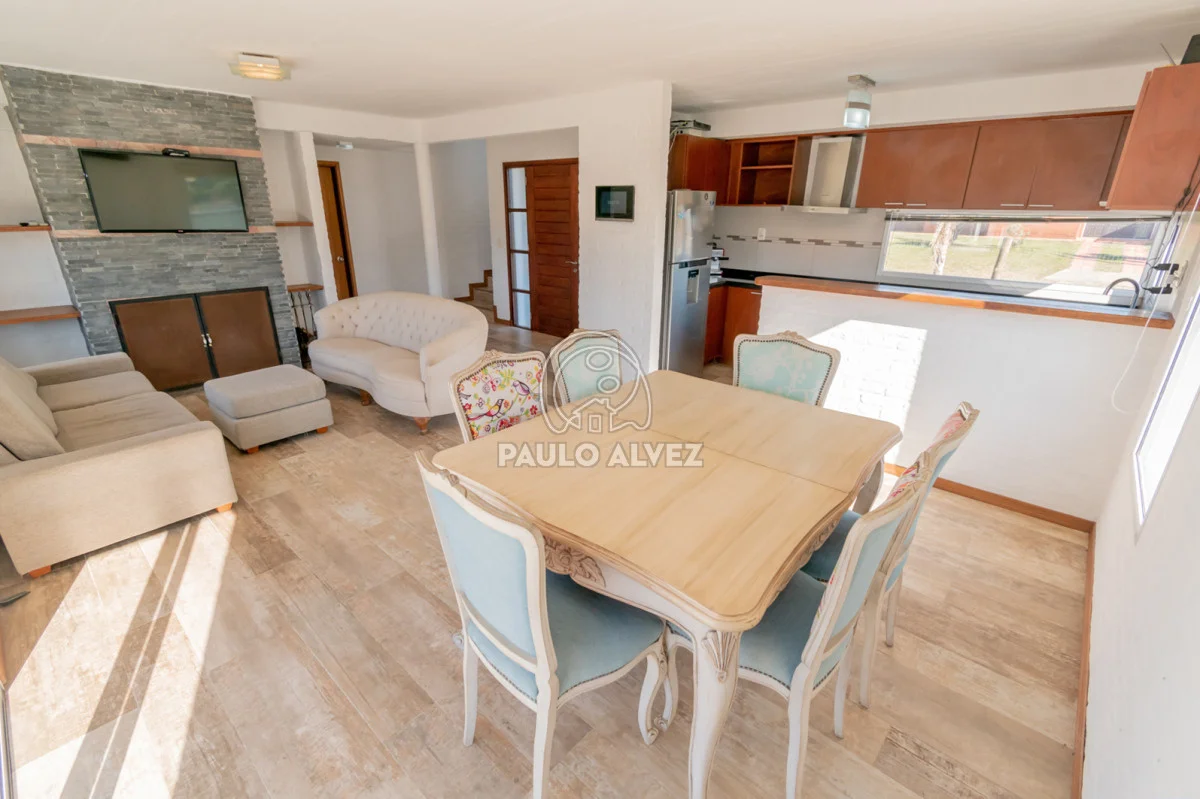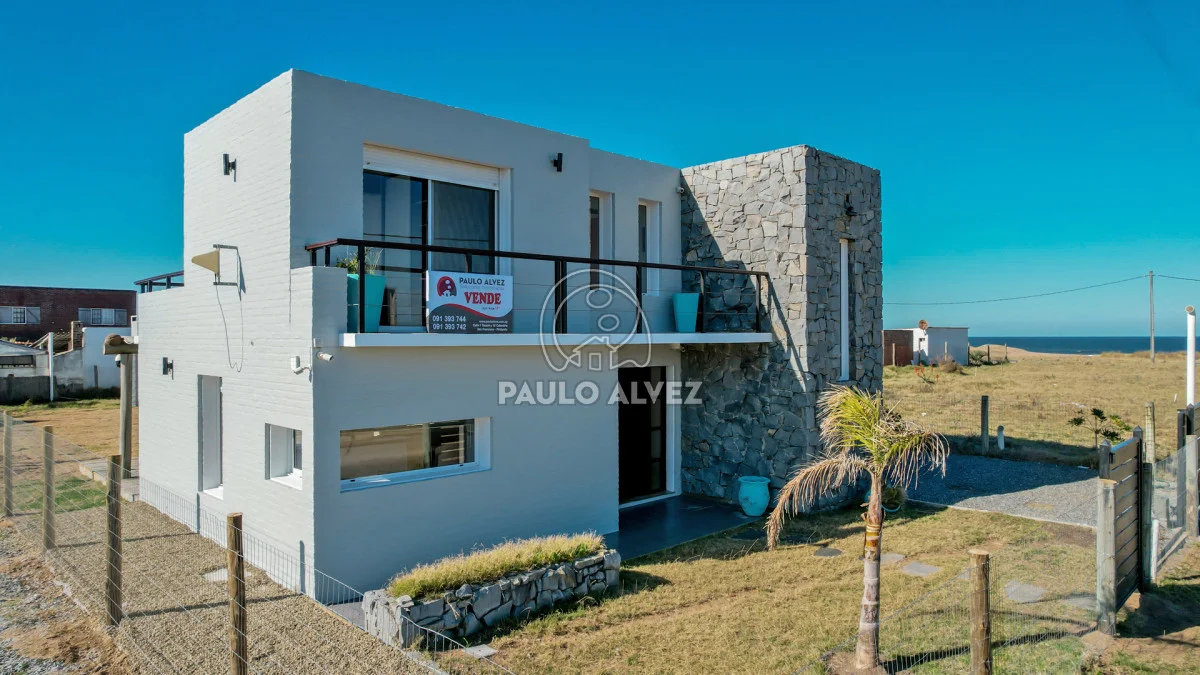 Ubicada en Balneario Punta Negra, donde se encuentra el equilibrio justo entre naturaleza y tranquilidad, a pocos metros del mar. Propiedad de estilo minimalista, sobre terreno de 600 m² con 184 metros edificados, totalmente cercado. Distribuida en dos plantas, planta baja living comedor con estufa a leña, cocina definida por barra desayunador equipada con muebles bajo y sobre mesada, baño social completo y primer dormitorio con tres plazas. Cómoda escalera a planta alta, pasillo distribuidor hacia dormitorio matrimonial en suite con placares empotrados, aire acondicionado y vista al mar, tercer dormitorio. Salida por ambos dormitorios a terraza con imponente vista a los cerros y mar. Hermoso parque enjardinado, deck en madera, fabulosa piscina, barbacoa, cancha de futbol y cochera, Consulte por más información