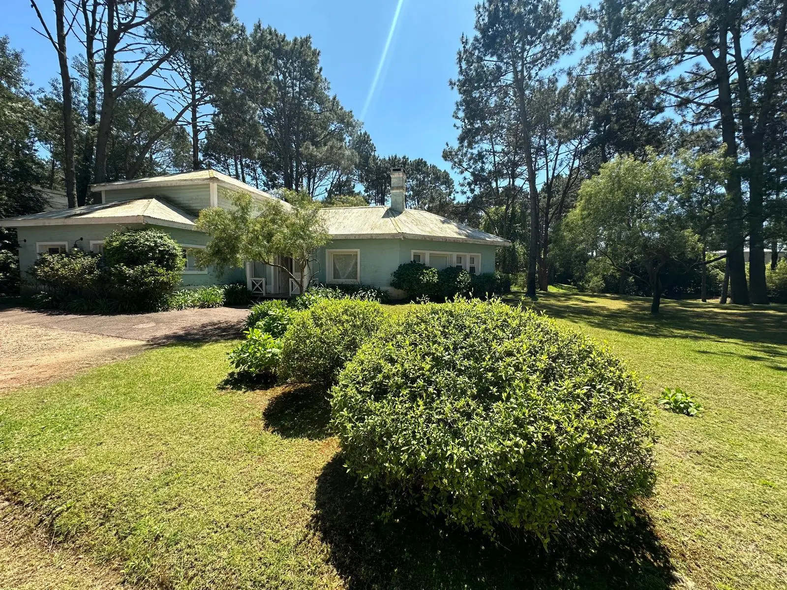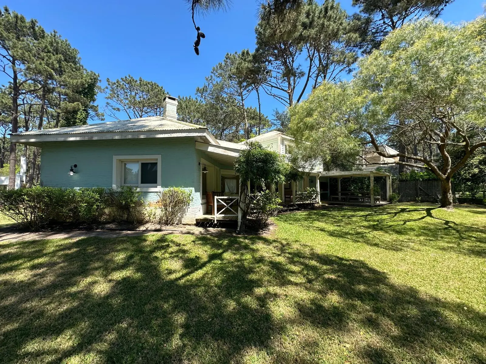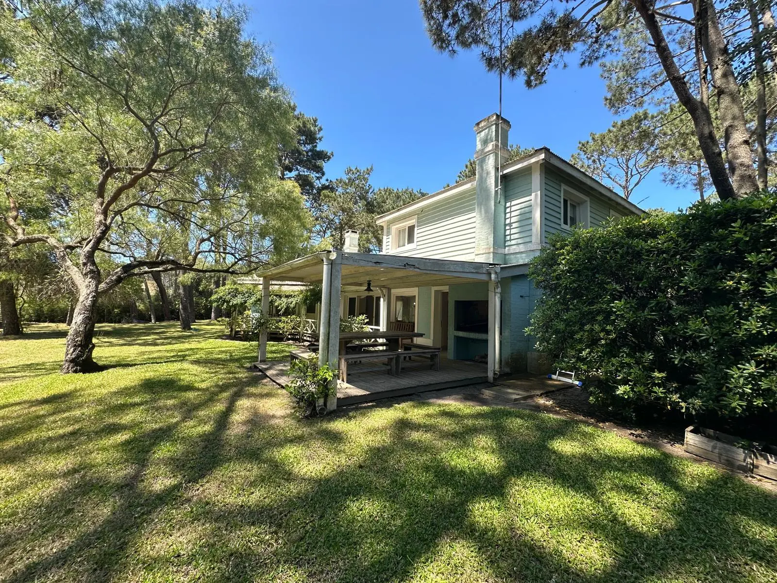 Casa muy comoda y encantadora rodeada de bosques de pinos y a solo 5 minutos del centro de La Barra . Living comedor espacioso con salida a las galerias que la rodean y al jardin con parrillero. 5 dormitorios , 3 de ellos en suite,cocina bien equipada y dependencia de servicio.