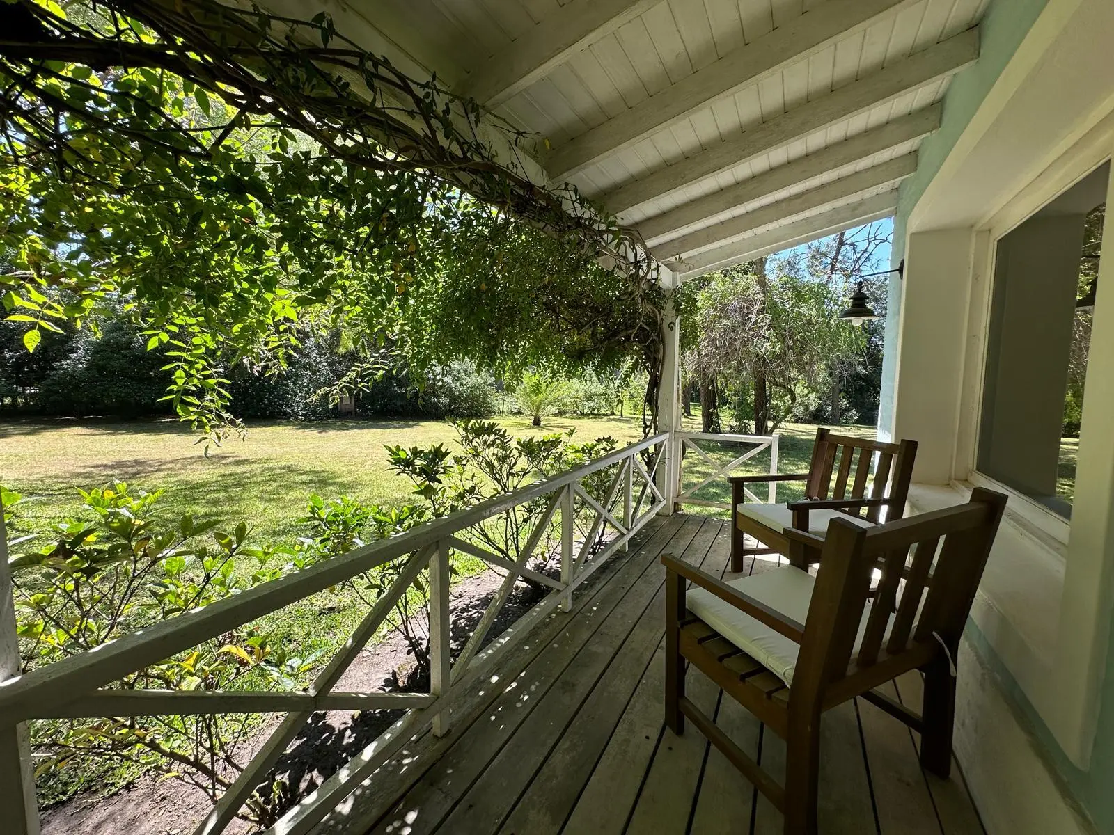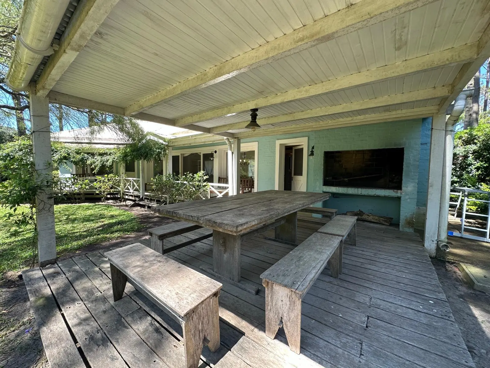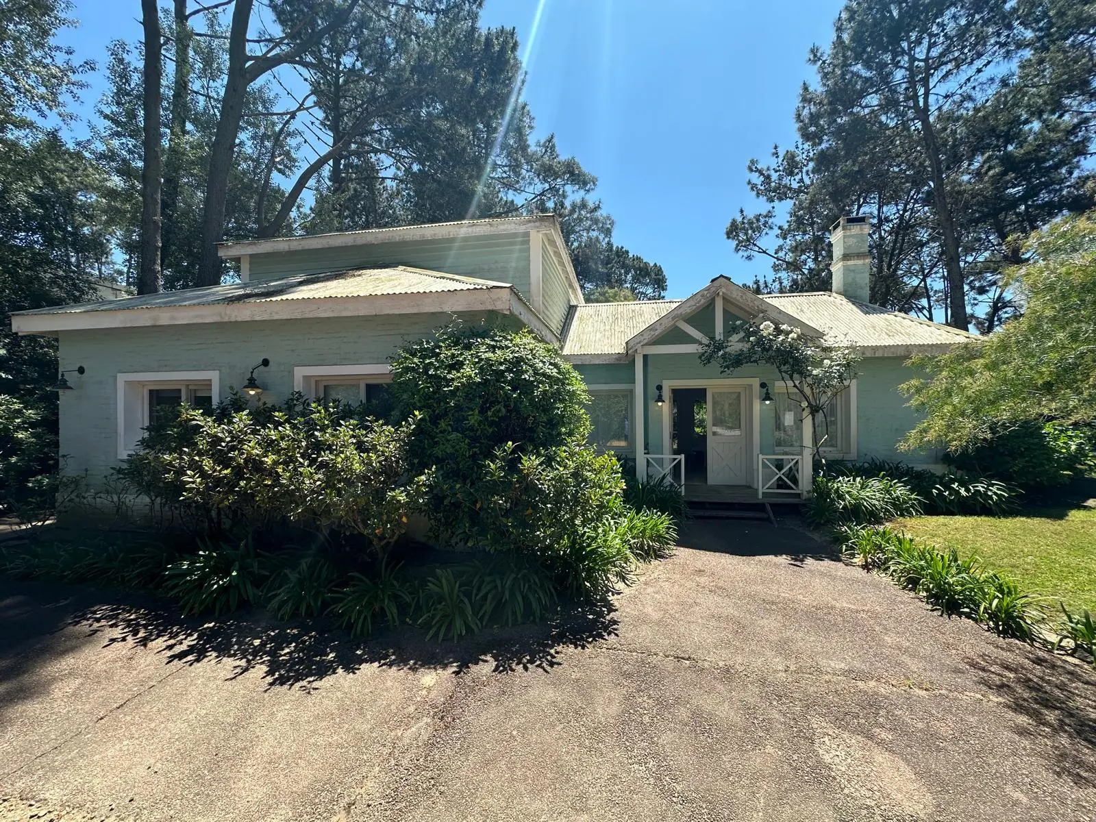 Casa muy comoda y encantadora rodeada de bosques de pinos y a solo 5 minutos del centro de La Barra . Living comedor espacioso con salida a las galerias que la rodean y al jardin con parrillero. 5 dormitorios , 3 de ellos en suite,cocina bien equipada y dependencia de servicio.