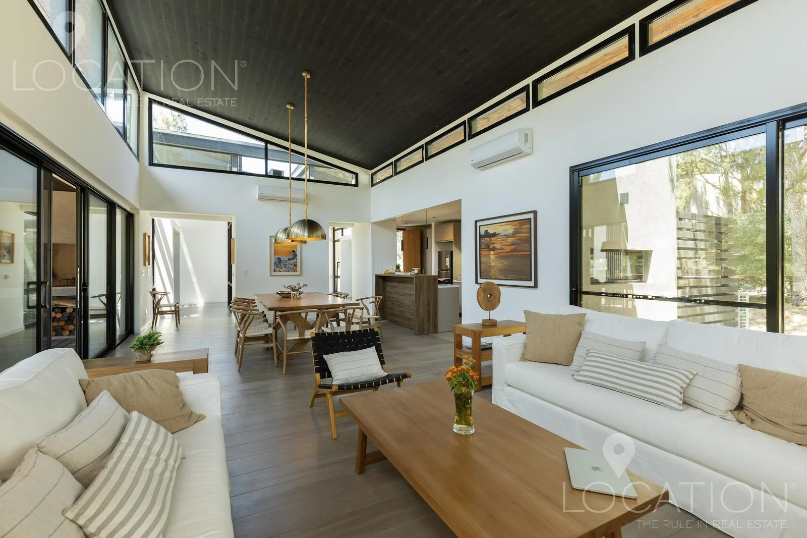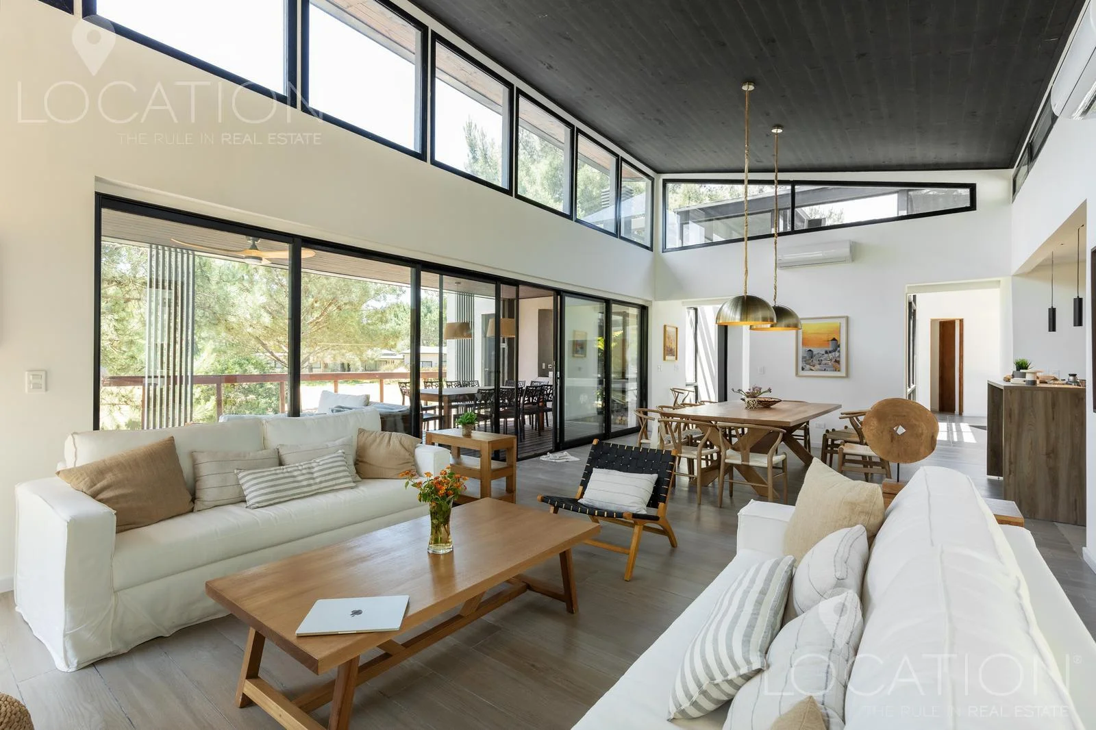 Gran living-comedor con ventanales que conectan con la galería exterior