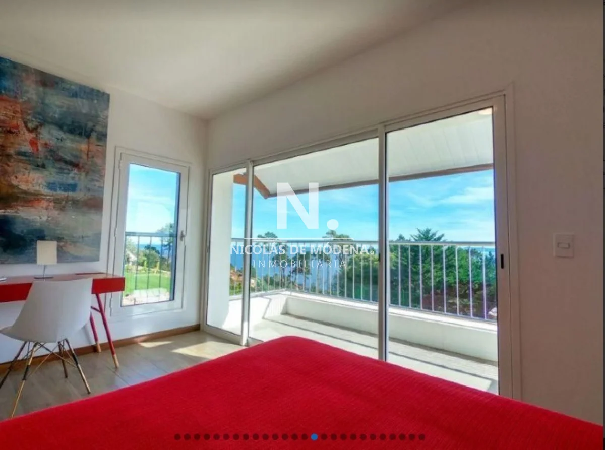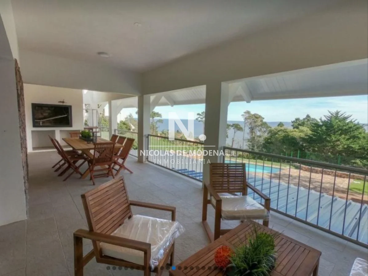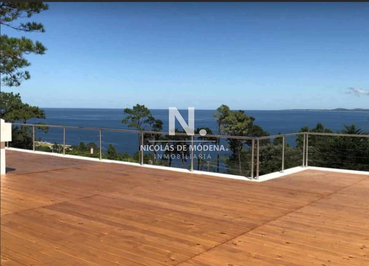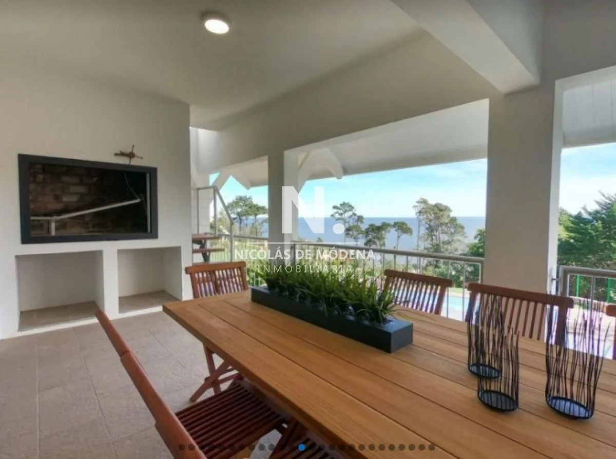 Casa en la mejor ubicación, con hermosa vista a la puesta de sol, con 1.079 mts2 de parque. Cuenta con 4 dormitorios, 2 de ellos en suite, 3 baños y toilette. Living comedor con estufa a leña, gran terraza con barbacoa con espectacular vista al mar. Cómodo estar con bar. Aire acondicionado en todos los ambientes.
