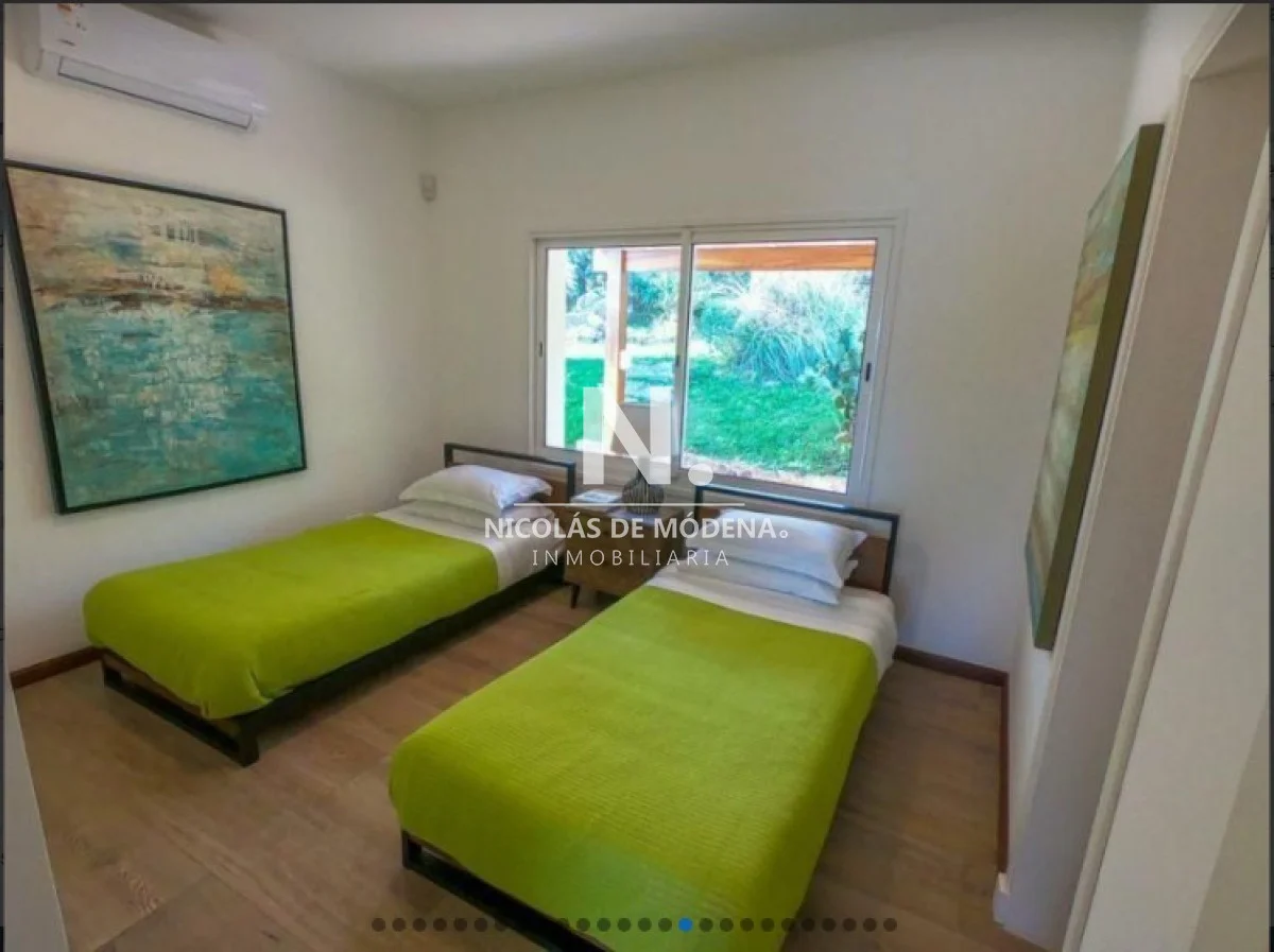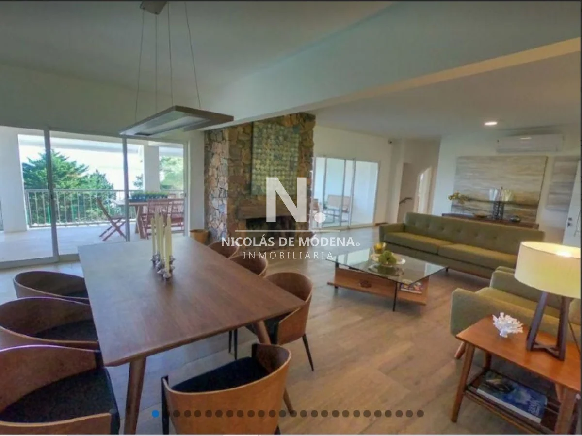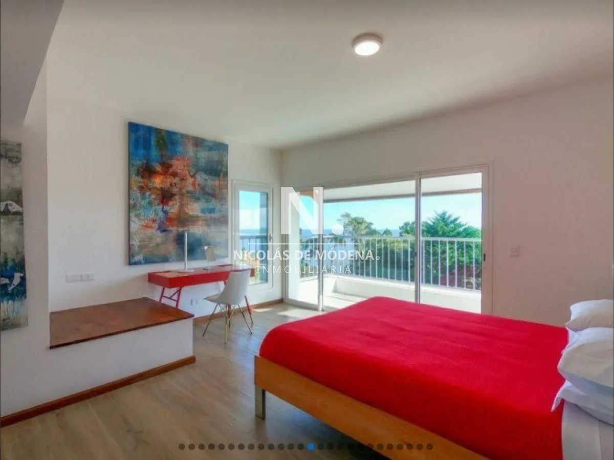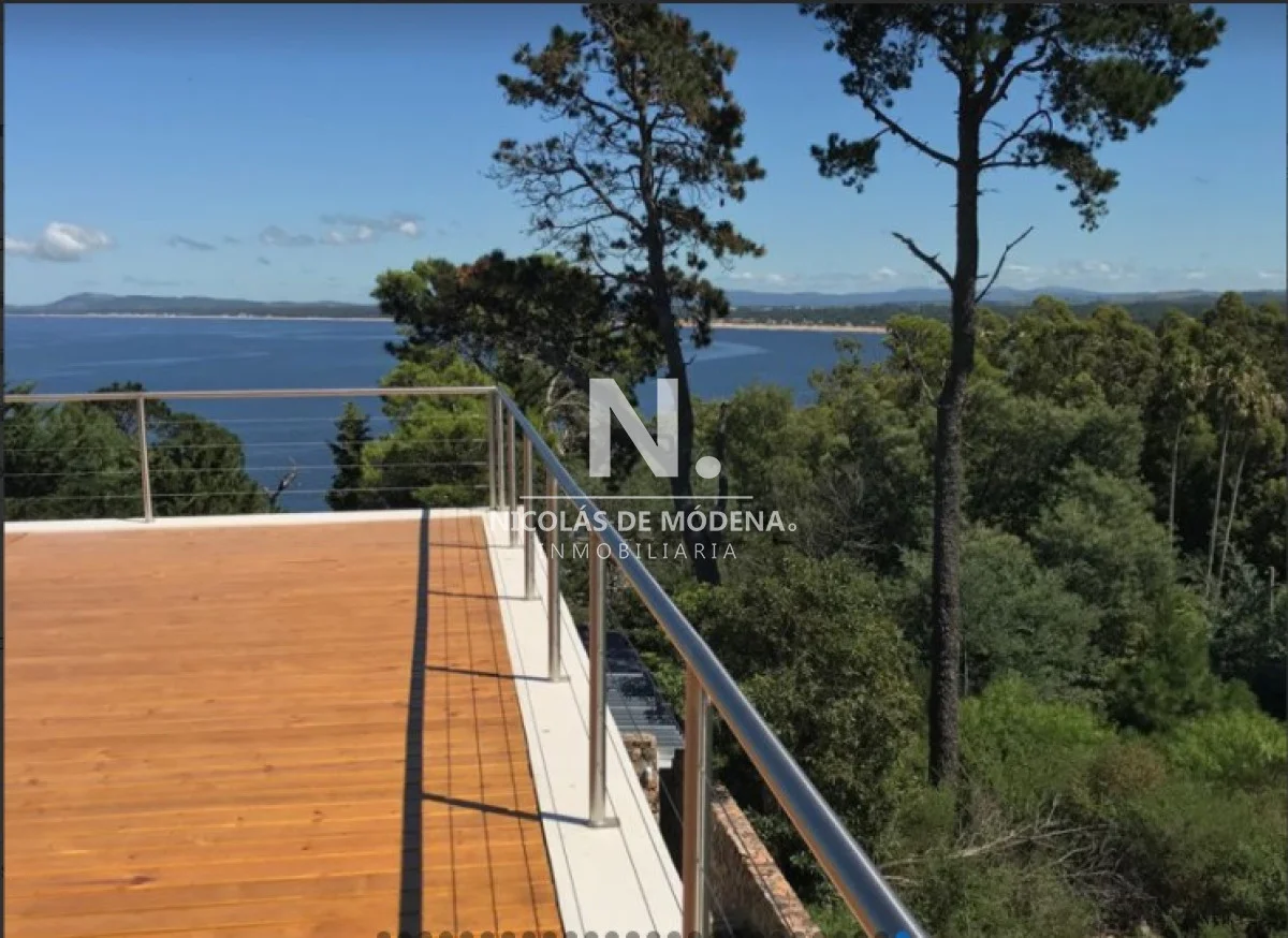 Casa en la mejor ubicación, con hermosa vista a la puesta de sol, con 1.079 mts2 de parque. Cuenta con 4 dormitorios, 2 de ellos en suite, 3 baños y toilette. Living comedor con estufa a leña, gran terraza con barbacoa con espectacular vista al mar. Cómodo estar con bar. Aire acondicionado en todos los ambientes.