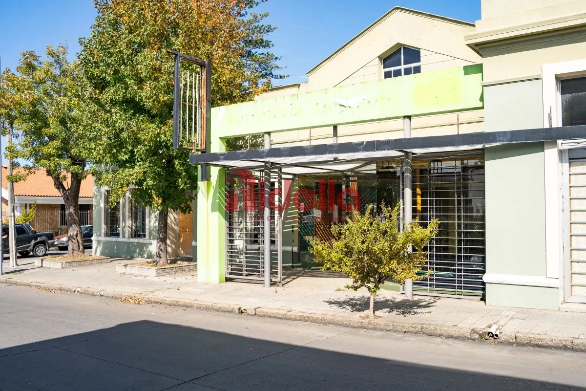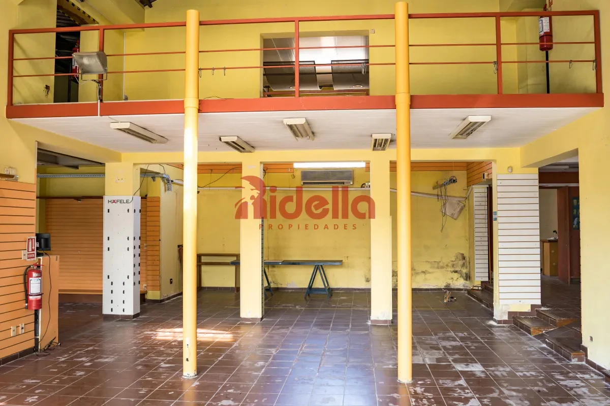 En planta baja amplio salón con vidriera hacia ambas calles, dos oficinas con fines administrativos, depósito y acceso vehicular para descarga de mercadería. Kitchinette y dos baños completos.