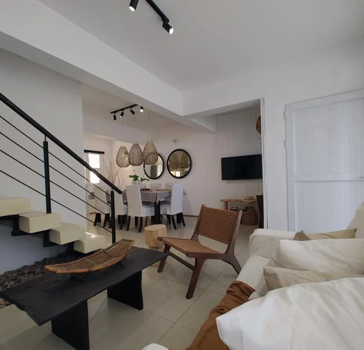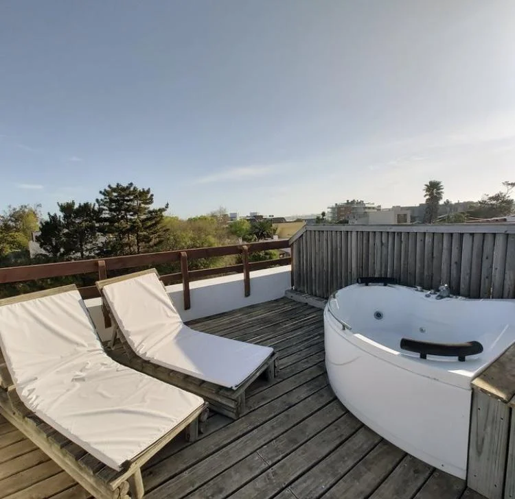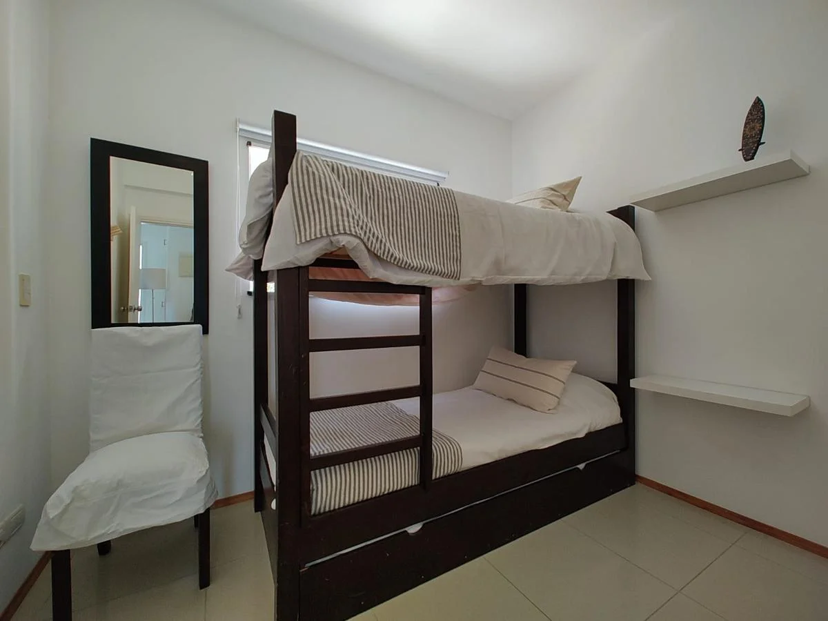 Departamento en dos plantas a 150 metros de playa Bikini y a una cuadra de la ruta 10. Ambas plantas con aire acondicionado. Cuenta con alarma monitoreada. Planta baja un estar con living y comedor, cocina bien equipada, living comedor, lavadero semi cubierto y baño.