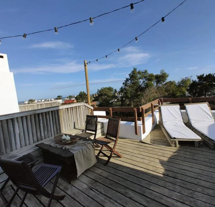 Patio privado y al frente espacio para estacionar dos vehículos. En planta alta tres dormitorios, y un baño para compartir. Terraza privada con deck, parrillero, y jacuzzi. Desde la terraza vista completa al mar y al bosque en contra frente, del dormitorio matrimonial vista lateral al mar.