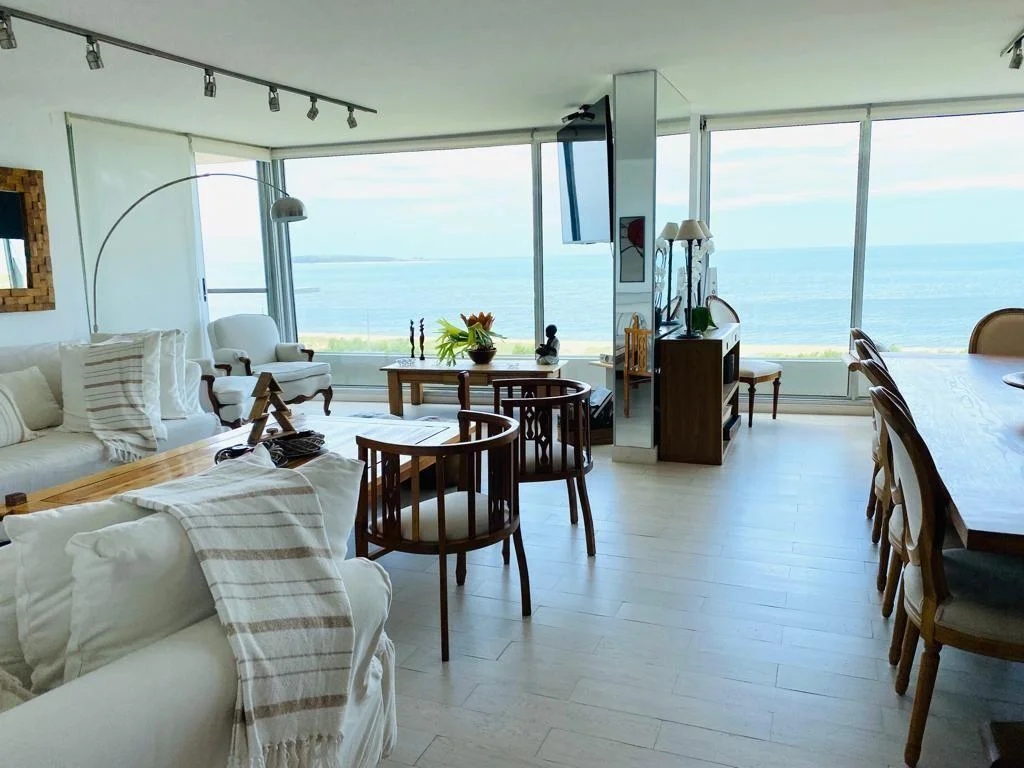 CASASWEB(209214) En un lujoso edificio se encuentra en un piso entero dos espectaculares apartamentos contiguos enprimera línea sobre la Playa Mansa con una inigualable vista al mar. Cuenta con un completo parrillero en rooftop exclusivo de 120 mt2 y una vista casi 360.El piso entero esta divido en 2 apartamentos separados (que se venden juntos), lasegunda unidad es ideal como casa de huespedes o para alquilar para tener un ingreso extra. Se vende completamenteamoblado. En total la propiedad tiene 510mts entre apartamentos y rooftop.Apartamento 1: 275 mts2.3 dormitorios en suite, uno con walking closet y jacuzzi1 baño toiletteCocina completa super moderna con desayunador, con lava-secarropa ylavavajillaLiving comedor con amplia vista a la playa Mansa donde se puede disfrutar los sunsets.Muebles Walmer y Mar Abierto en toda la propiedadCuenta con dos estacionamientos cerrados y 2 baulerasApartamento 2:120 mts22 dormitorios en suite uno con jacuzzi1 baño toiletteLiving Comedor con hermosa vista al marCocina completa con lava-secarropaMuebles Walmer y Mar Abierto en toda la propiedadcuenta con estacionamiento cerrado y bauleraEspecificaciones técnicas:-Piso Porcelanato español-Calefacción central-Aire Acondicionado frio/calor en todos los dormitorios-Televisor Led en todos los cuartos y en el living-Cocina completamente equipada con electrodomesticos de primera linea-Muebles de primera calidad-Cortinas electricasEl Edificio:El complejo se ubica en un predio de 8.000 mts2, rodeado de vegetación, con dospiscinas climatizadas, hidromasaje interior y exterior, sauna, gimnasio moderno, micro cine,playroom y playground. Cuenta con 2 barbacoas cerradas tipo salon de fiesta, servicio de mucama todo el año y con serviciode playa. En verano tambien cuenta con animadores para los mas chiquitos. Ver mas detalles en casasweb.com?209214