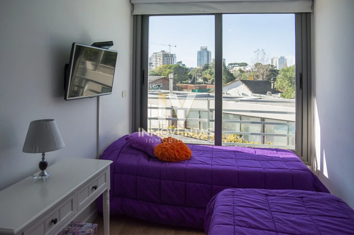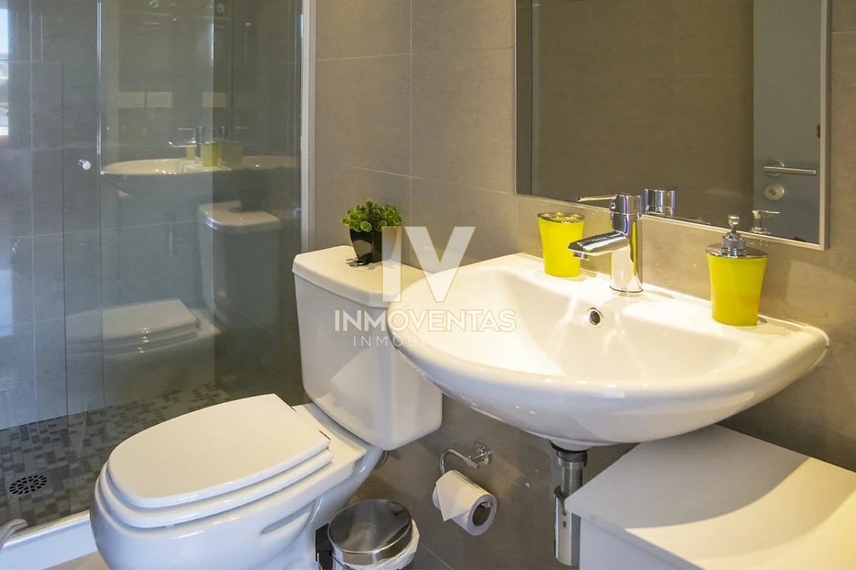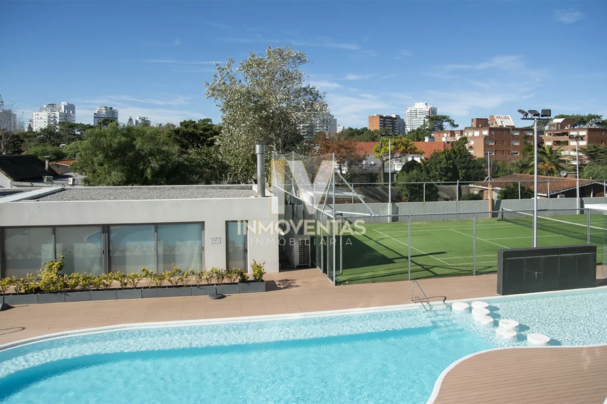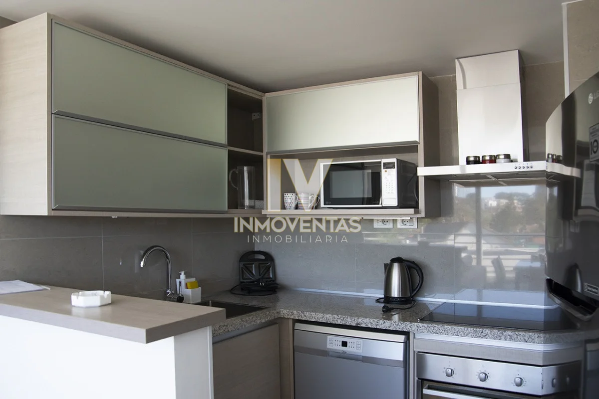 Piso bajo, cómodo apto con 2 dormitorios en suite living comedor y kitchenette. Cochera exterior fija. Edificio con todos los amenities. Referencia Interna : Tera-24