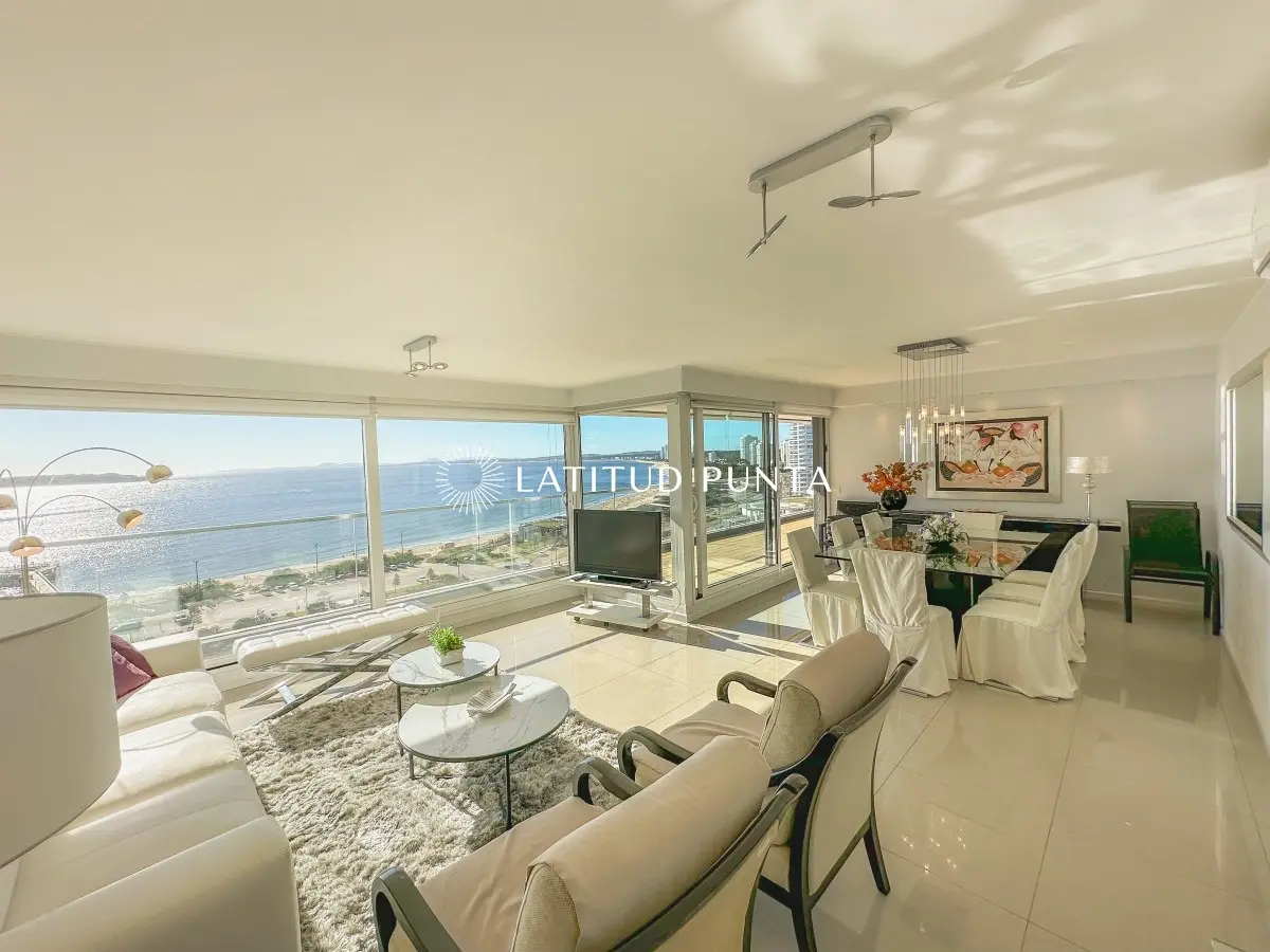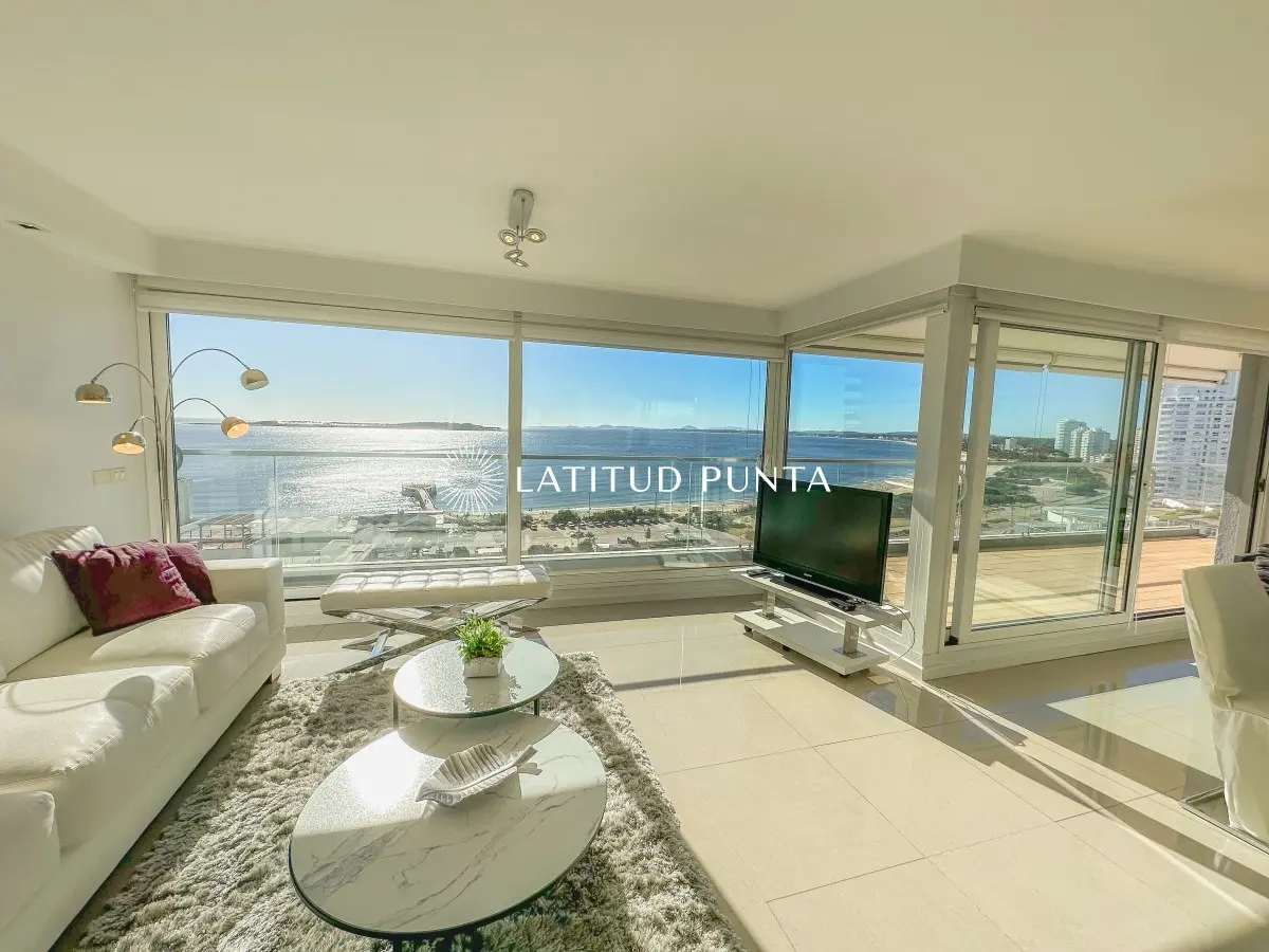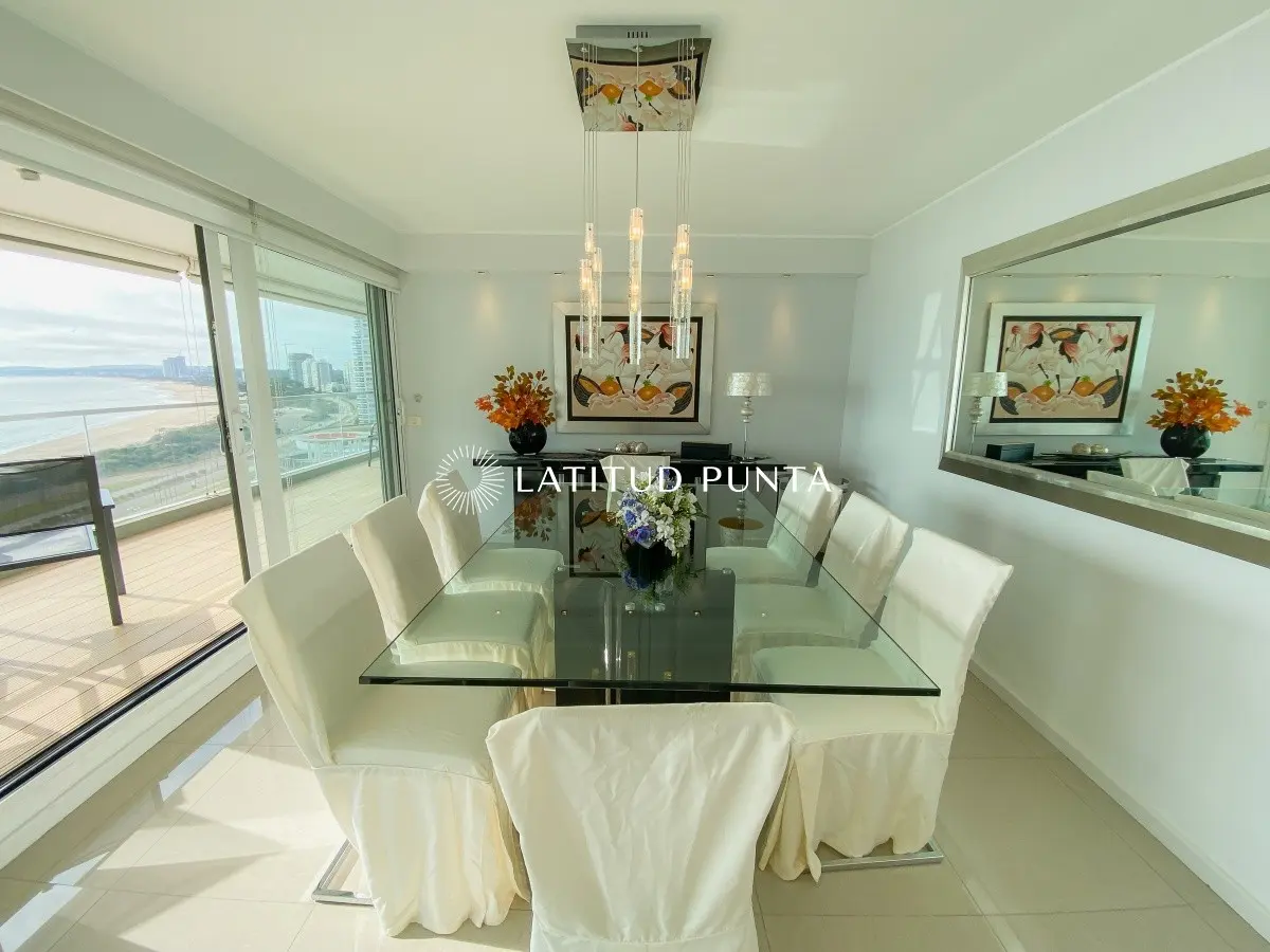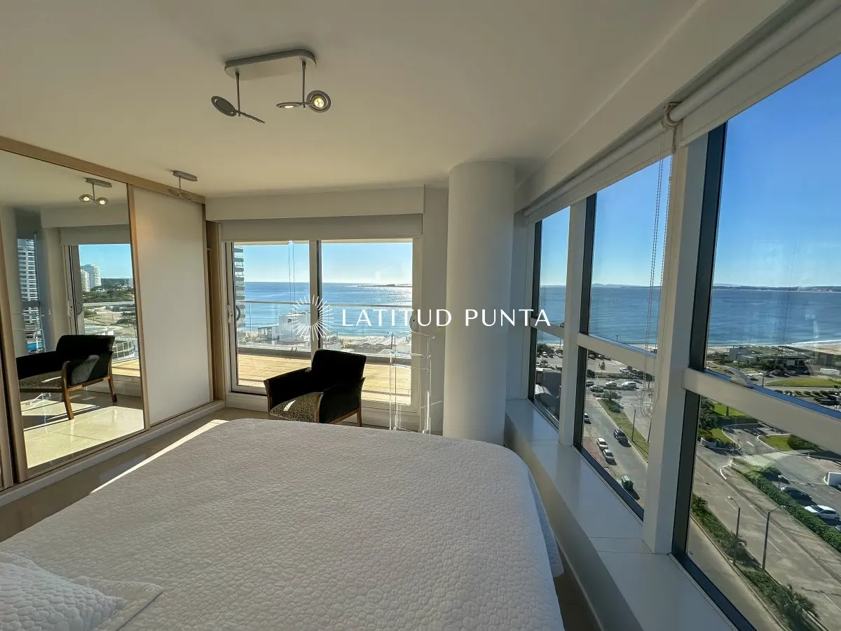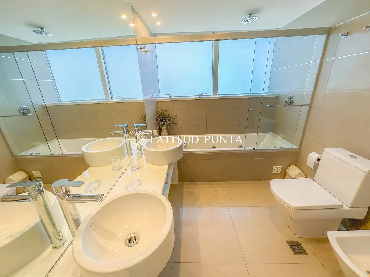 Impactantes vistas a la bahía e Isla Gorriti, desde este piso alto en Mansa a pasos de la playa. Cuenta con 3 dormitorios en suite, toilette, cocina definida con sector lavadero y comedor diario, dependencia de servicio completa. Doble terraza, una hacia la Mansa y otra hacia la Brava. En edificio de primer nivel con amenities completos, a pasos de Enjoy Conrad.