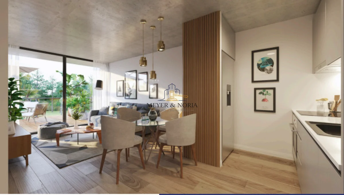 Apartamento de dos dormitorios, living comedor , cocina integrad, terraza y garaje.