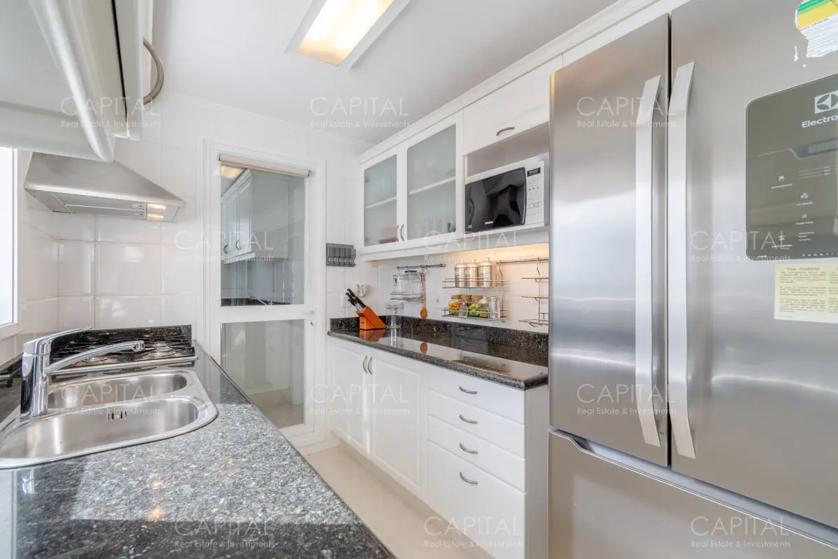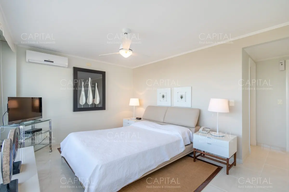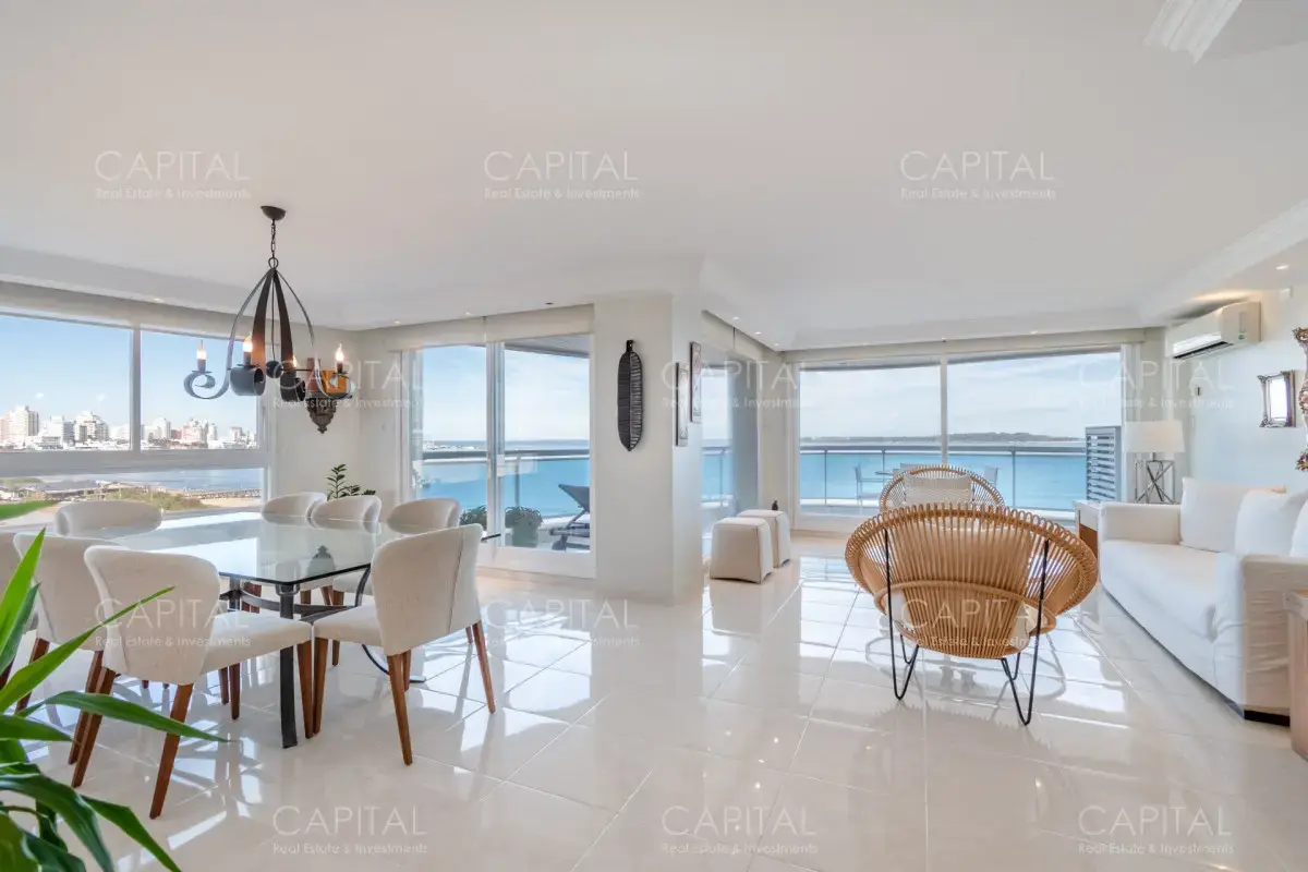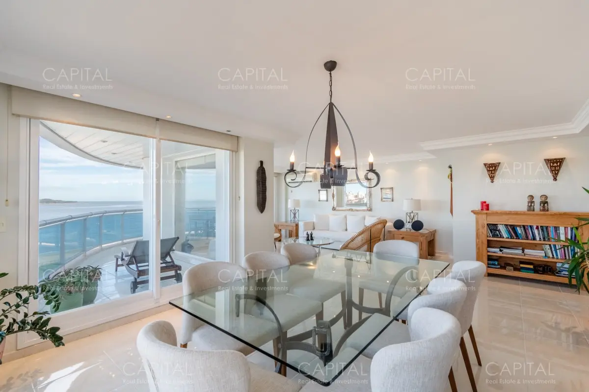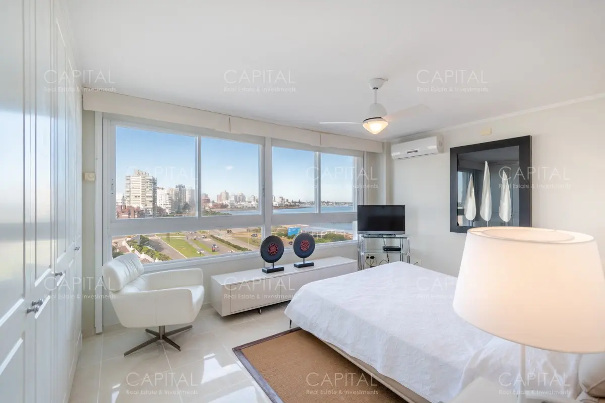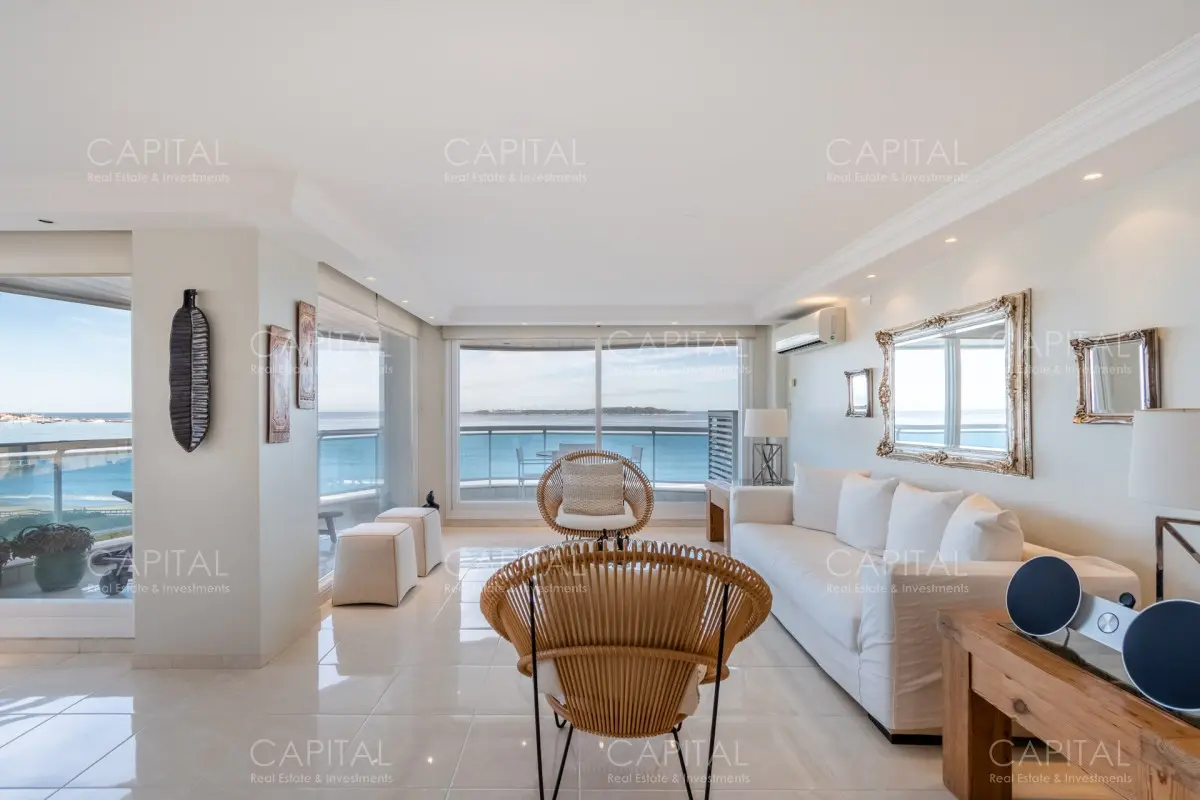 Espectacular planta con espacios amplios y luminosos. Dispone de tres dormitorios en suite más dependencia de servicio con baño. Amplia cocina. Gran living comedor con terraza mirando al mar con vista al atardecer de Playa Mansa .