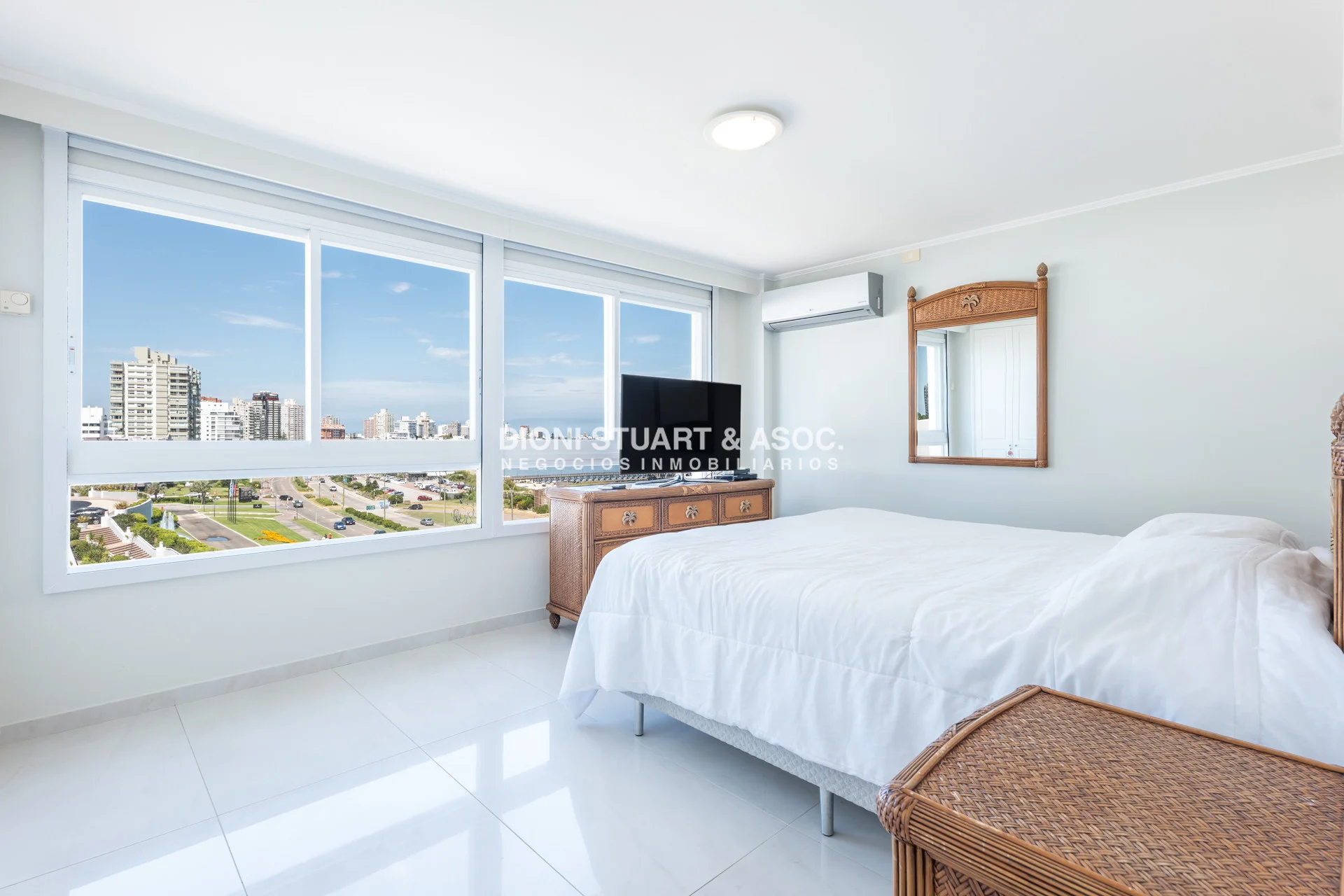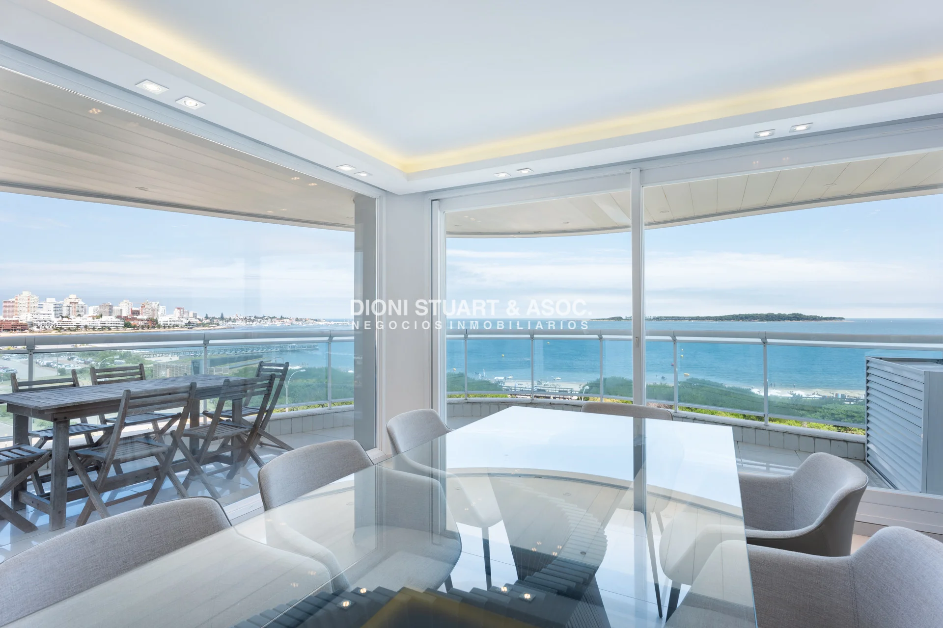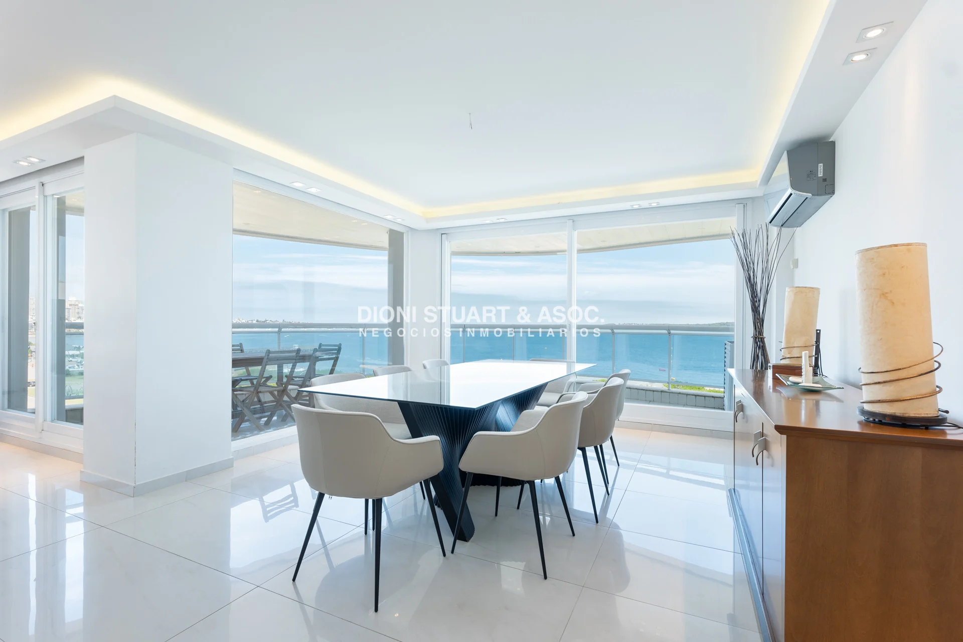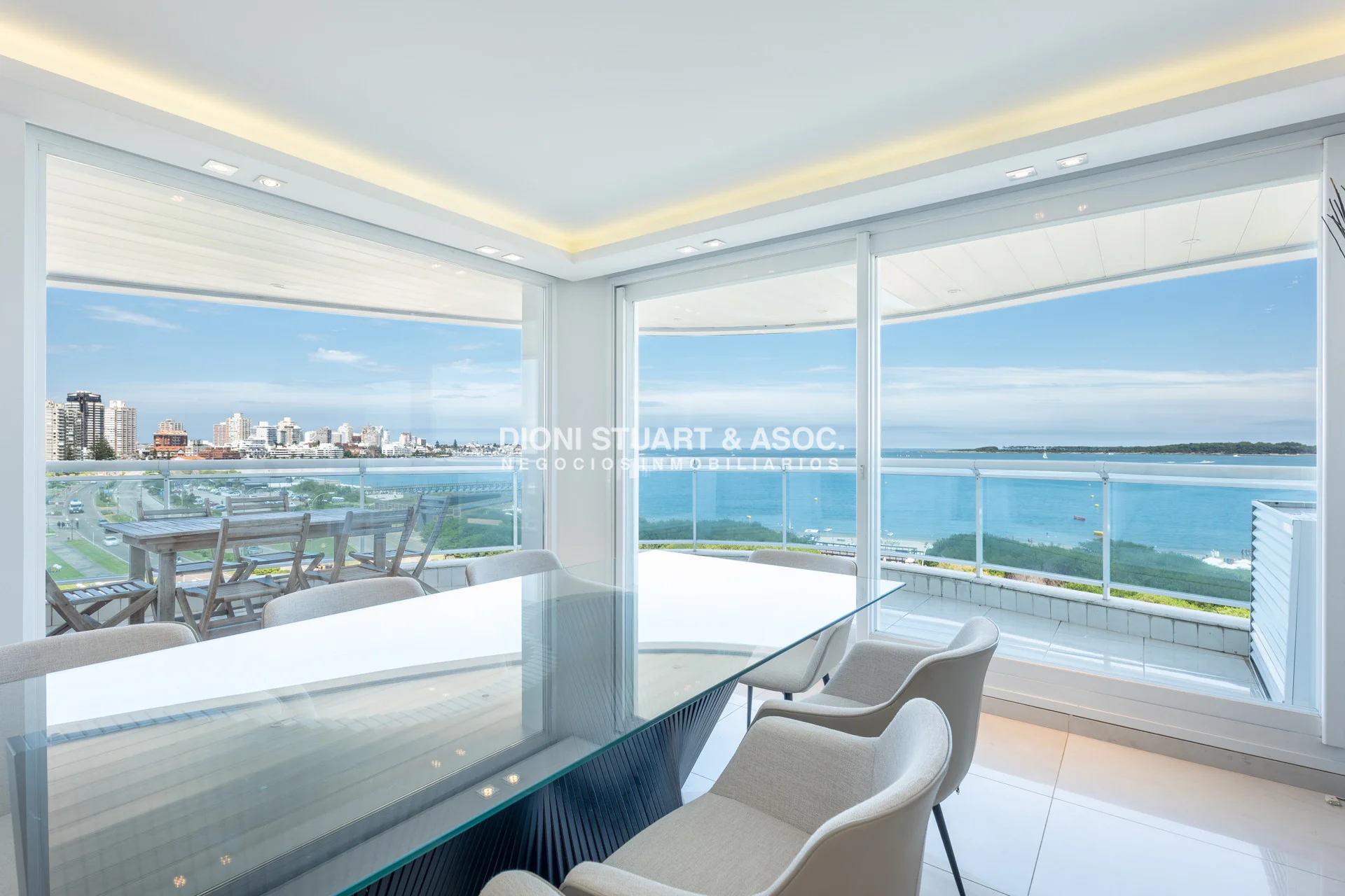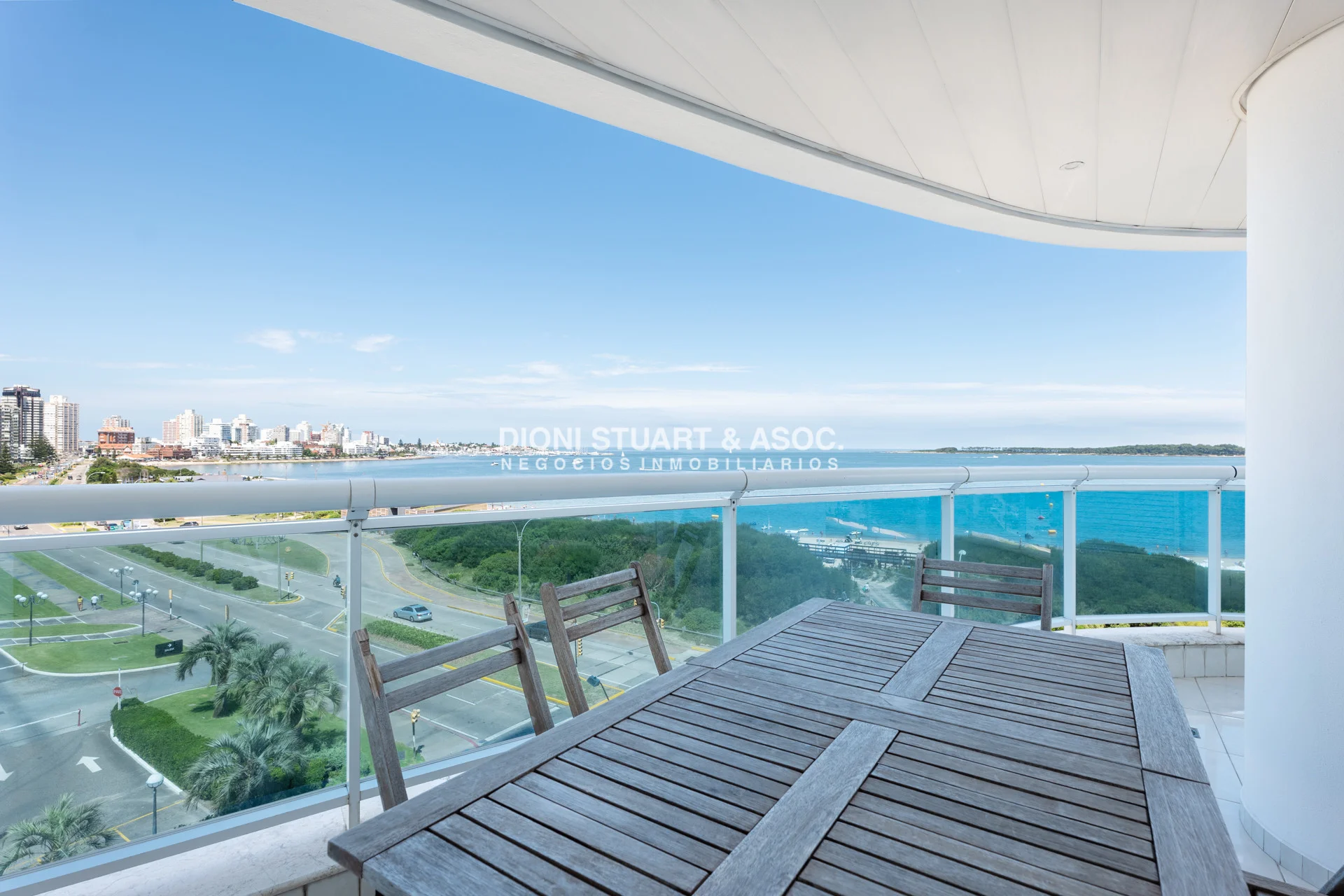 Unidad esquinera hacia Punta del Este, con vistas 180 grados partiendo desde Hotel ENJOY (Ex CONRAD) hasta Punta Ballena. Espectacular de dia por el mar azul y la iconica puesta del sol y de noche por la vista a la ciudad iluminada. Esta unidad en más de 180 m2 totales conecta vista-espacio de forma única, dado que inclusive desde sus dormitorios también podemos ver la Península. En total son 3 Dormitorios en suite + Toilette + cocina comedor con lavadero y dependencia en suite. Todos sus dormitorios con placares empotrados.