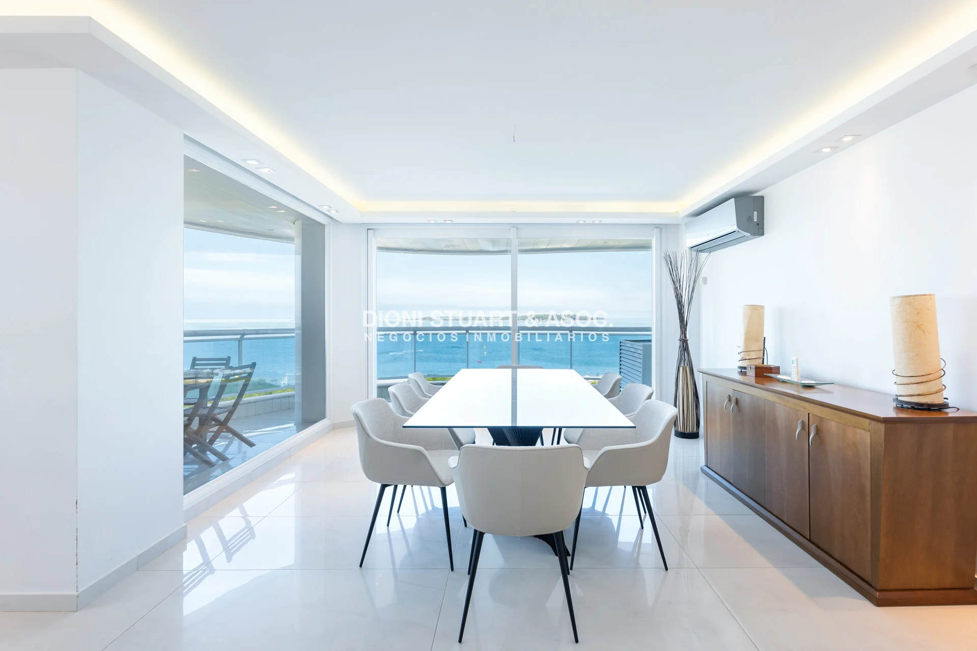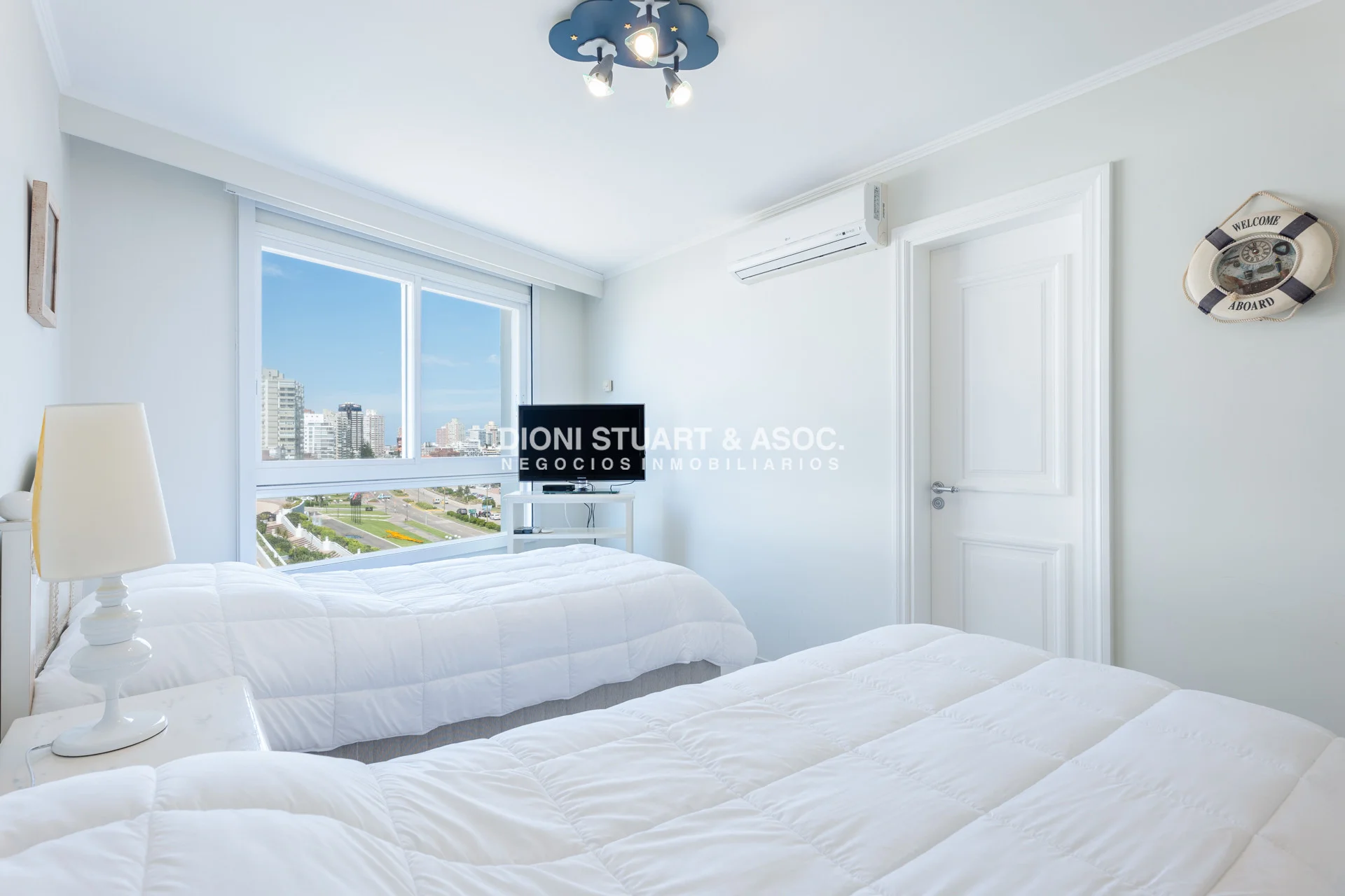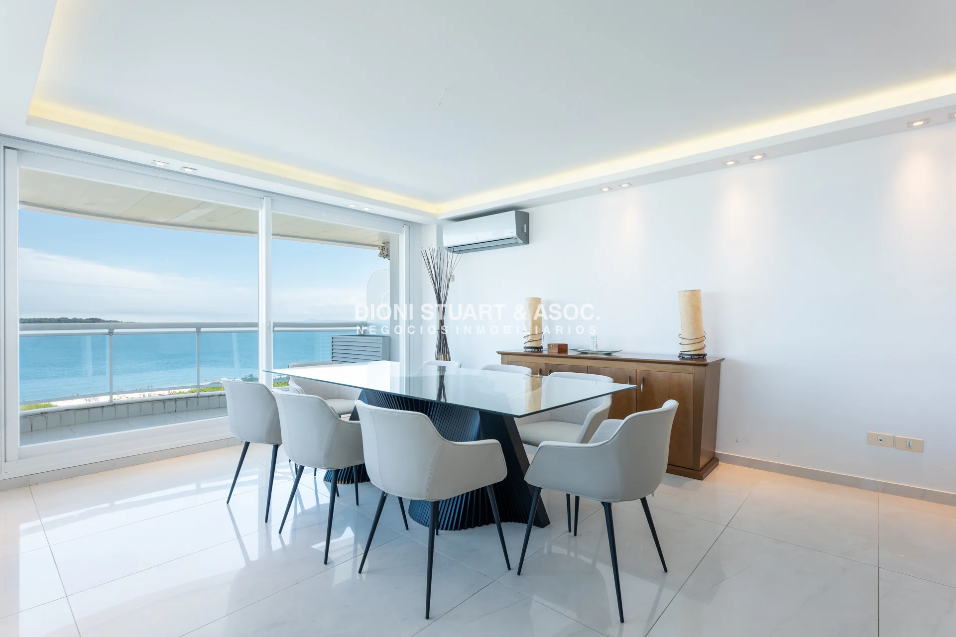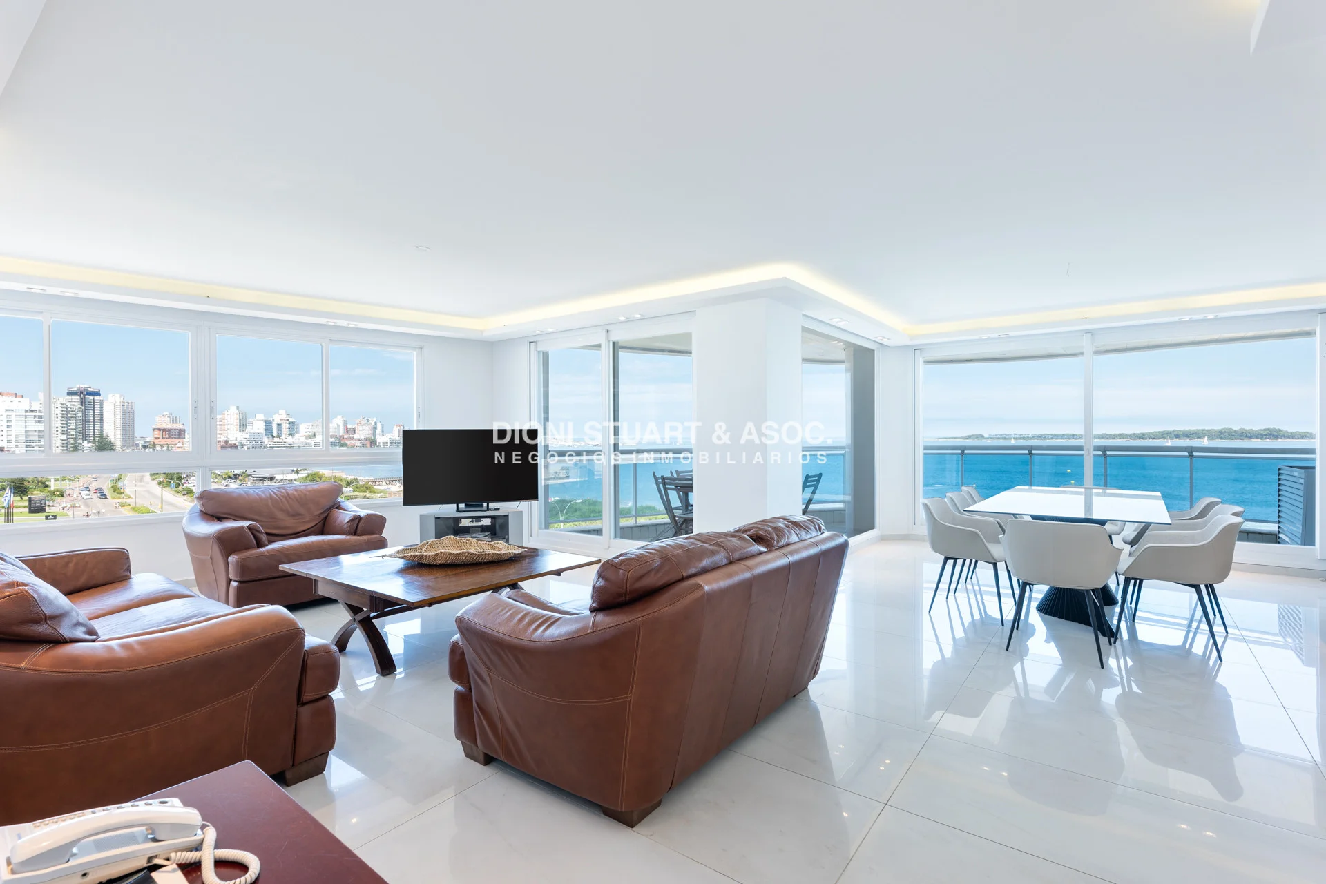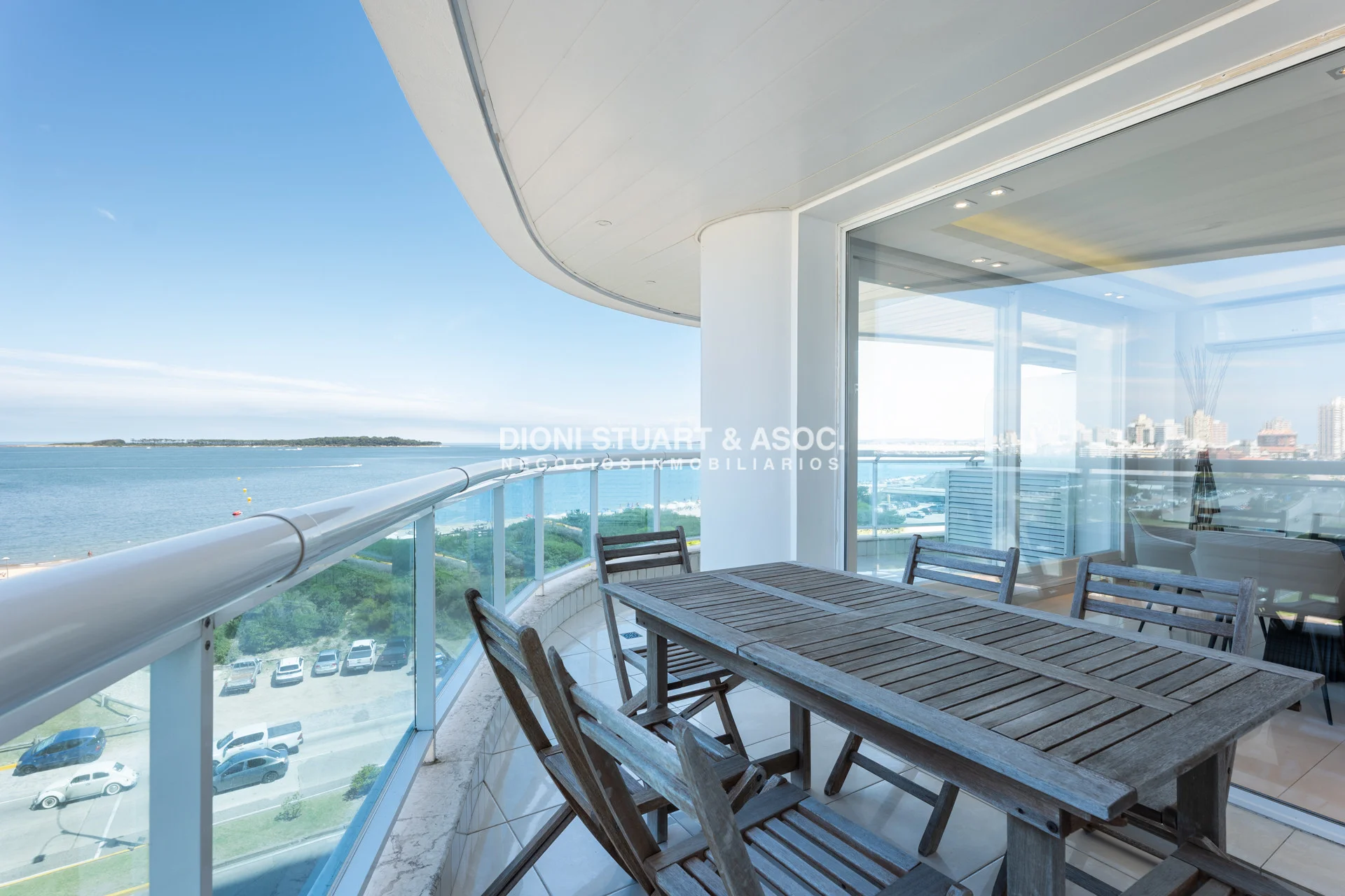 Unidad esquinera hacia Punta del Este, con vistas 180 grados partiendo desde Hotel ENJOY (Ex CONRAD) hasta Punta Ballena. Espectacular de dia por el mar azul y la iconica puesta del sol y de noche por la vista a la ciudad iluminada. Esta unidad en más de 180 m2 totales conecta vista-espacio de forma única, dado que inclusive desde sus dormitorios también podemos ver la Península. En total son 3 Dormitorios en suite + Toilette + cocina comedor con lavadero y dependencia en suite. Todos sus dormitorios con placares empotrados.