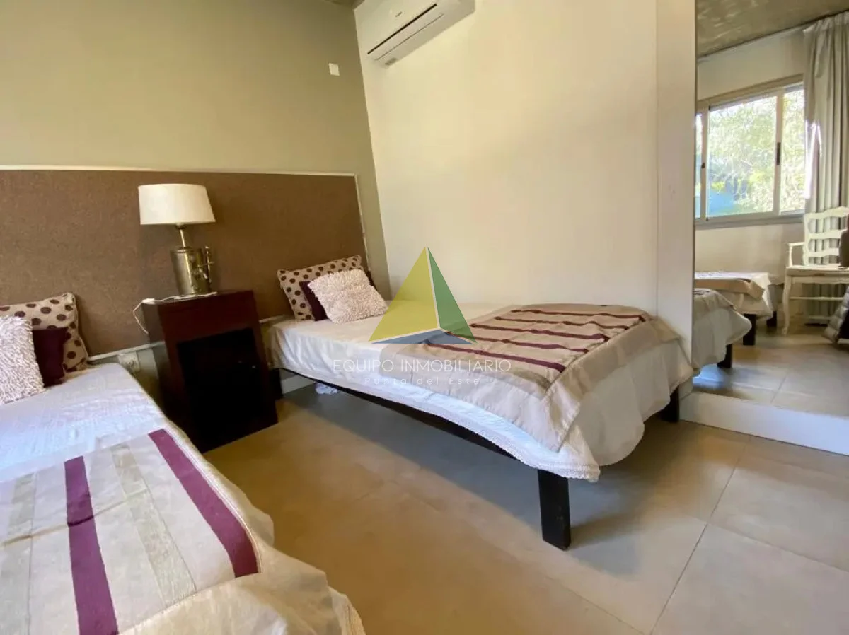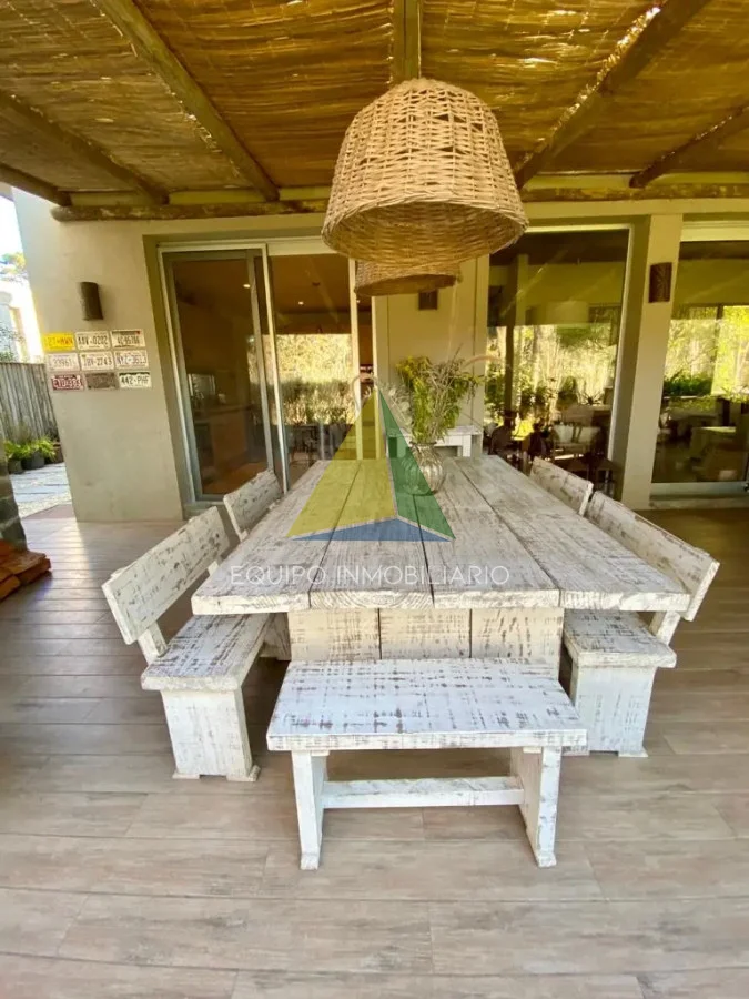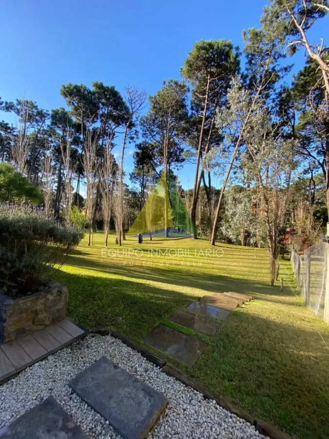 En un lote de 1.056 m2 y desarrollada en 280 m2 distribuidos en dos plantas, esta espléndida propiedad cuenta con un espacioso living comedor con hogar a leña, ventanales de piso a techo que permiten disfrutar el jardín desde el interior de la casa. Parque que rodea toda la casa, ofreciendo una vista despejada y verde desde cualquier rincón. Aquí se ubica el parrillero techado con living exterior y excepcional vista arbolada.