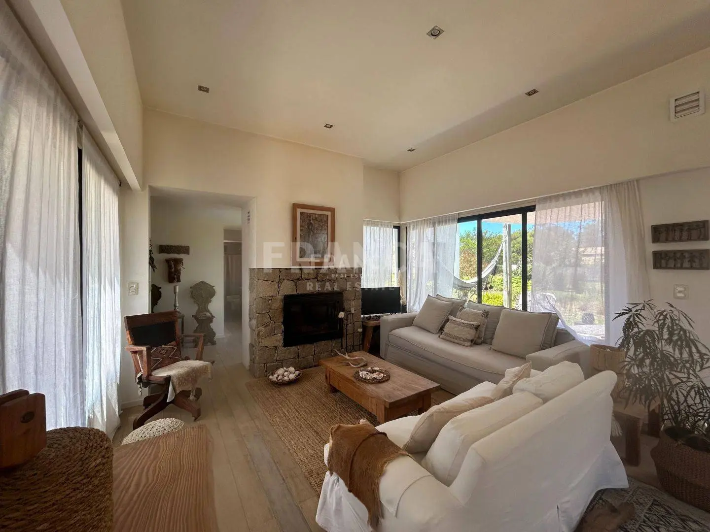 Detalles de decoración de estilo y ambientes relajados completan esta casa de espacios abiertos. En el entorno de un gran jardín los espacios exteriores se funden con la casa y su barbacoa para hacer los típicos "asados" Cuenta con dos cuartos. La master suite con cama queen y un cuarto con su baño completo con dos camas single. Cocina super equipada con todas las comidades necesarias.