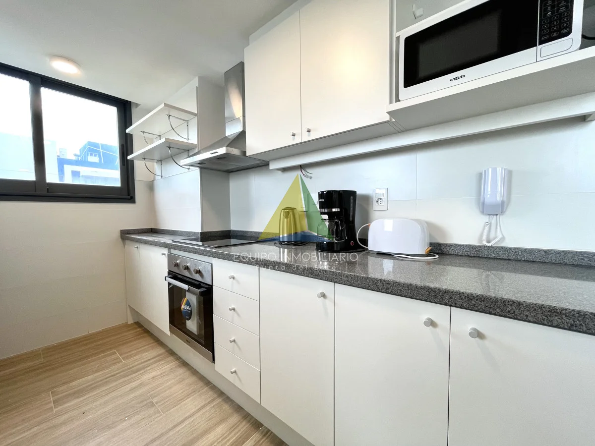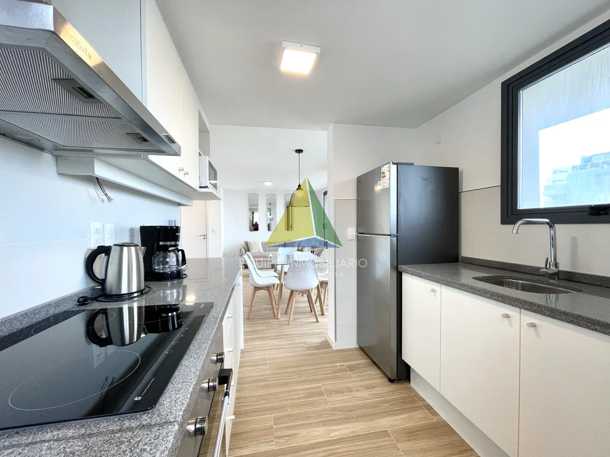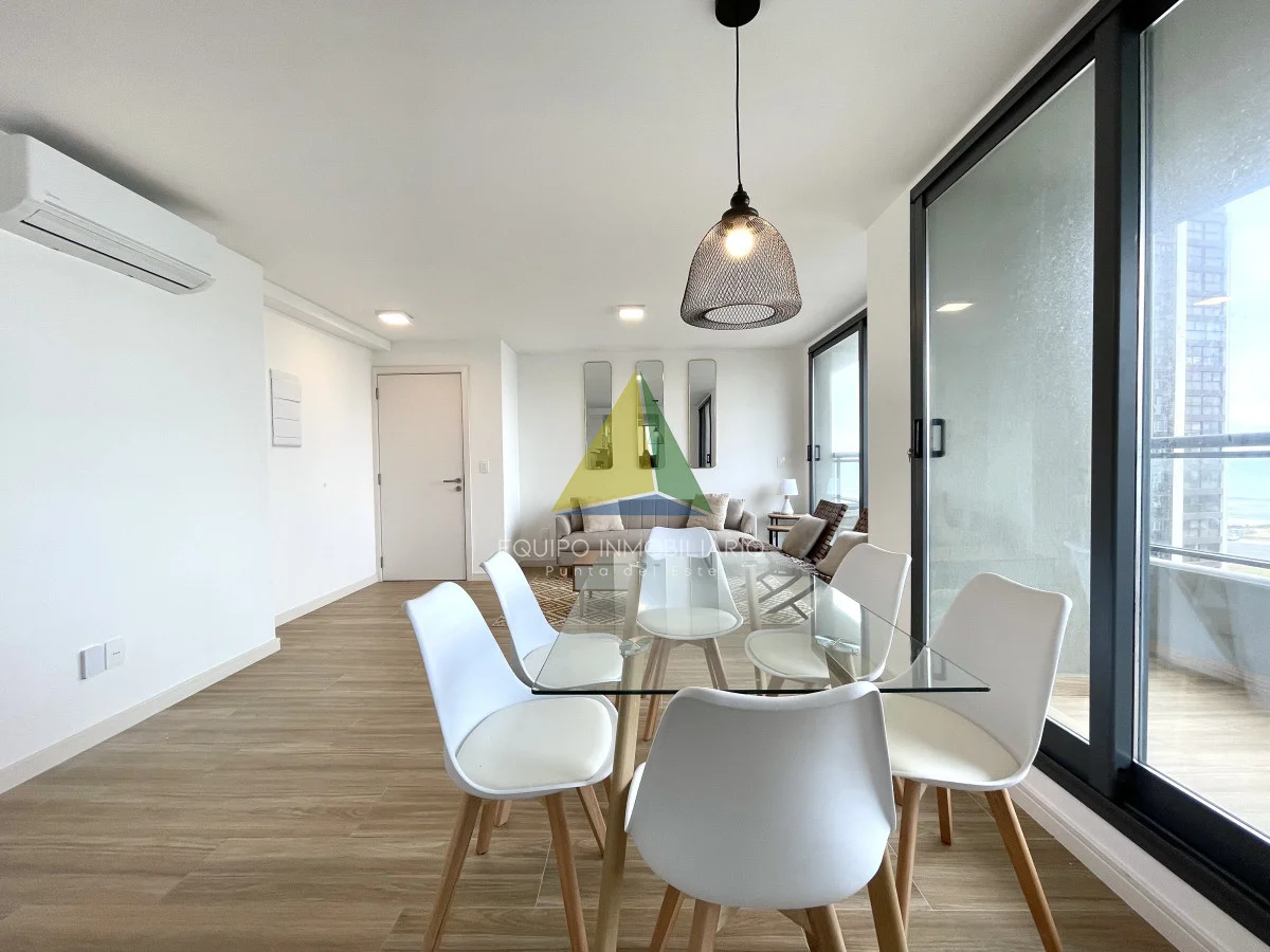 La cocina integrada se abre al living comedor, creando un espacio abierto y muy luminoso perfecto para entretener a los invitados o disfrutar de una noche tranquila en casa. También cuenta con salida hacia amplia terraza con vistas abiertas hacia La Brava y entre cortadas hacia La Mansa.