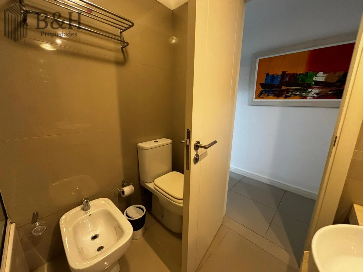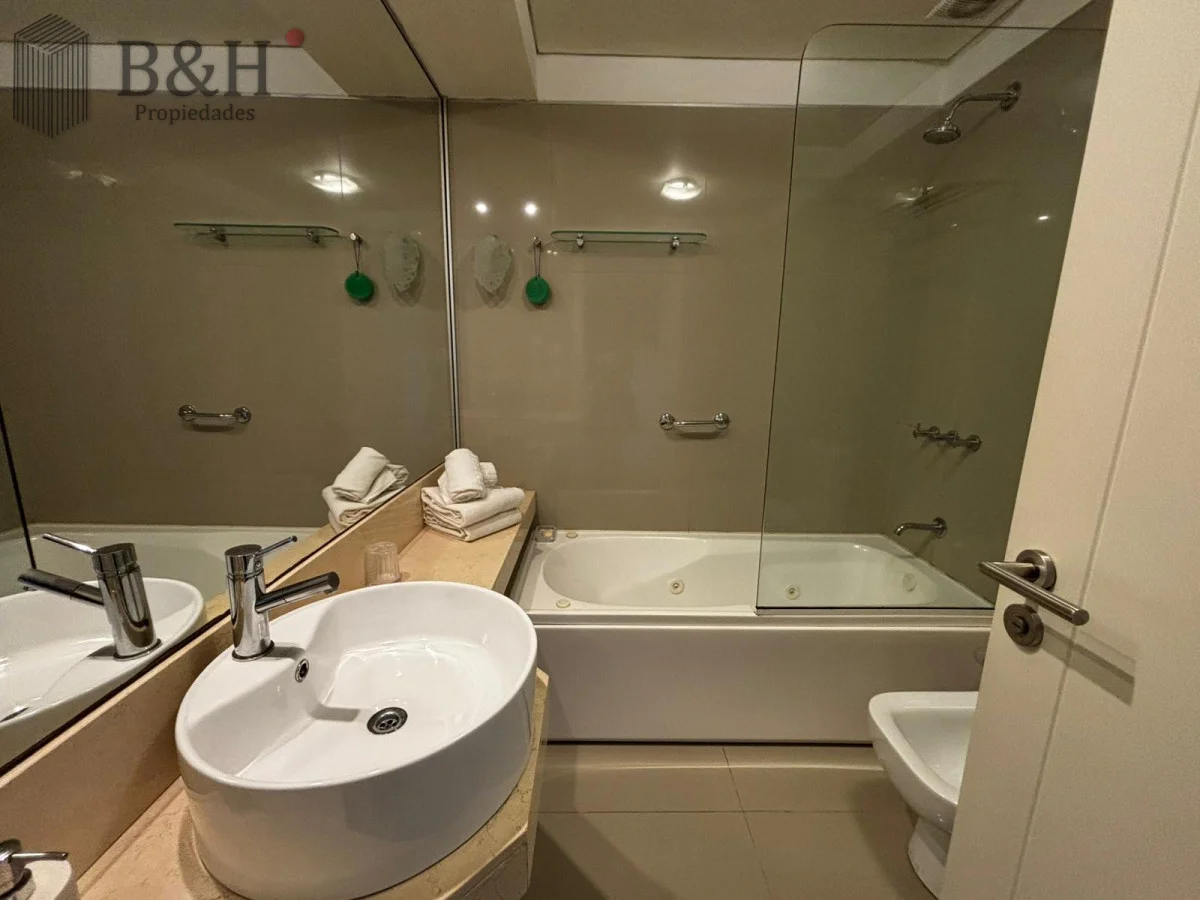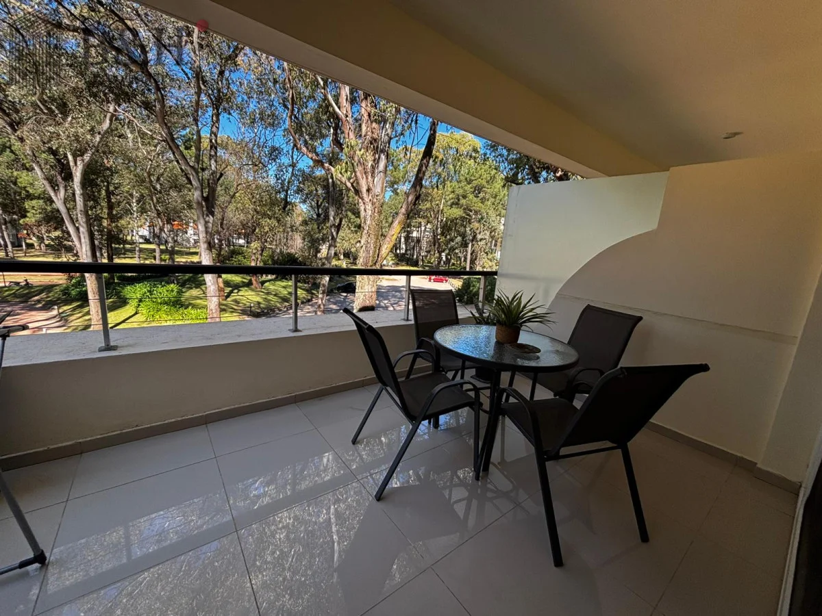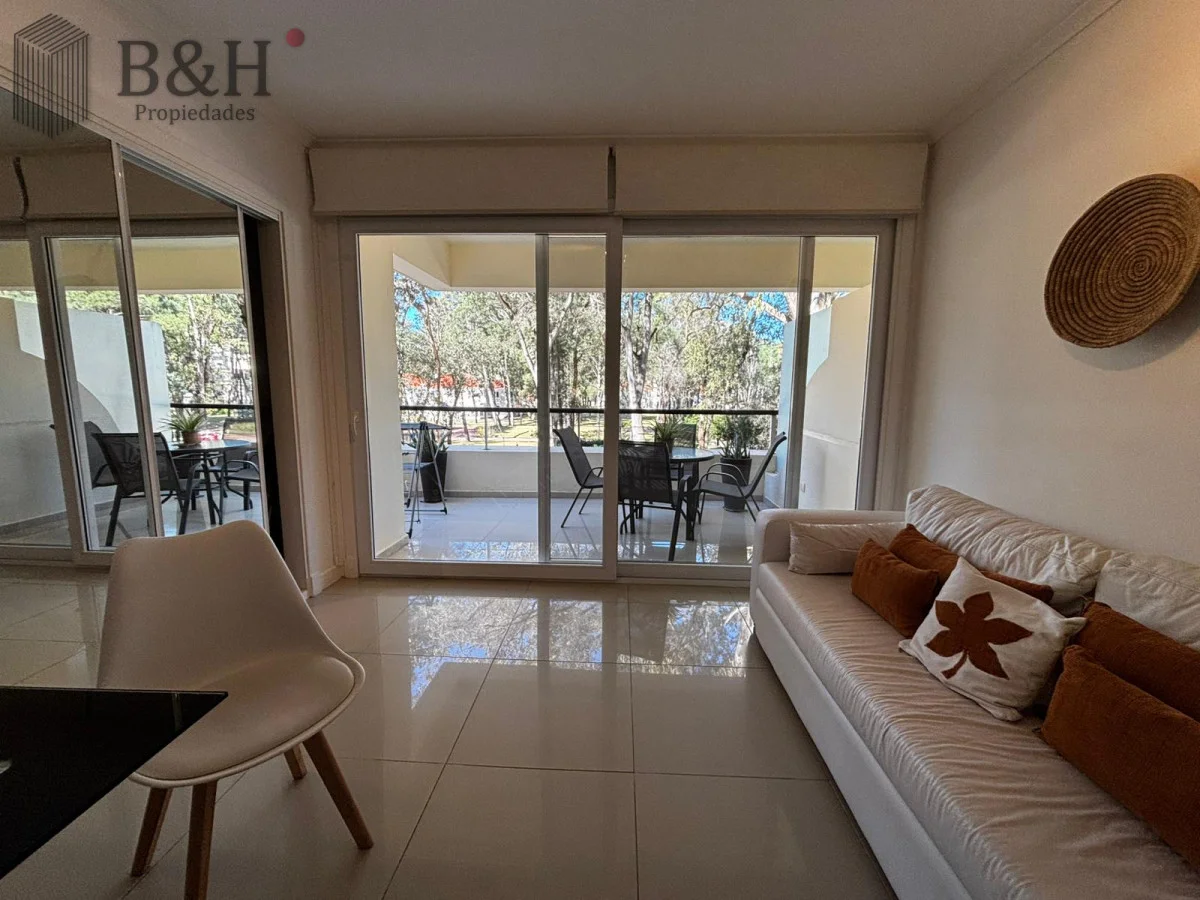 Monoambiente con ventanal al frente y balcón, rodeado de bosque y cerca del mar. El interior está separado en dos por una cortina japonesa. Cama Queen nueva y almohadas confortables. El baño tiene bañerajacuzzi. La cocina está bien equipada, dos anafes y horno eléctrico embutido. Ropa blanca y servicio de mucama todos los días, si quieres.