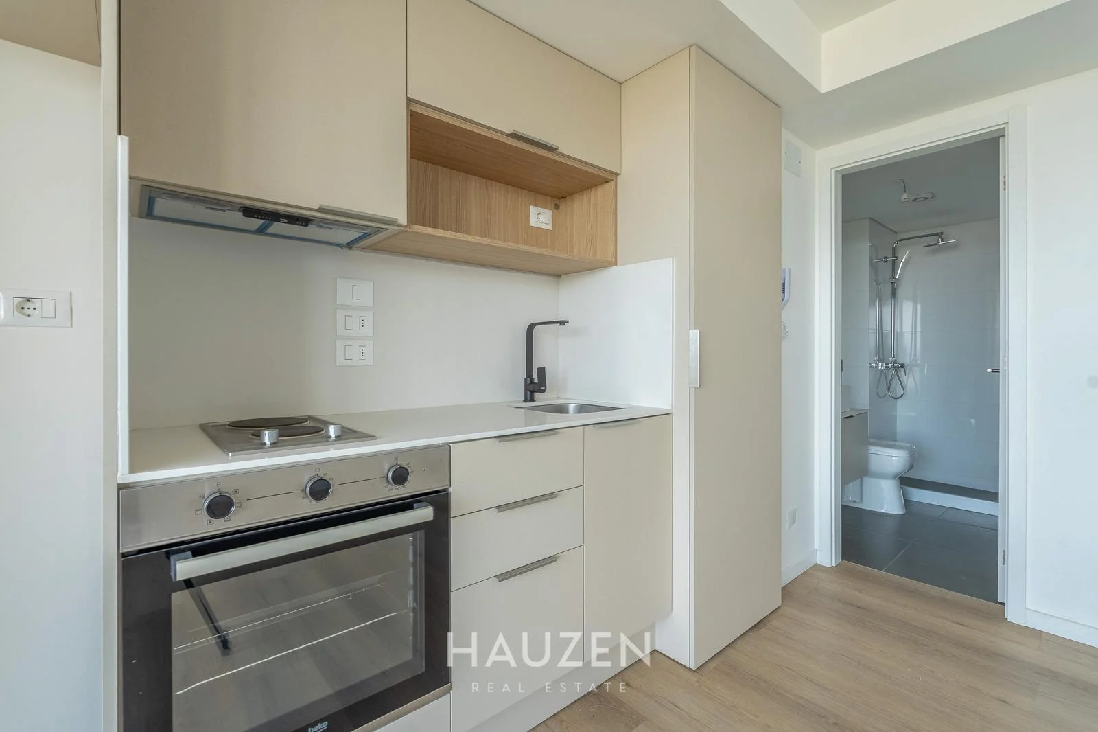 Moderno monoambiente seminuevo en piso alto de More Atlántico - Torre 1. Una de las tipologías más destacadas.