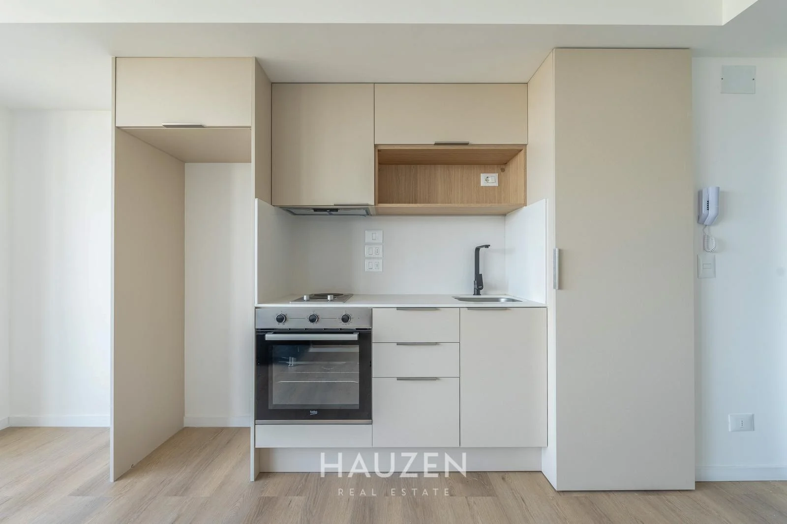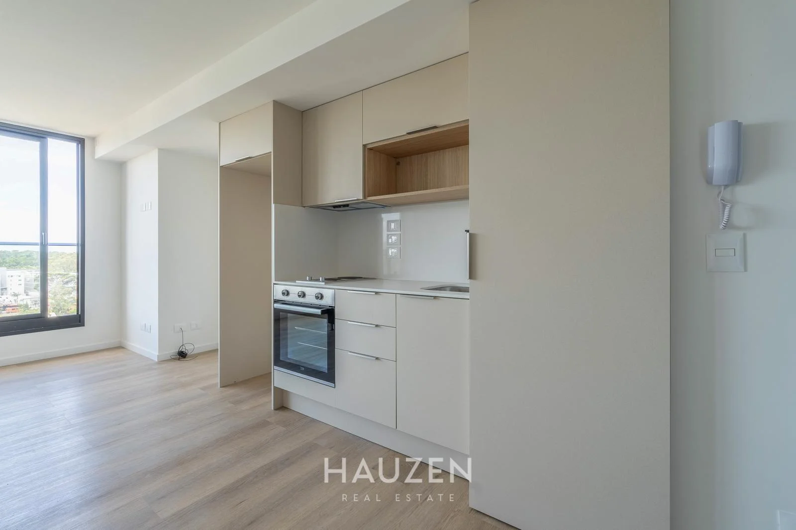 Además cuenta con aire acondicionado inverter, anafe eléctrico con dos hornallas, horno empotrado eléctrico y campana de extracción. Esta unidad NO incluye cochera.