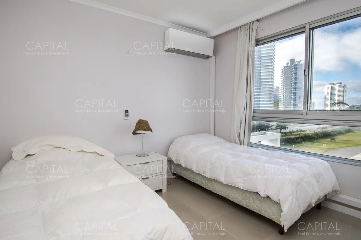 Consiste de tres dormitorios en suite más dependencia de servicio con baño, cocina amplia con lavadero, living comedor con salida al balcón al frente y toillete. Ubicado en un entorno repleto de espacios verdes y naturales, playas y a pasos de Pedragosa Sierra, Av. Italia, La Pastora, Punta Shopping, zona universitaria y colegios, ideal para vivir todo el año o vacacionar.