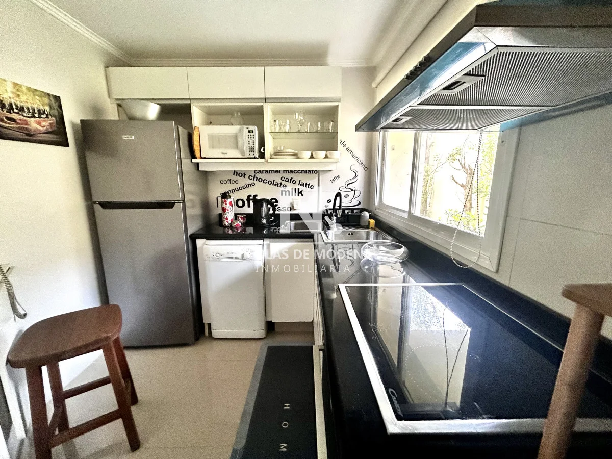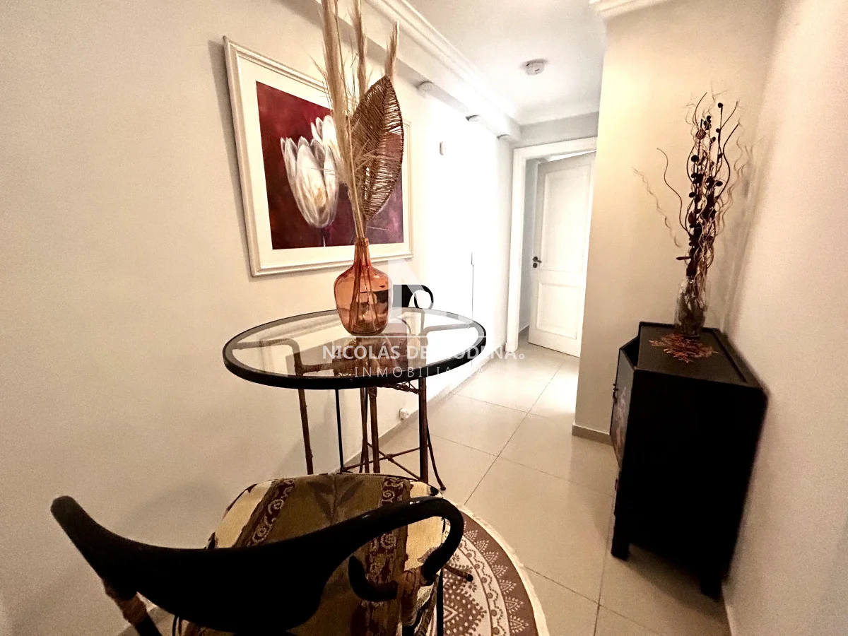 Living comedor con salida a una amplia terraza con parrillero y vista parcial al mar
