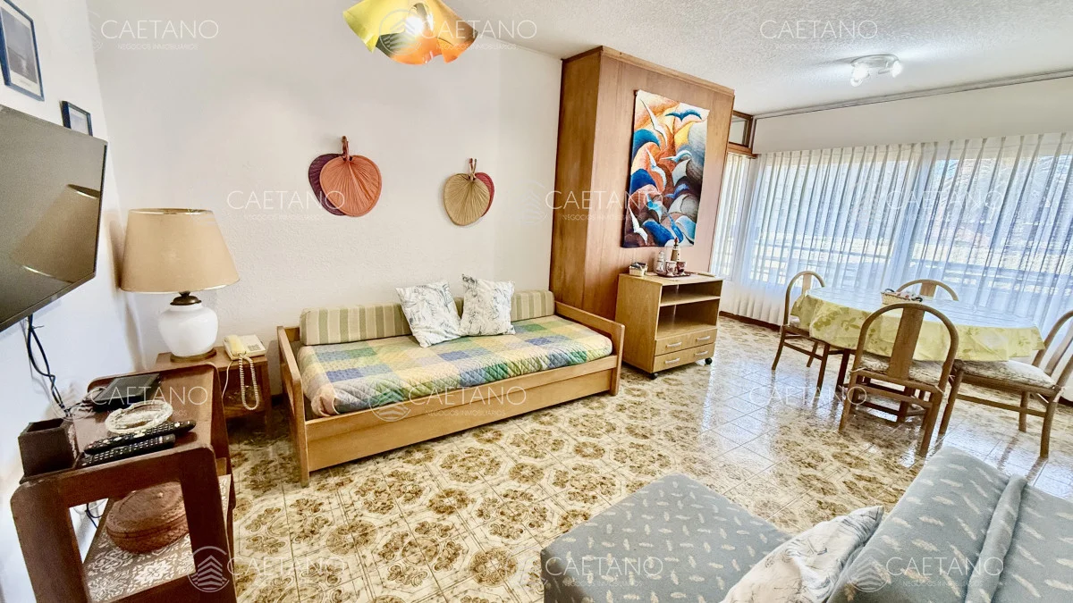 Excelente depto completamente equipado y súper luminoso con ventanales en todos los ambientes! Amplio living comedor con aire acondicionado y sofa cama para 2 ps., dormitorio con cama de 2 plazas, baño remodelado, cocina definida equipada, terraza lavadero y garaje fijo con baulera.