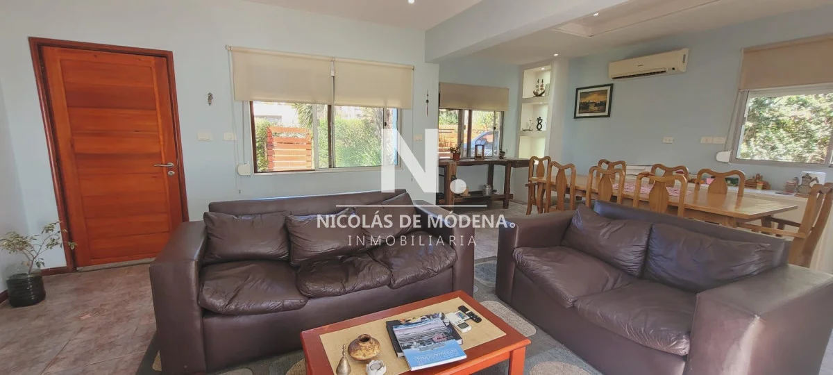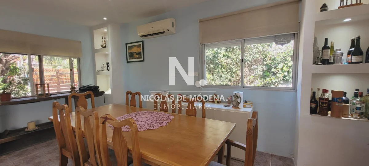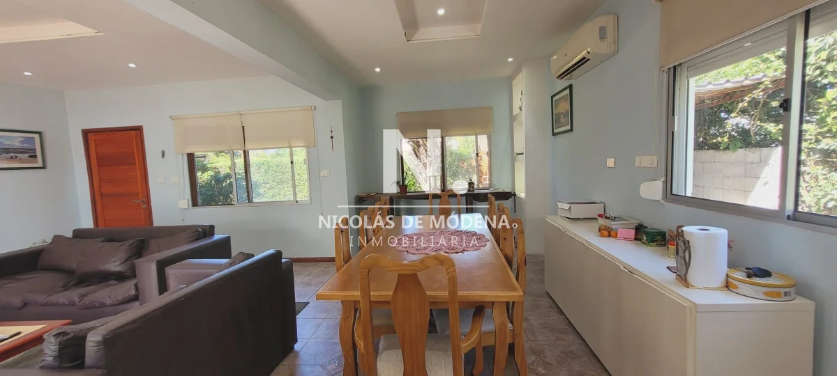 Este impecable chalet en Pinares, Punta del Este, se caracteriza por su amplio espacio y comodidades. La propiedad cuenta con cocina y living comedor, lo que proporciona un entorno espacioso y cómodo para la vida diaria y el entretenimiento. La cocina está equipada con diversos electrodomésticos, incluyendo un anafe, lavarropas, heladera con freezer, placard, una campana y un horno, lo que facilita la preparación de comidas.