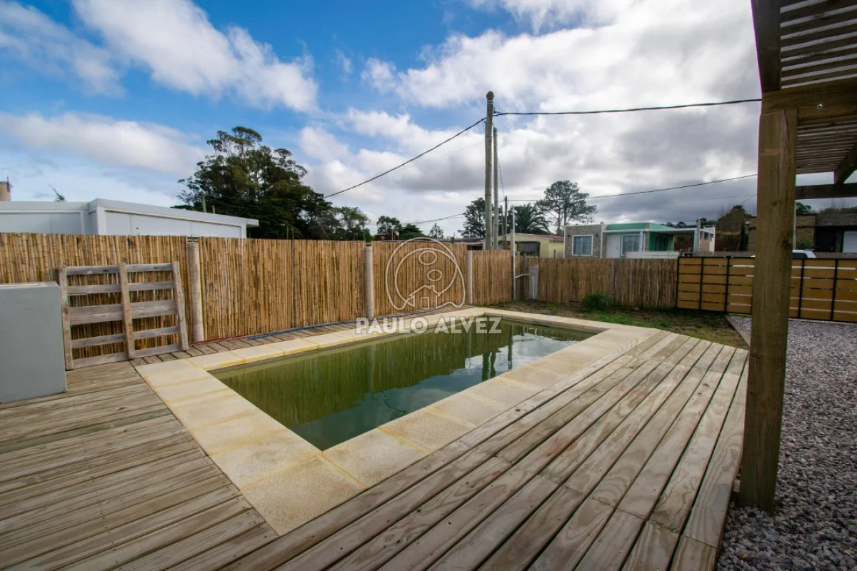 Propiedad en construcción a solo 400 metros del mar y a 20 minutos de Piriápolis. Construcción mixta de 70 m². Pisos de cerámicos, paredes de bloque, techo de isopanel y aberturas de aluminio con doble vidrio. Emplazada sobre un predio de 310 m². Distribuida en una sola planta, amplio living comedor, con cocina integrada. Dos luminoso dormitorios, uno de ellos en suite y un segundo baño. Al fondo, parrillero techado y piscina de 6x3 metros. Consulte por más información.