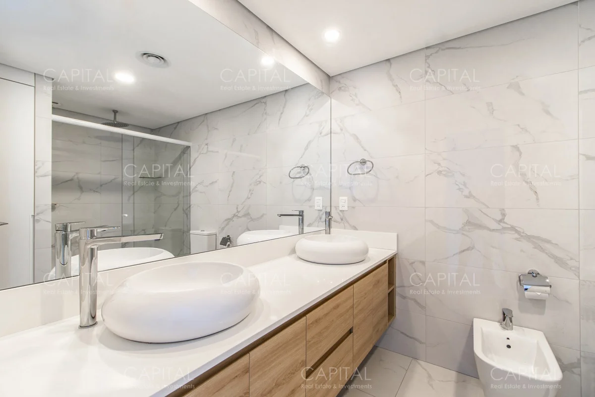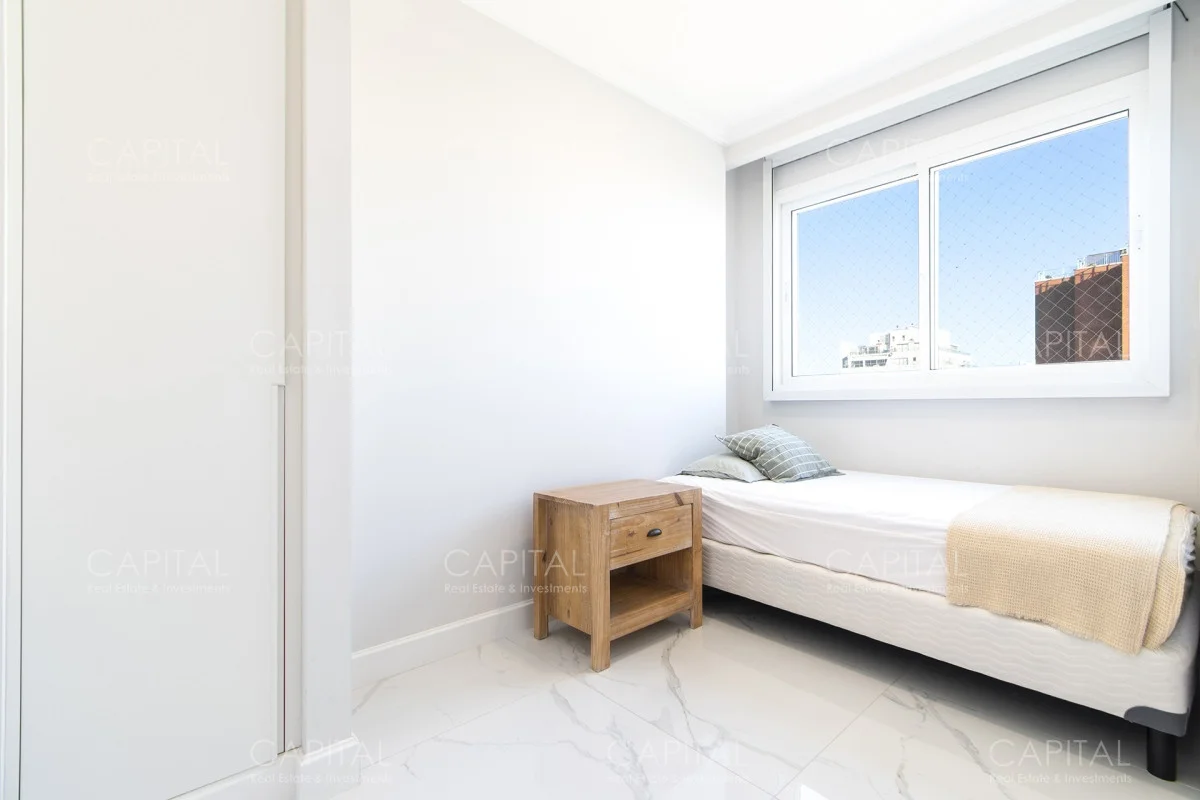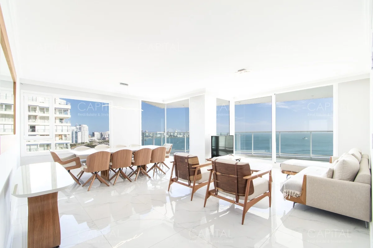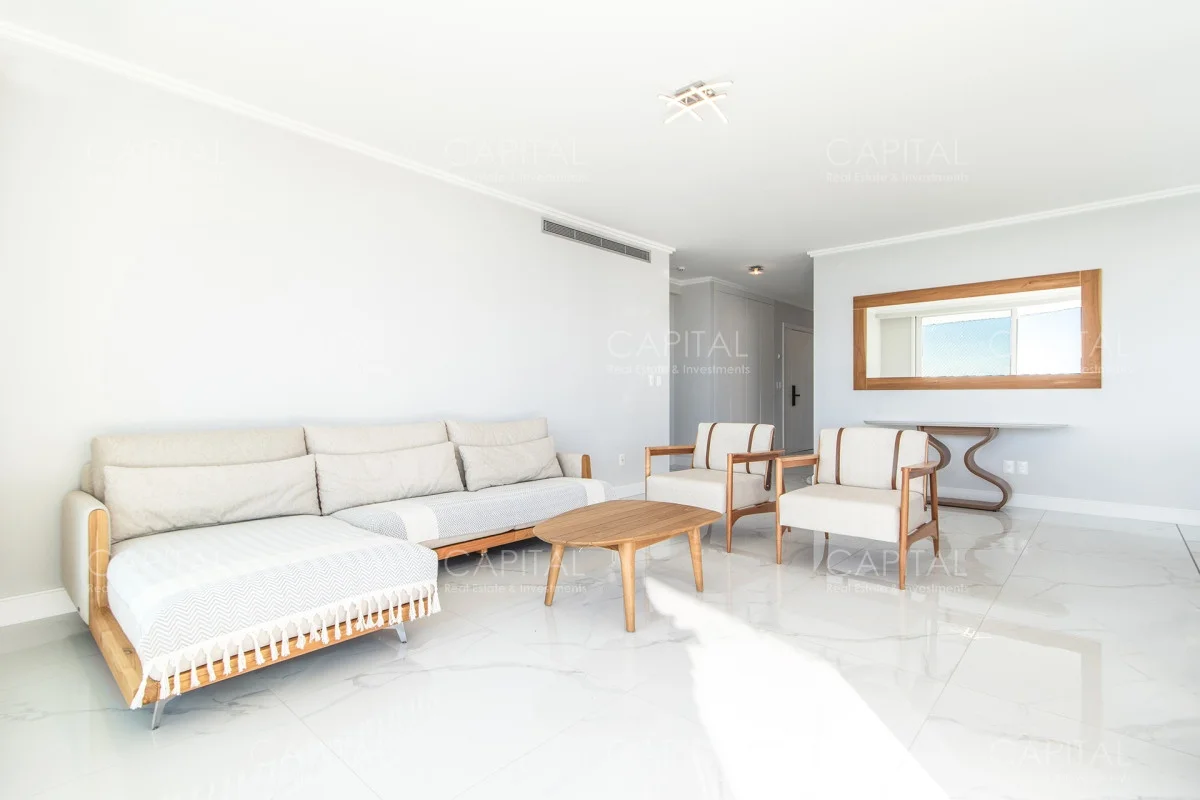 Apartamento de tres dormitorios en suite mas dependencia con baño y toilette social, palier privado con ocho ascensores de gran velocidad, la ubicación del edificio en primera linea frente al mar ofrece una vista totalmente panorámica de la Playa Mansa.