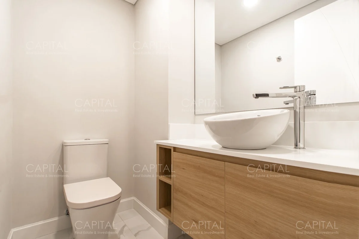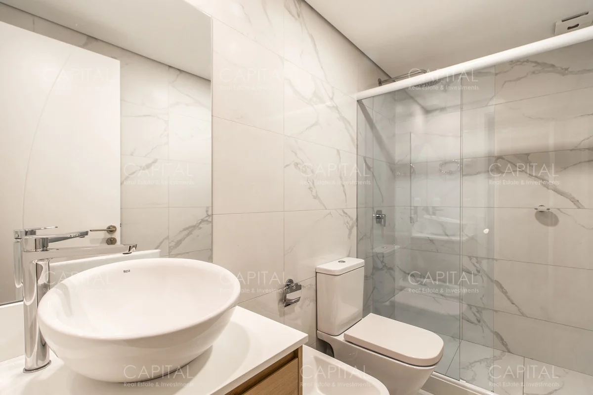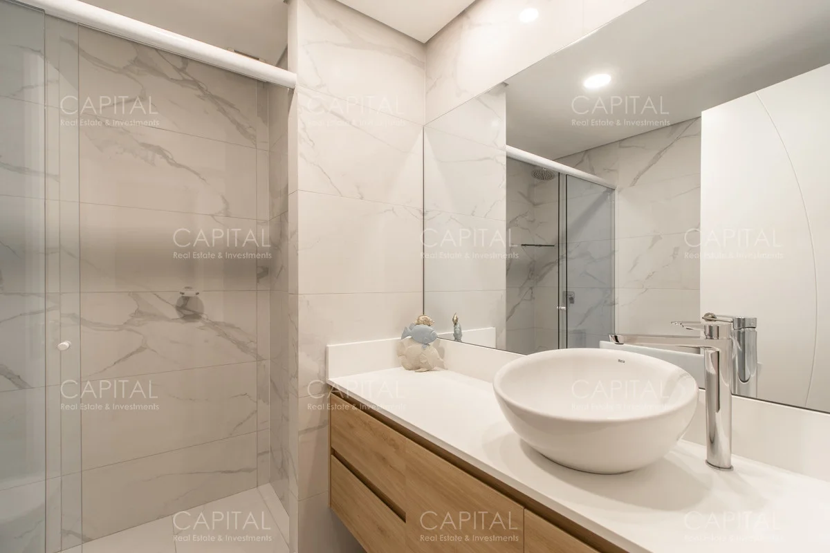 El edificio se destaca por sus amenities, dos piscinas interiores climatizadas, dos exteriores climatizadas, gimnasio de ultima generación con vista panorámica al mar, seis barbacoas con ascensor, dos saunas, dos salas de masajes, sala de adultos, sala de adolescentes sala de niños, cine 3D, salón de fiesta para 150 personas, servicio de playa totalmente premium, recepción, garajista las 24hs, video vigilancia, entradas totalmente controladas a través de la domótica, estacionamiento de cortesía y cargador de cortesía para autos electicos.