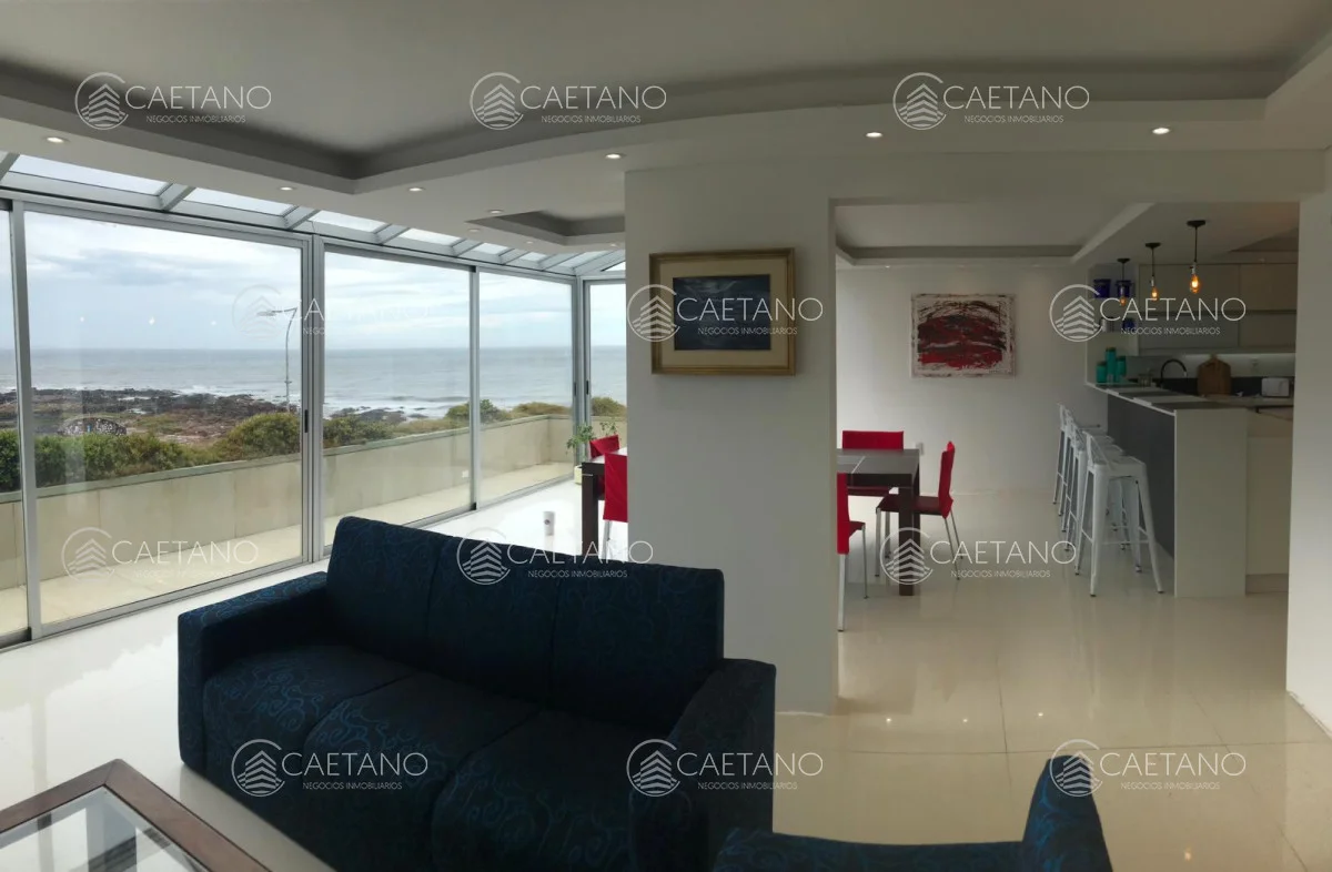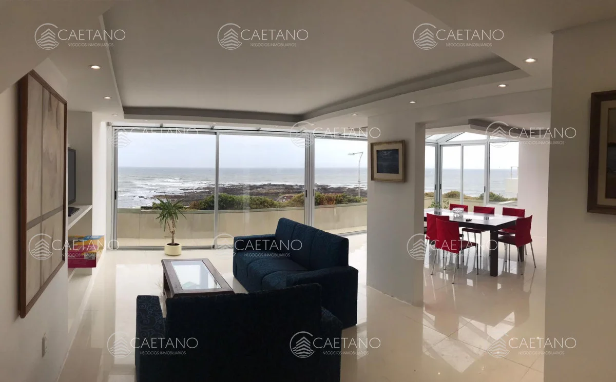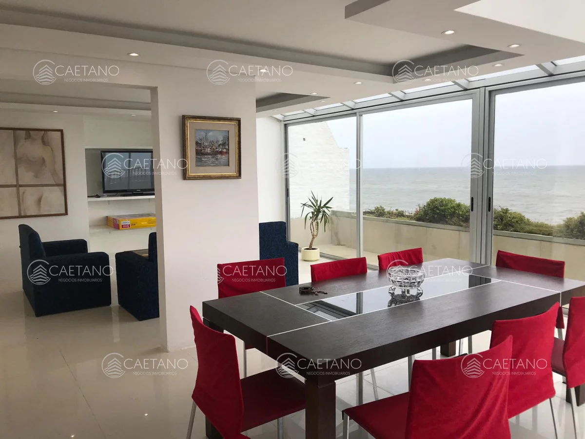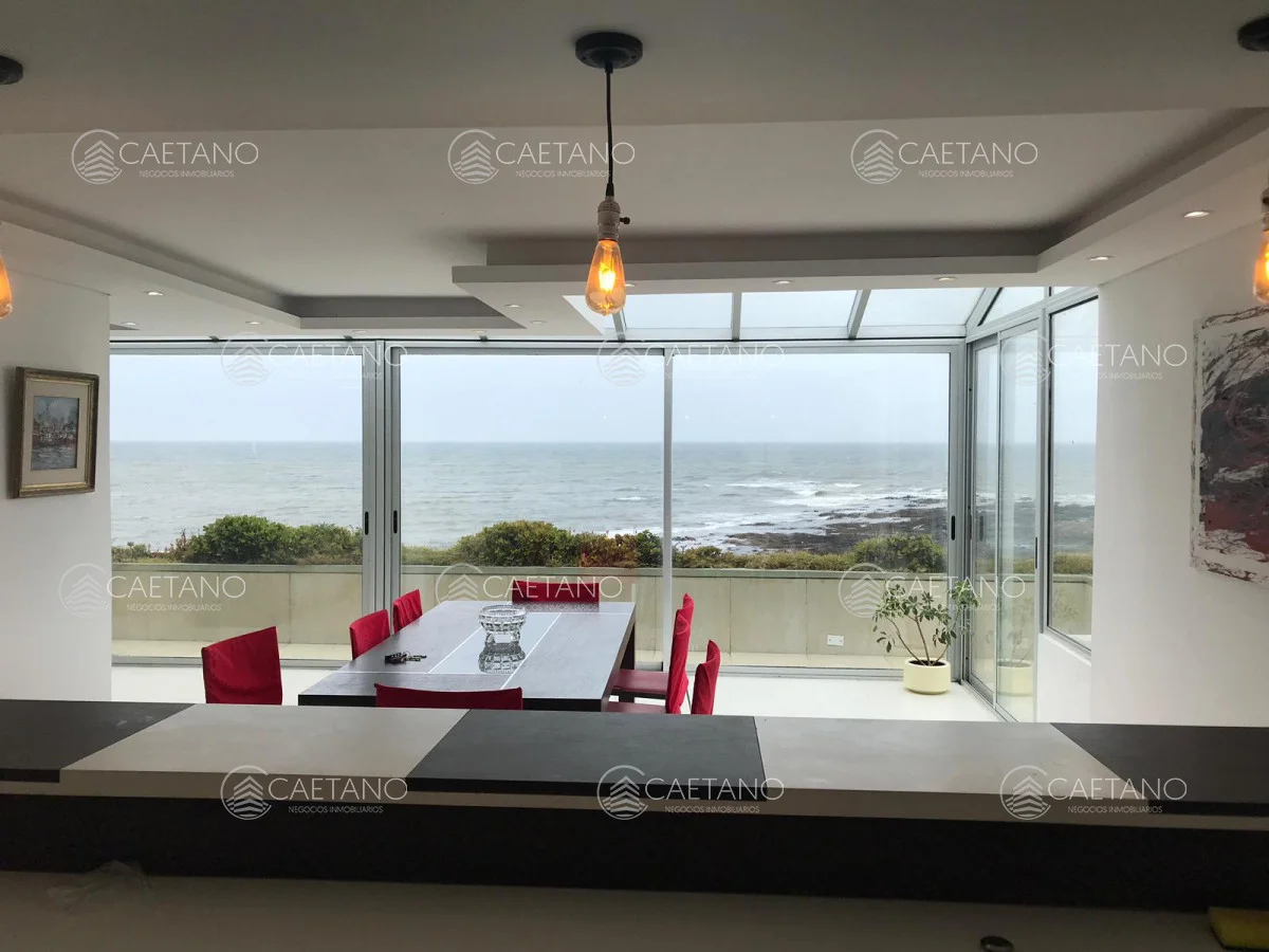 Primera linea frente al mar, en península. Pent house, totalmente reciclado a nuevo cuidando todos los detalles. Impactante vista. Amplio y luminoso living comedor con moderna cocina integrada, con vista directa al mar. Toilette y cuatro dormitorios en suites. En planta alta con escalera propia interna, barbacoa cerrada, parrillero y sector de terraza abierta. Increible vista al mar. Referencia Interna : Tera-2399