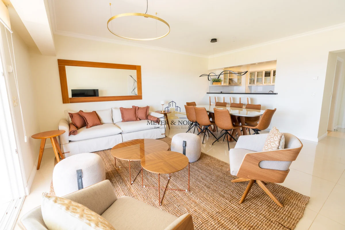 Terraza, living comedor, 2 suites, cocina americana, 2 baños.