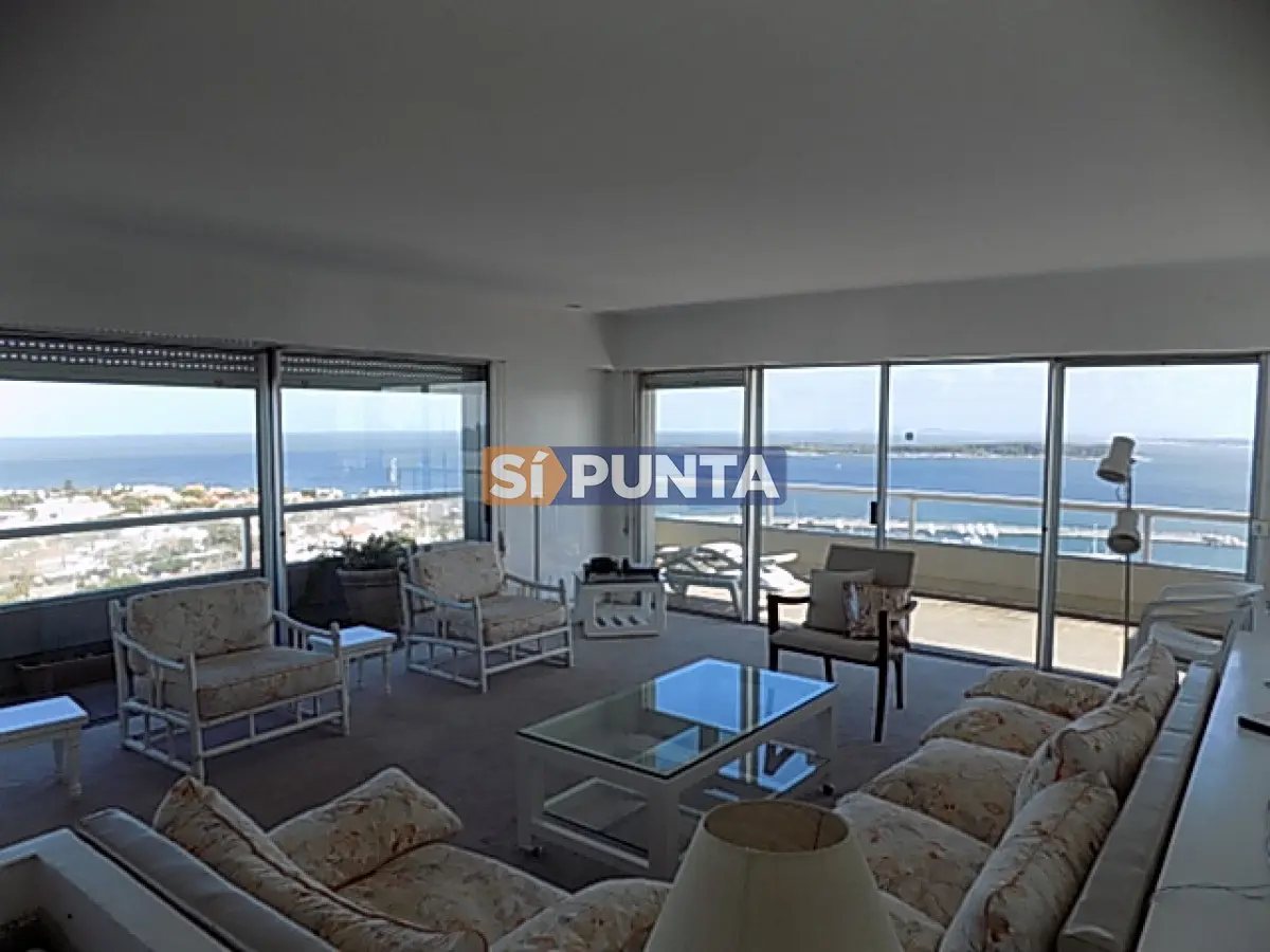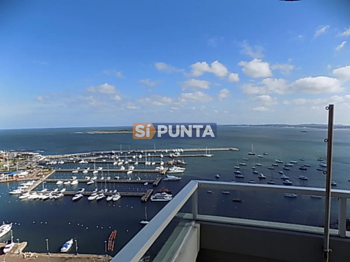 Impresionante apartamento Penthouse, sobre la zona del Puerto de Punta del Este. Totalmente aterrazado con vistas desde todos sus ambientes hacia Puerto, Mansa y Brava. Comodidades: - Living comedor - Terraza - Cocina - 2 Dormitorios (2 suites) - 2 Baños - Lavadero - Garaje Amenities: Recepción, piscina, serv. de mucama, vigilancia, sala de juegos y sauna Referencia Interna : Tera-628