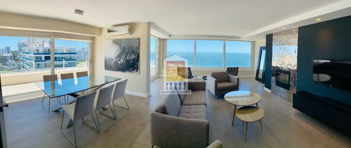 Hogar a leña, persianas eléctricas, equipado por BO CONCEPT. Calefacción a gas. Aire acondicionado. 2 dormitorios, 2 baños, 1 en suite, baño de visitas, dependencia de servicio con baño. Garaje