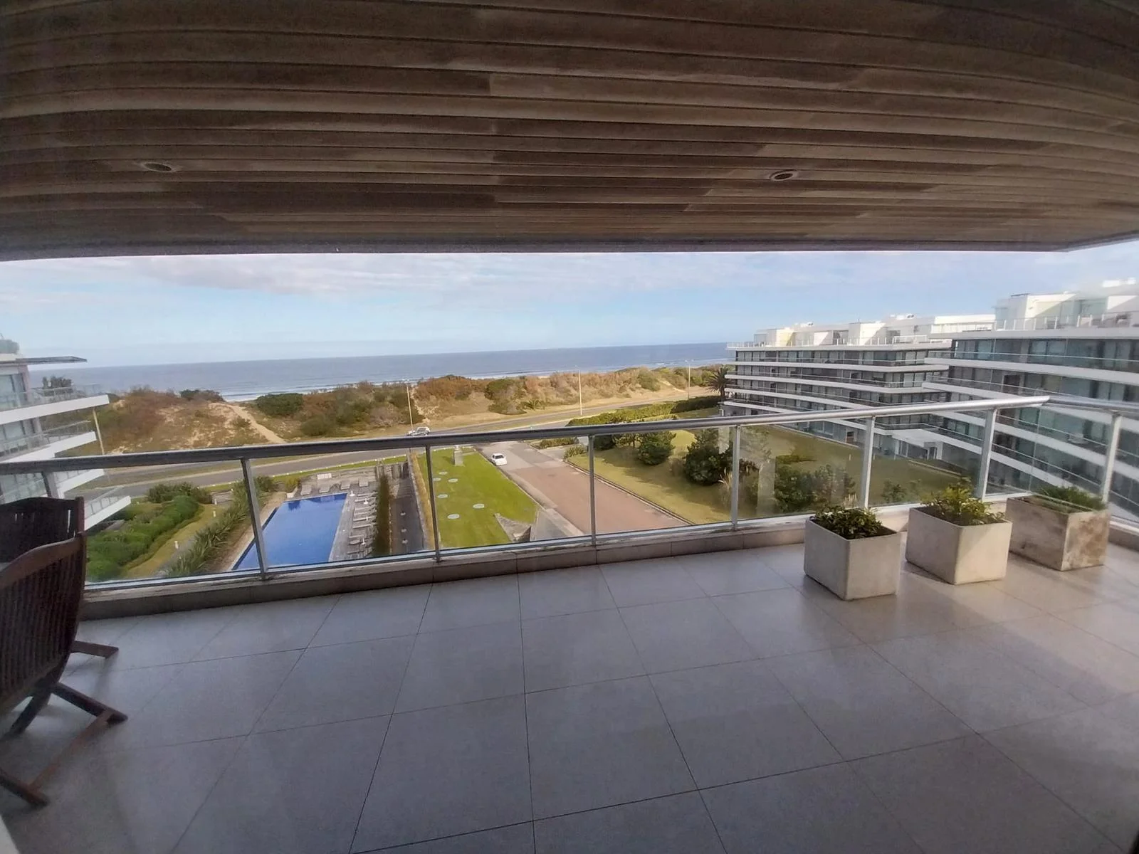 Punta del Este Alquiler Temporario, tres dormitorios en suite, living y comedor con vista al mar y salida al balcon terraza. Amplia y luminosa cocina. Toilette. Lavadero, dependencia de servicio exterior. Terraza en piso superior propia con parrillero.